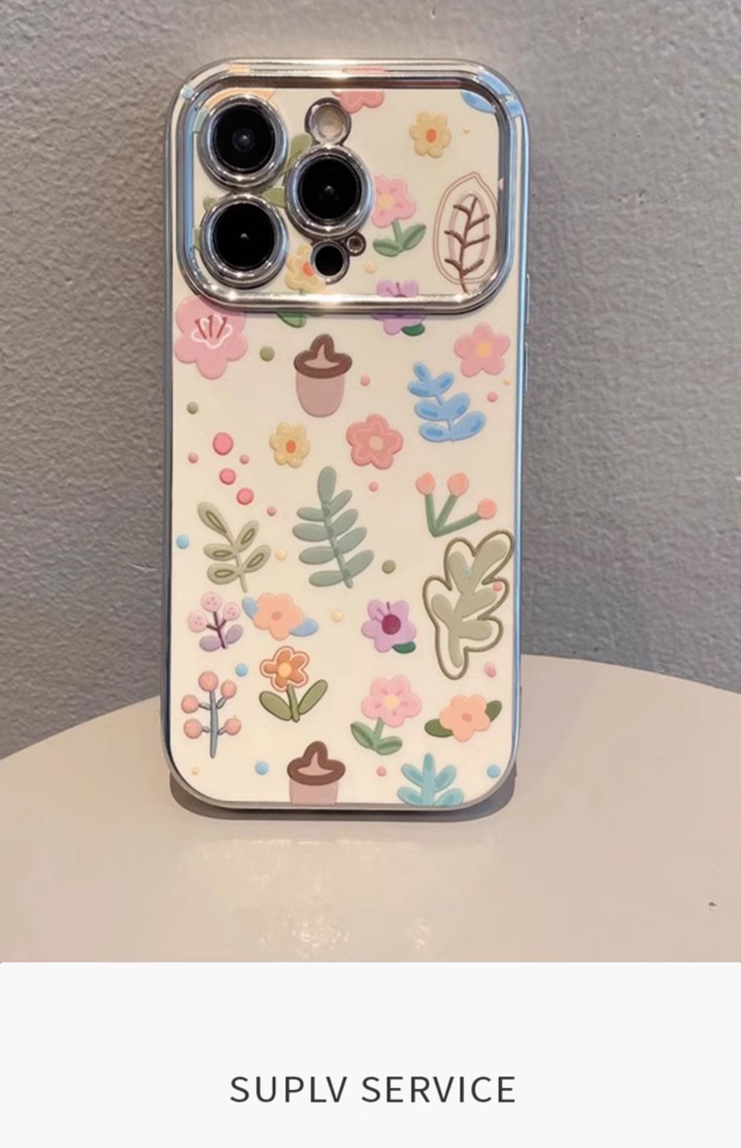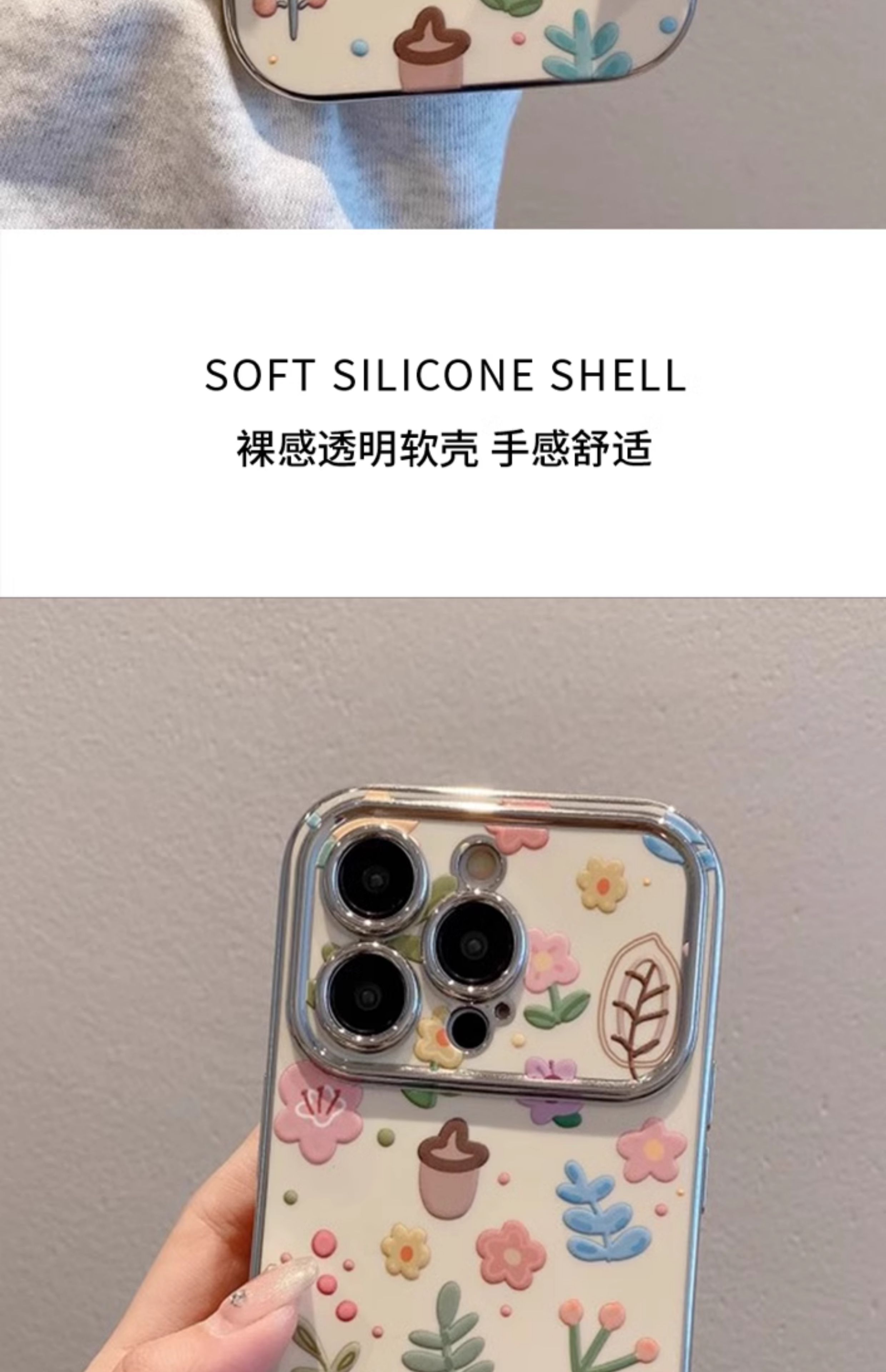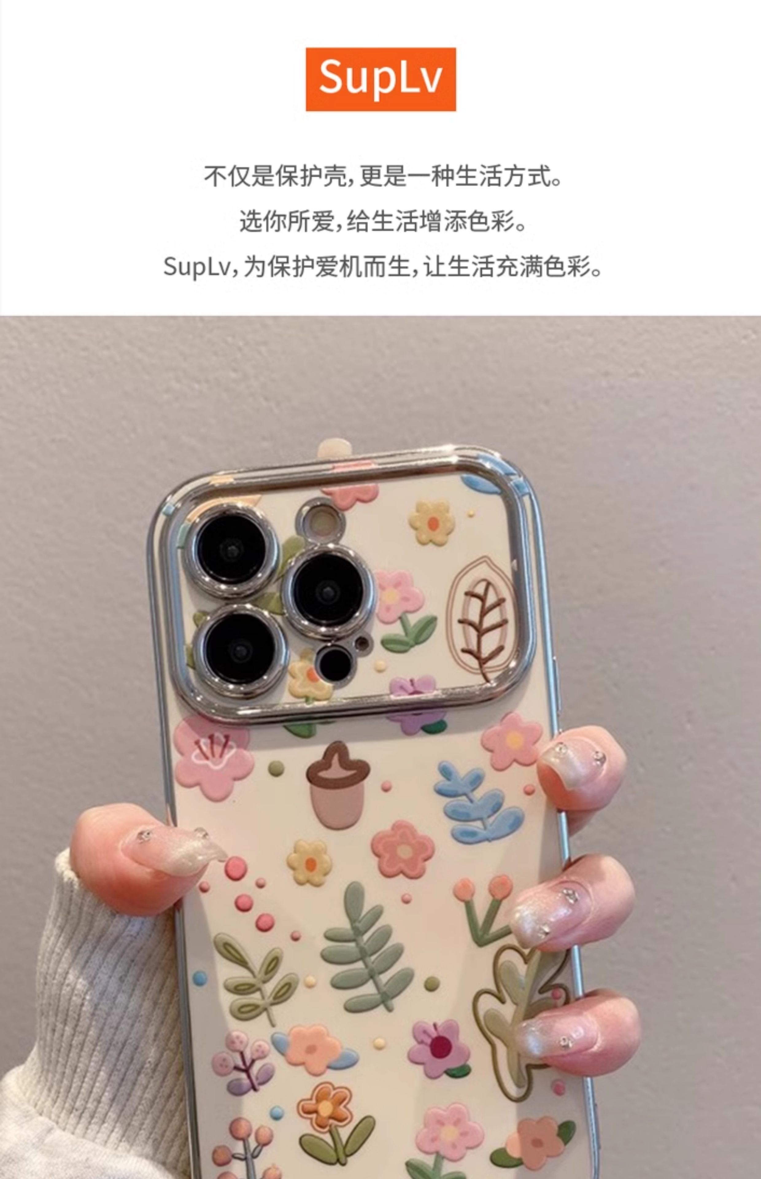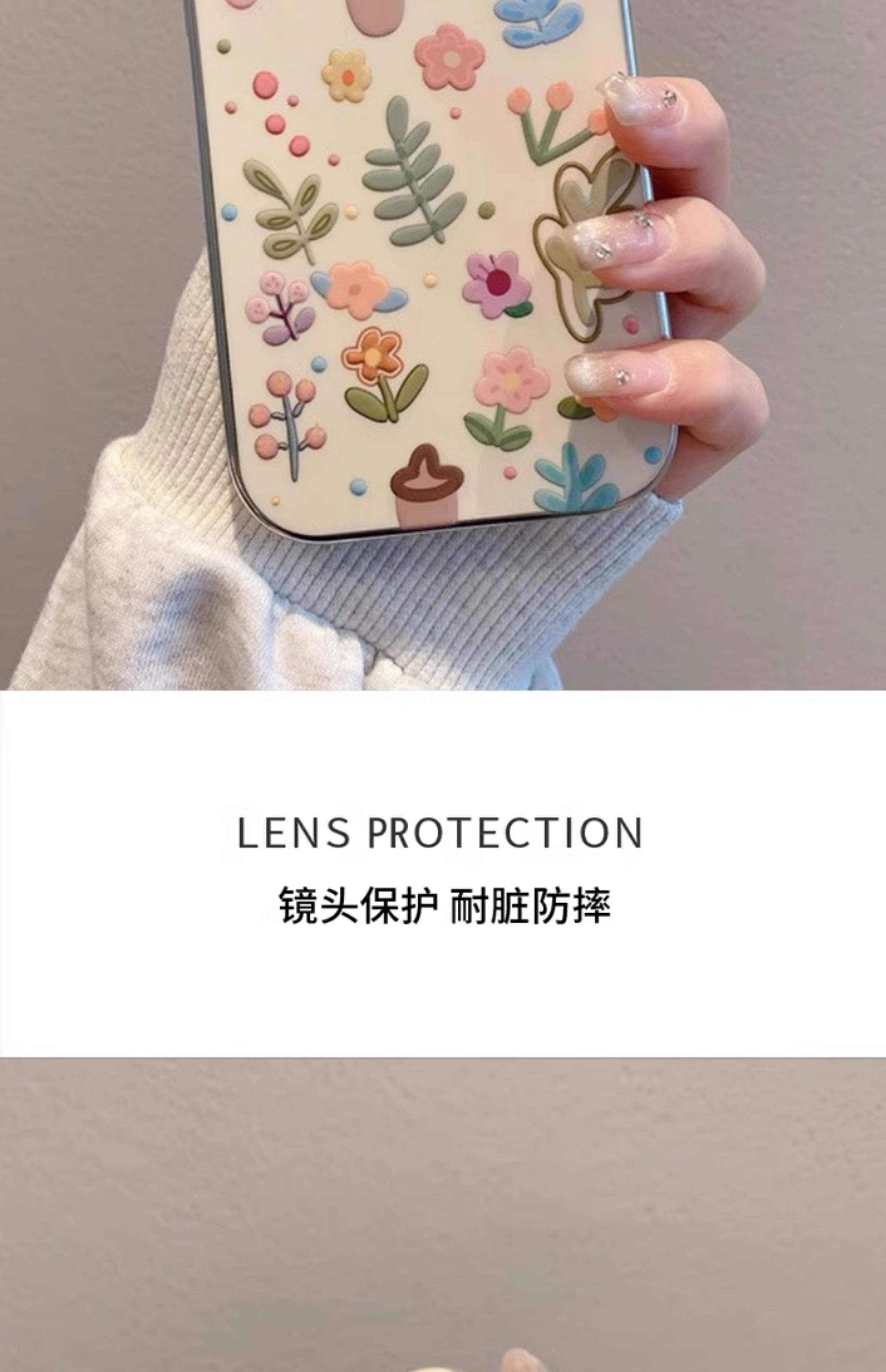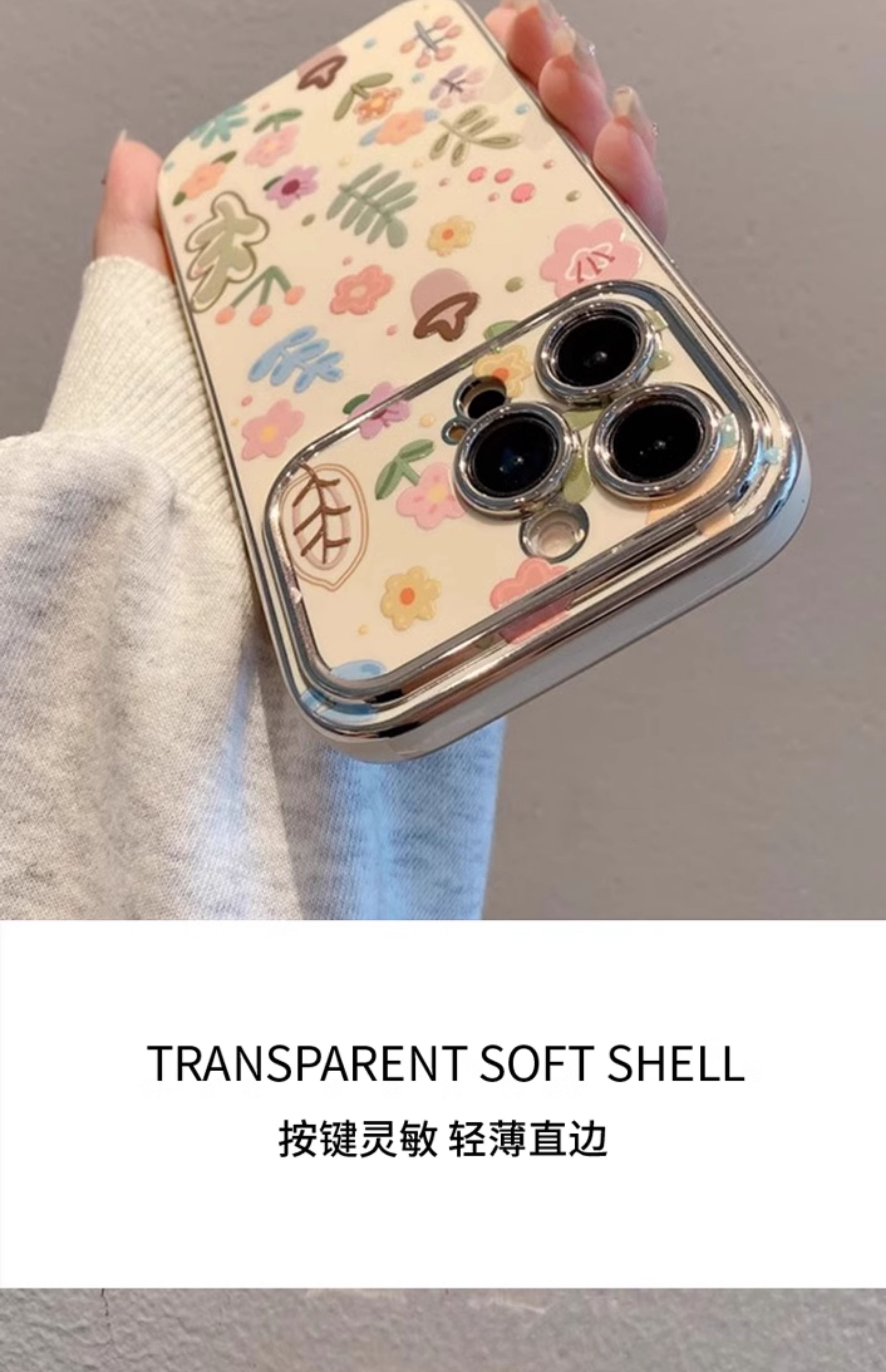 Vinien is suitable for Apple 16prom mobile phone case 15promax female new model 14pro summer high-end lens all-inclusive 13pm silicone small fresh 12 niche 17 anti-fall protective cover chestnut floral lens all-inclusive + delicate and skin-friendly iPhone 16 Pro Max