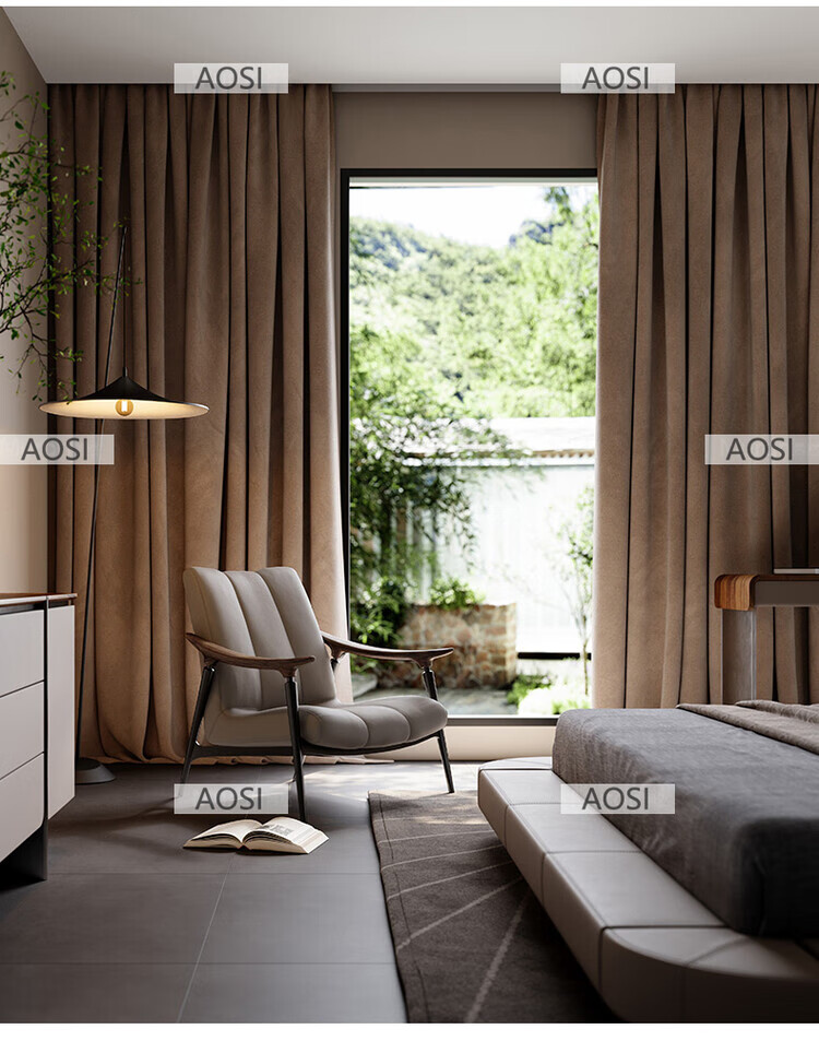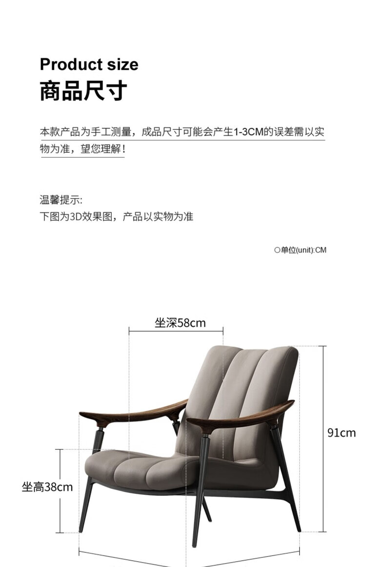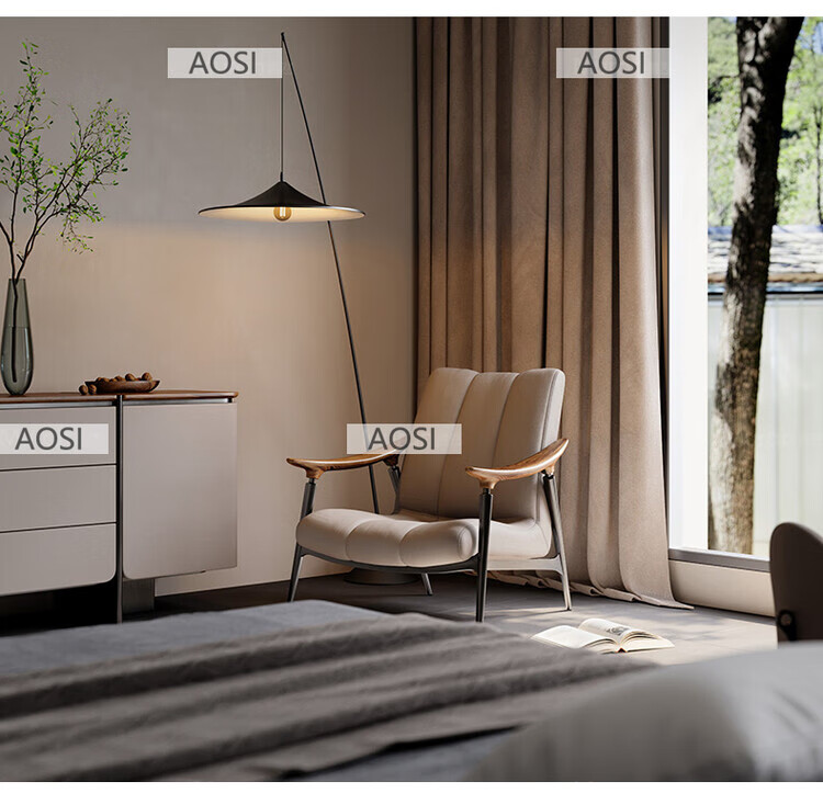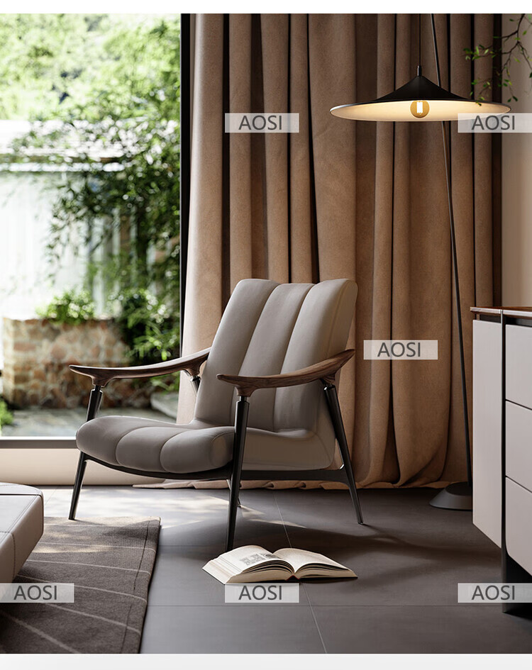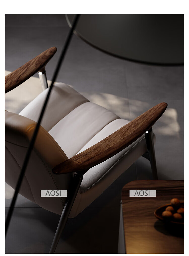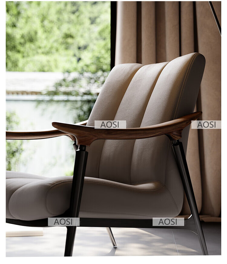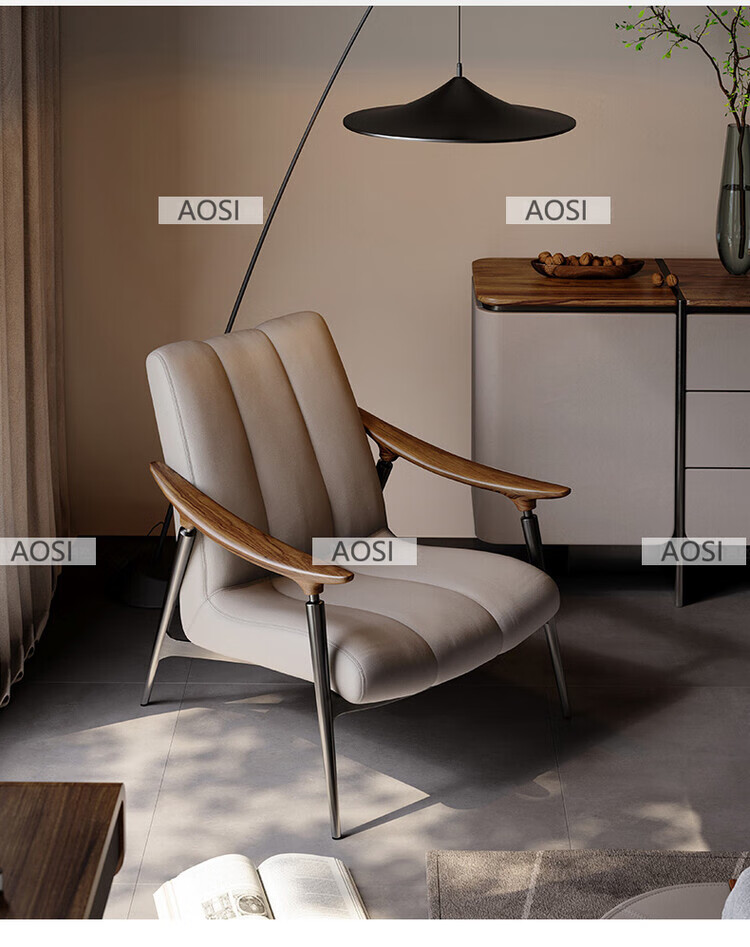 Senerson light luxury designer single sofa chair living room villa Italian North American black walnut high-end leather leisure chair Bronze champagne gold (leisure chair/S-level full leather)
