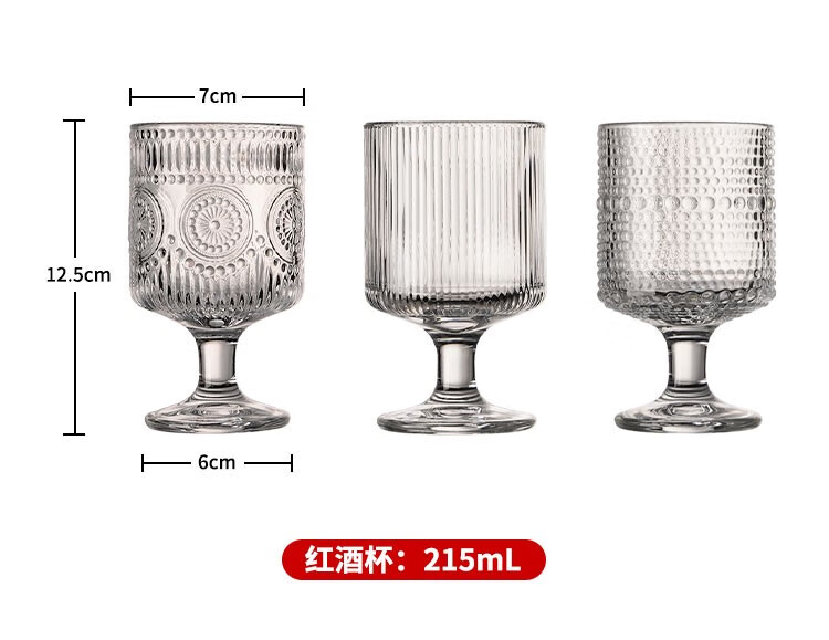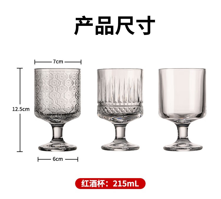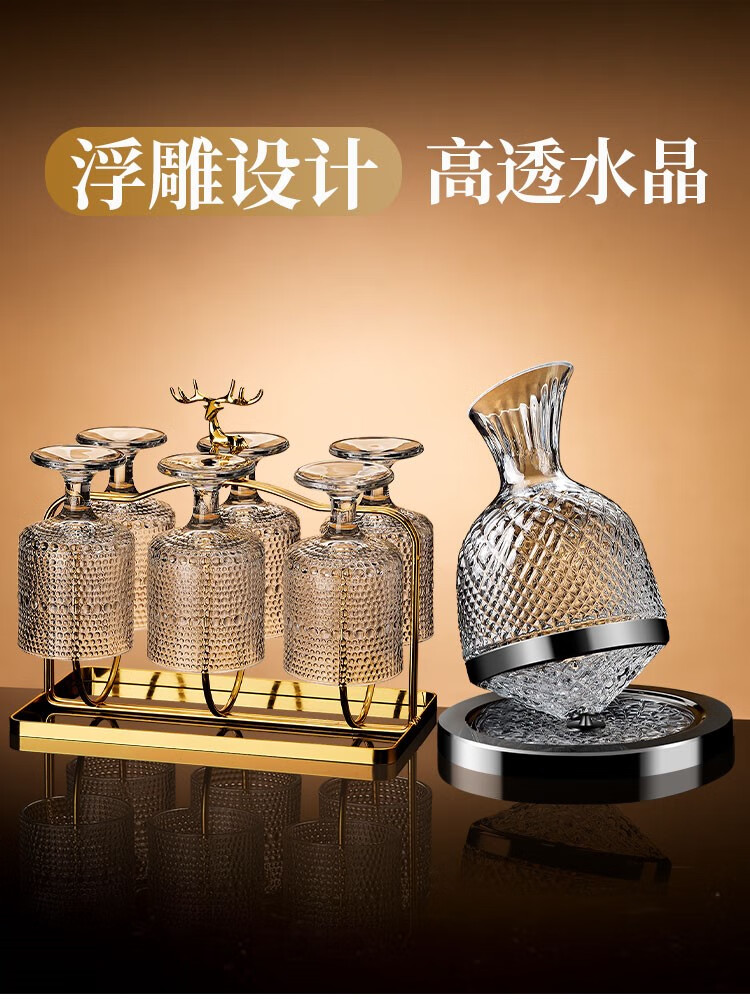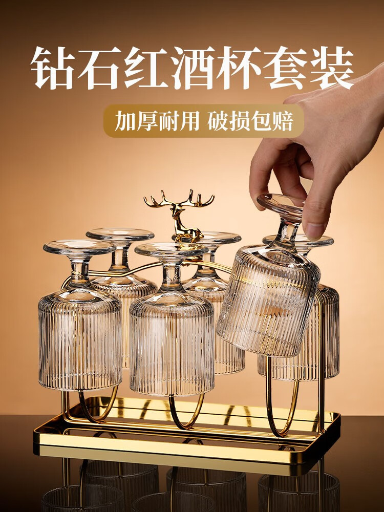 Lugaris red wine glass, light luxury home set, crystal glass tulip cup, heat-resistant, high-looking, creative foreign wine glass, upgraded thickened vertical stripe style 215ml (6 pieces + golden gyro decanter)