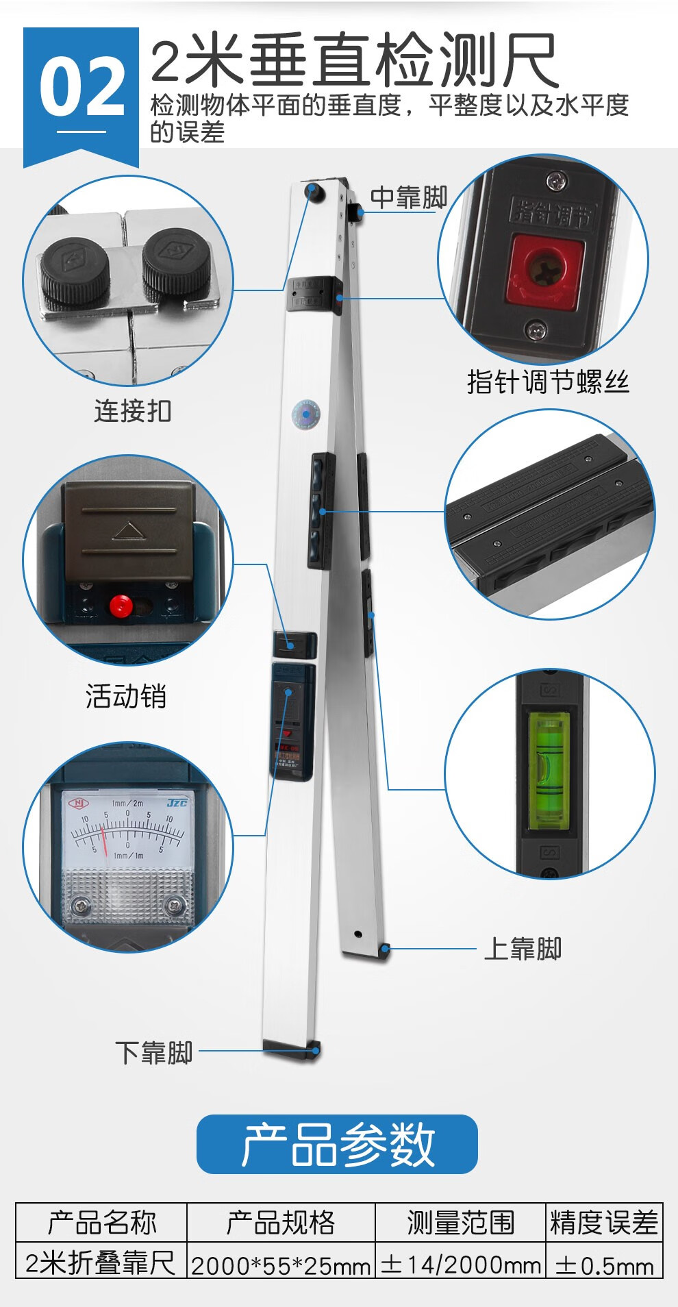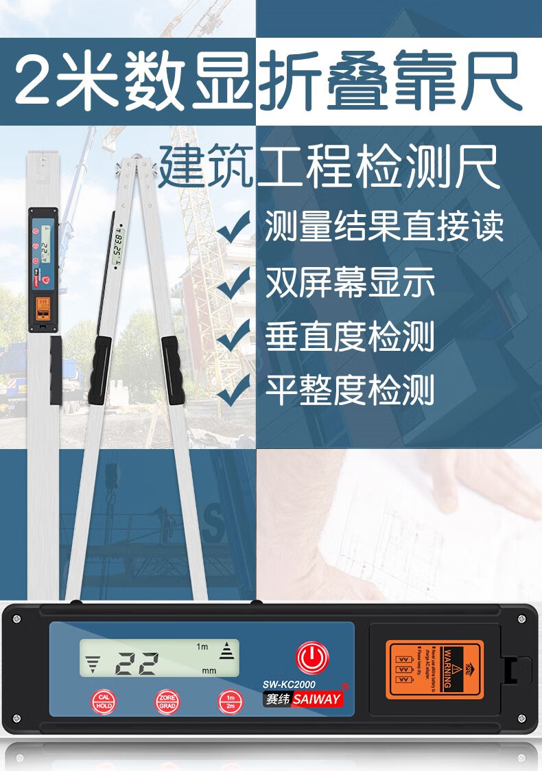 Southern ruler 2-meter folding aluminum alloy high-precision two-meter digital display electronic wall floor level ruler 3-meter highway ruler Pointer style Southern 2-meter ruler + feeler ruler