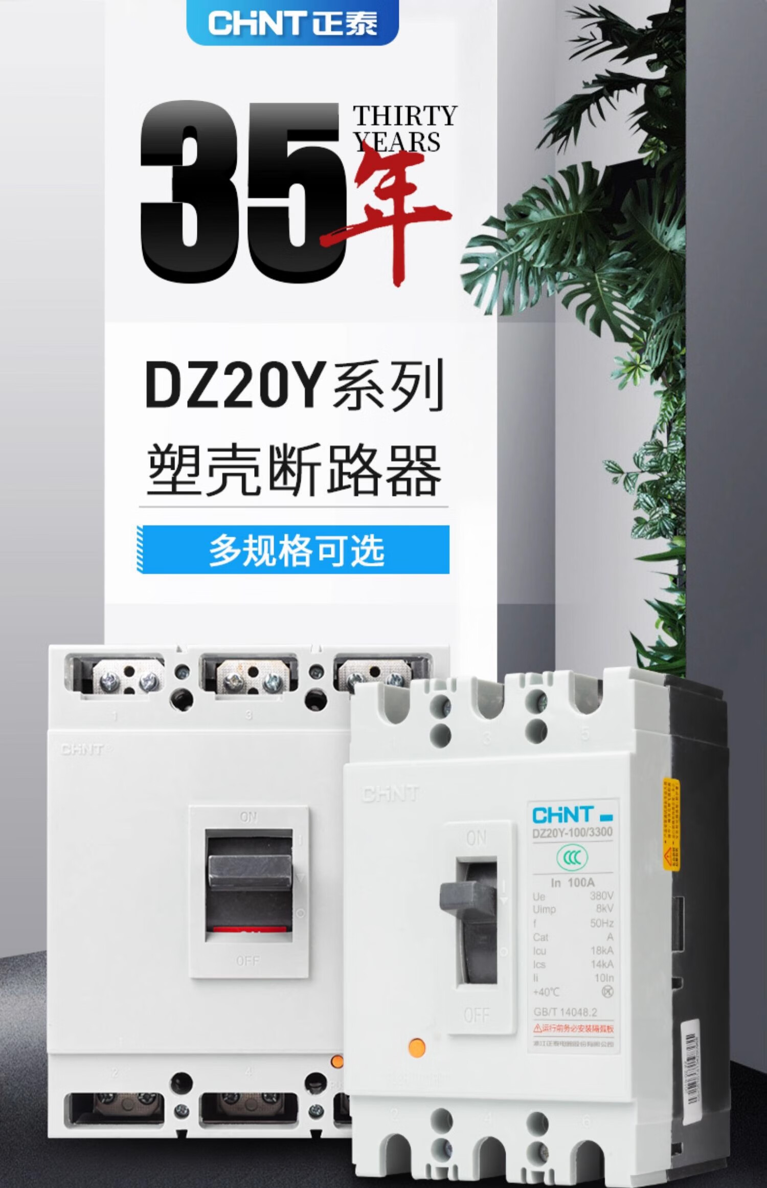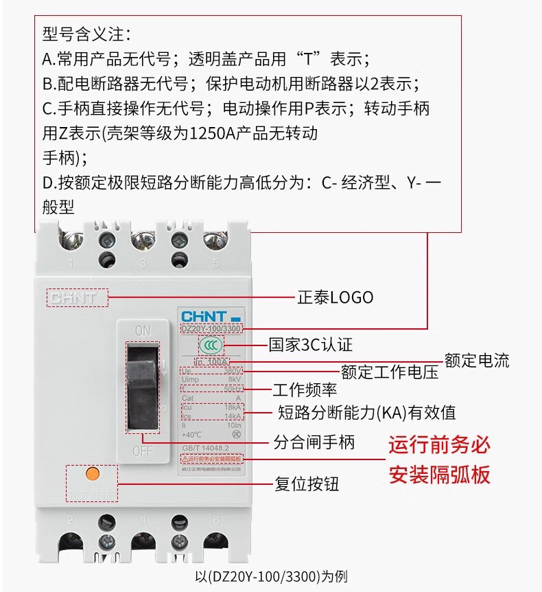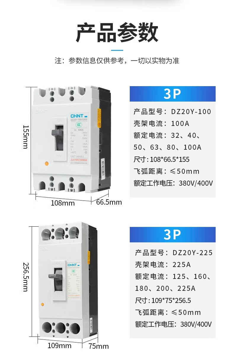 Chint (CHNT) DZ20Y 225 400 630 plastic shell case circuit breaker three-phase air switch 630/3300 630A transparent