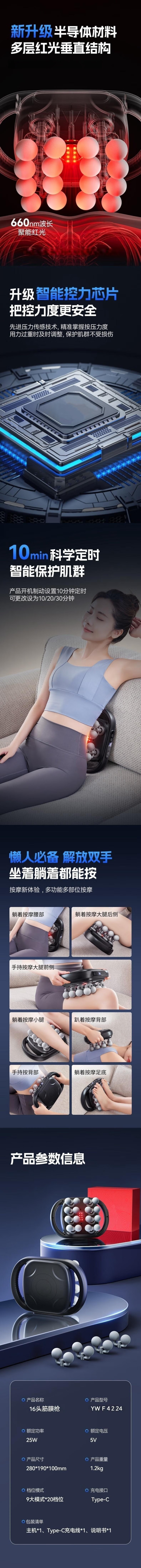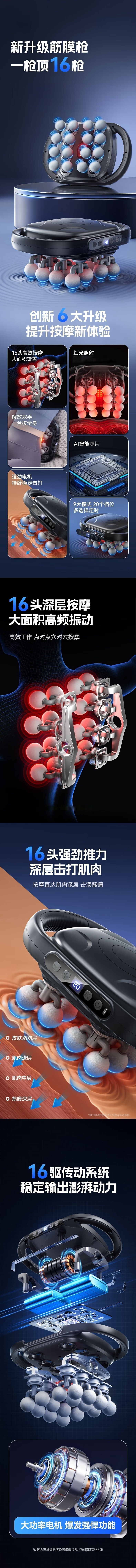 Youjiya fascia gun massager shoulder, neck, lower back, professional-grade muscle deep massage VTT sixteen-head fascia gun massager leg fully automatic multi-functional New Year's Day gift 16 head accessories German brand motor gray + 9 large modes + power lithium battery
