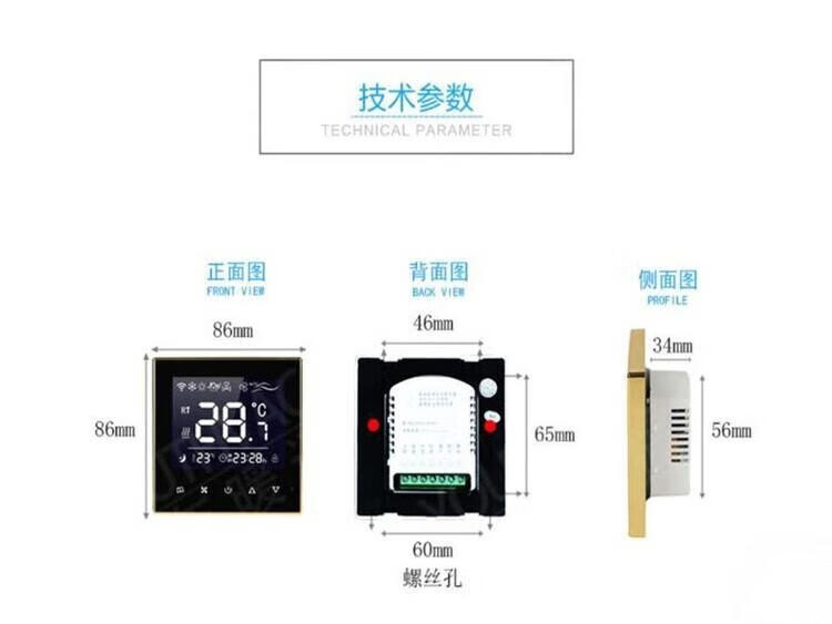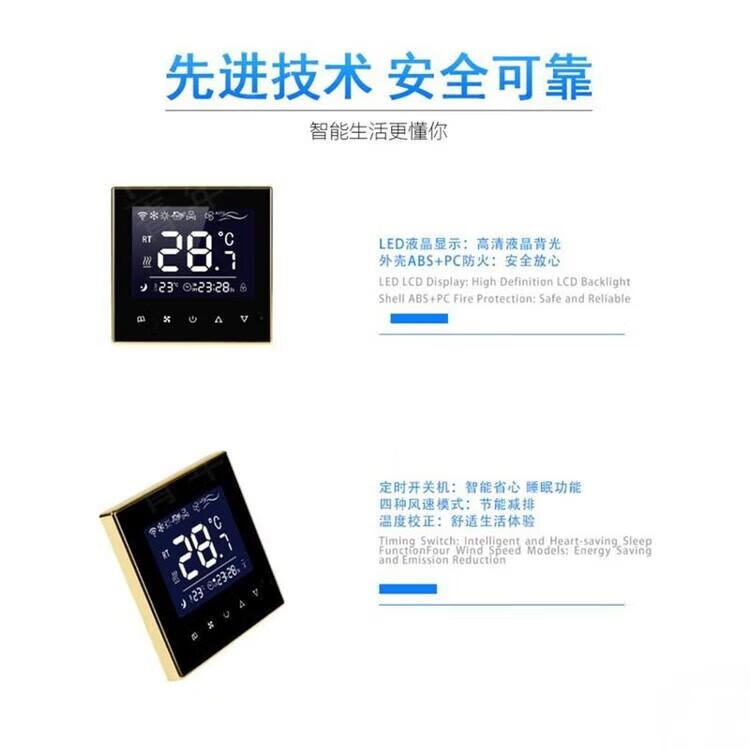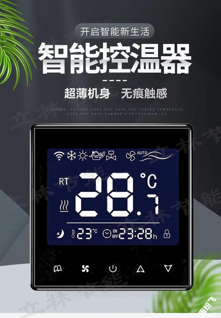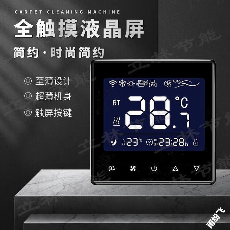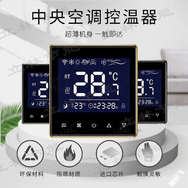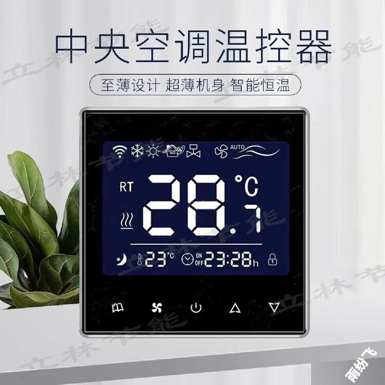 Air conditioning controller new ultra-thin central thermostat smart control panel water fan fan coil three-speed LCD switch 818 black