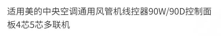Air conditioning controller universal Midea central universal duct machine wire controller 90W/90D control panel 4-core 5-core multi-connection KJR-90F1/BF-two core gray