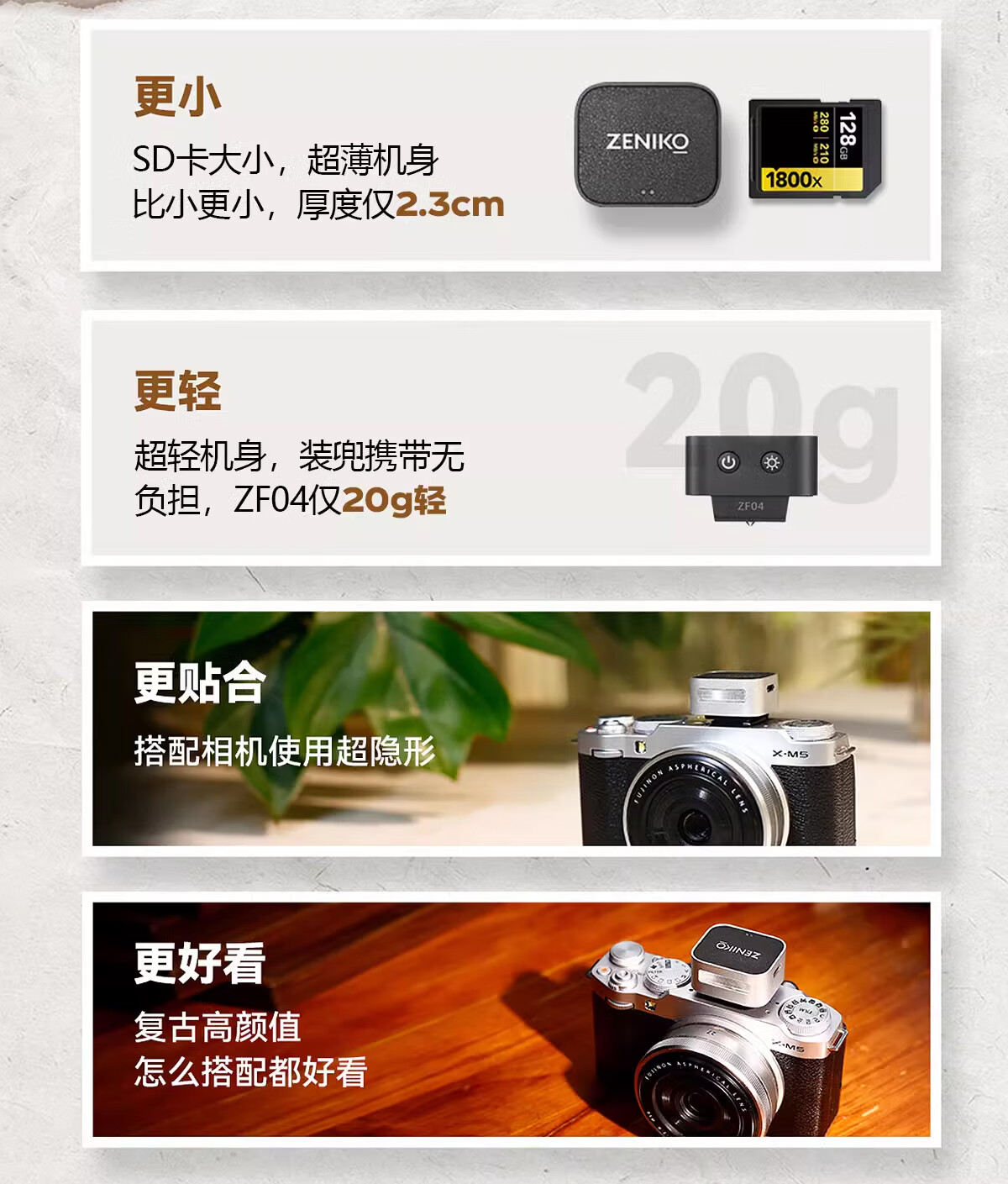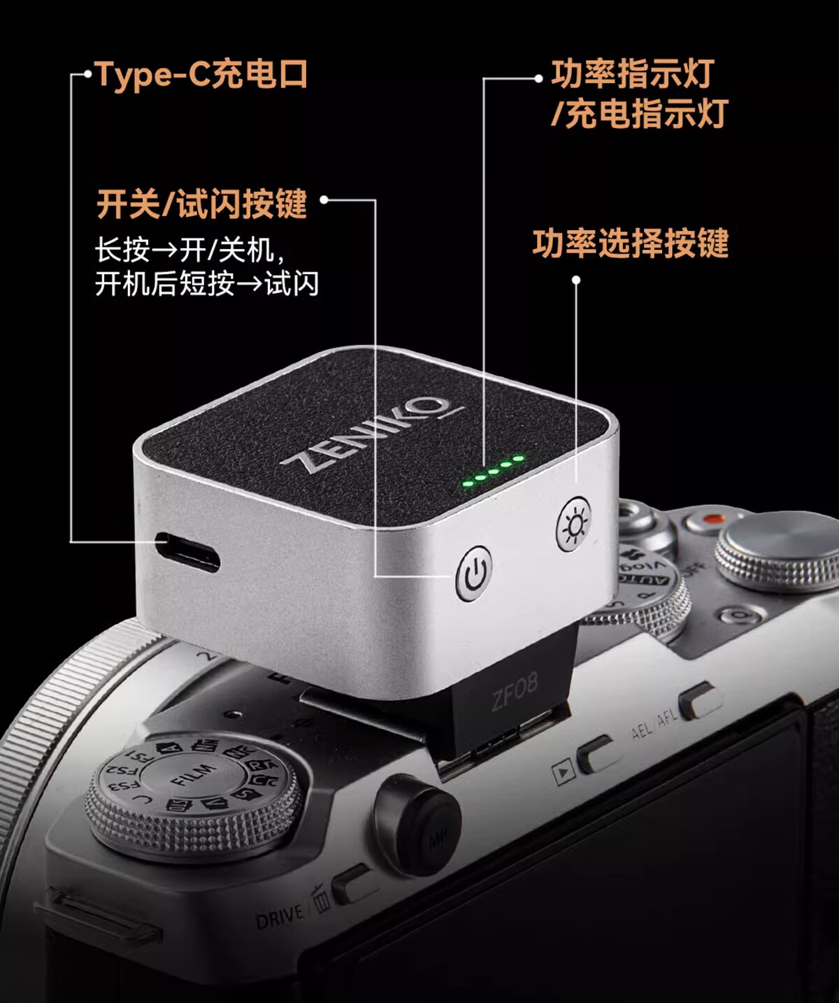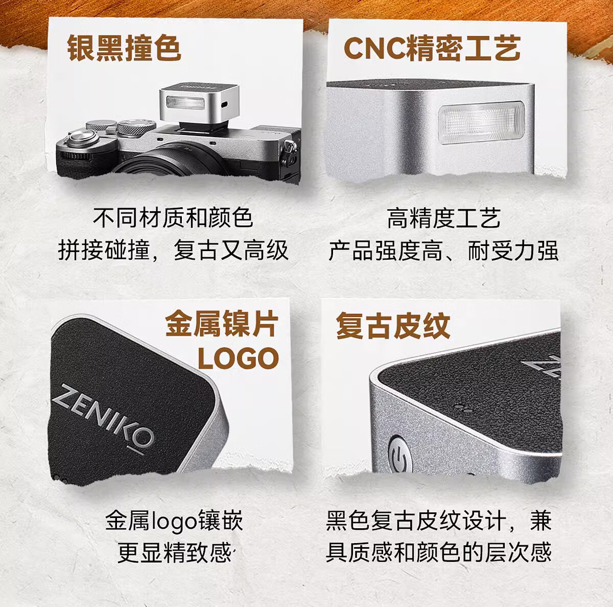 ZENIKO small flash ZF08 ZF04 mini flash universal hot shoe contact continuous shooting high brightness flash small and portable retro high-looking aluminum alloy shell flash ZF04 flash black model + soft box + hot shoe booster pad