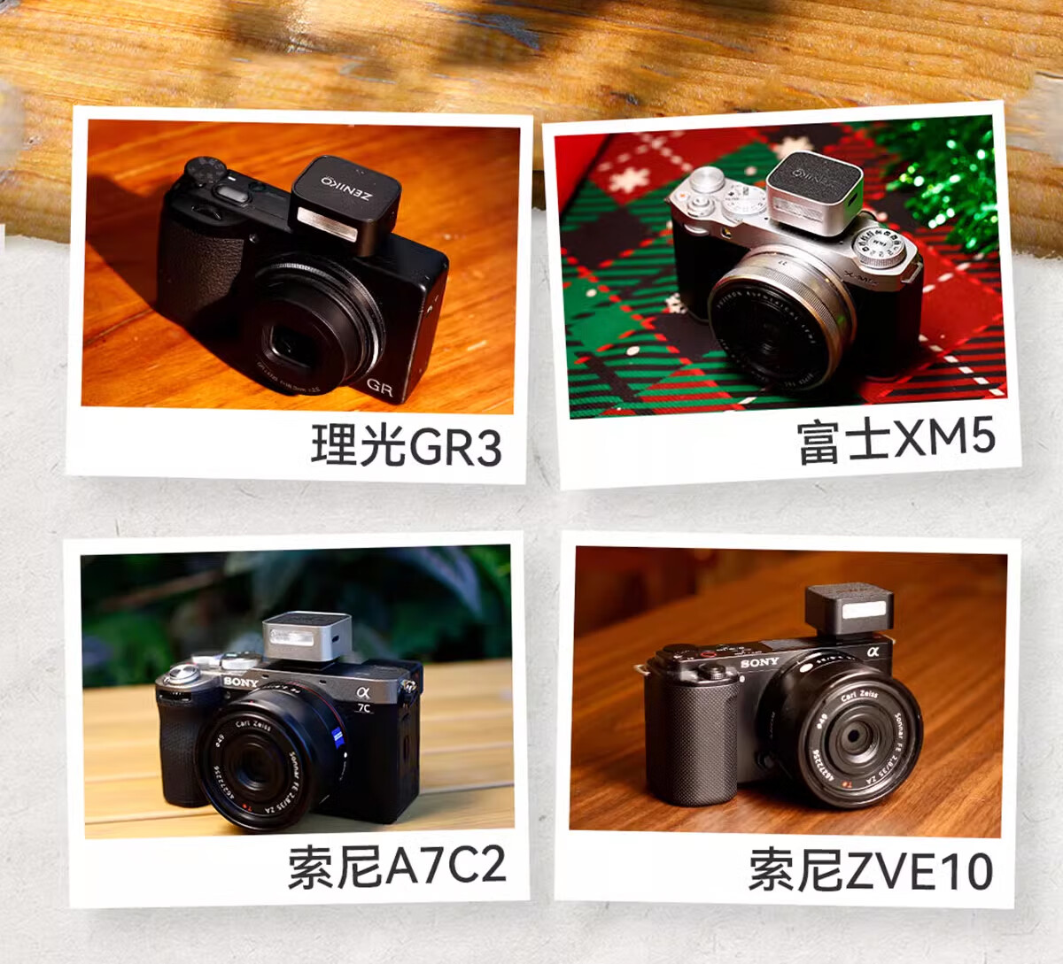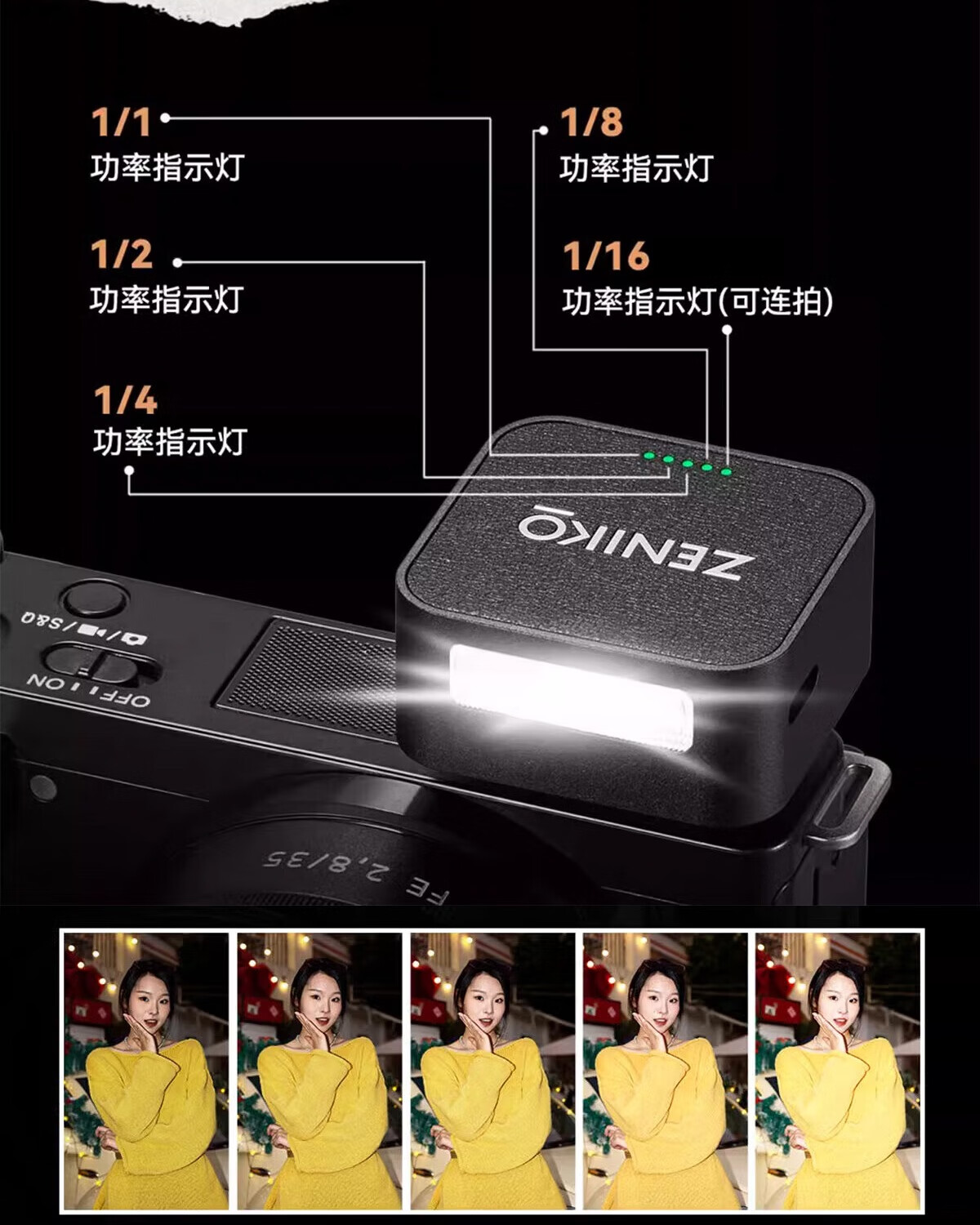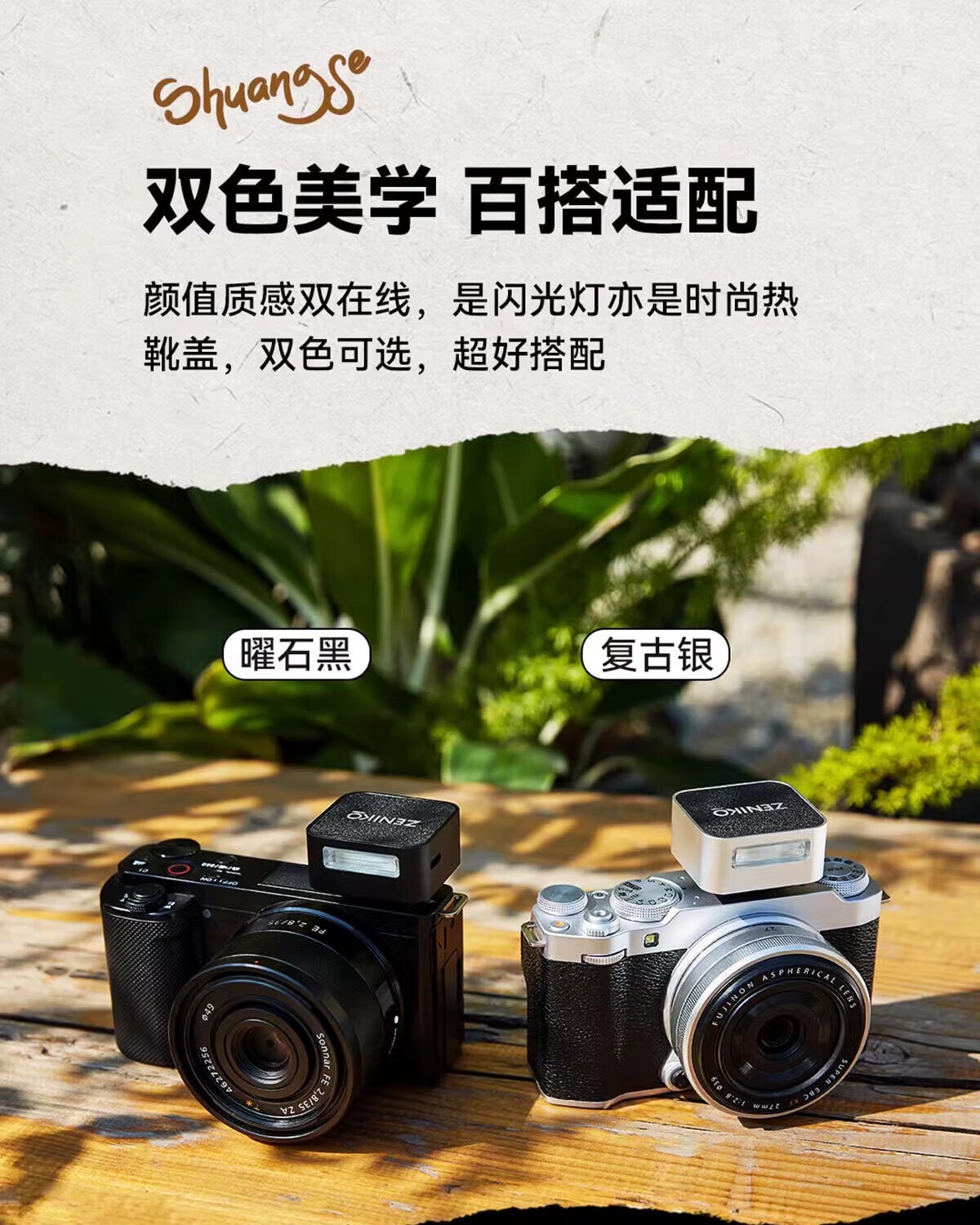ZENIKO small flash ZF08 ZF04 mini flash universal hot shoe contact continuous shooting high brightness flash small and portable retro high-looking aluminum alloy shell flash ZF04 flash black model + soft box + hot shoe booster pad