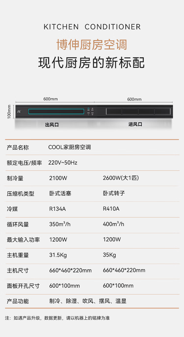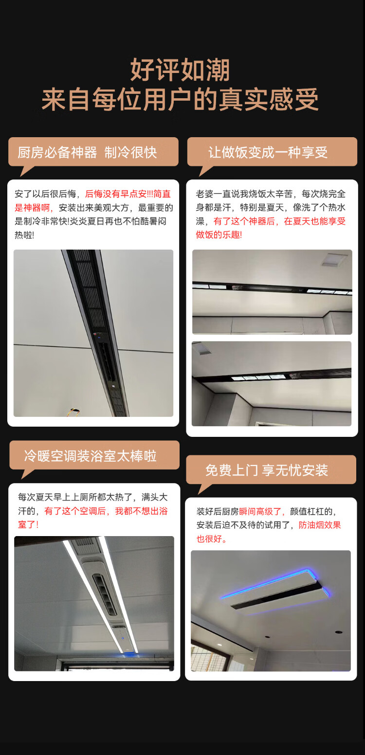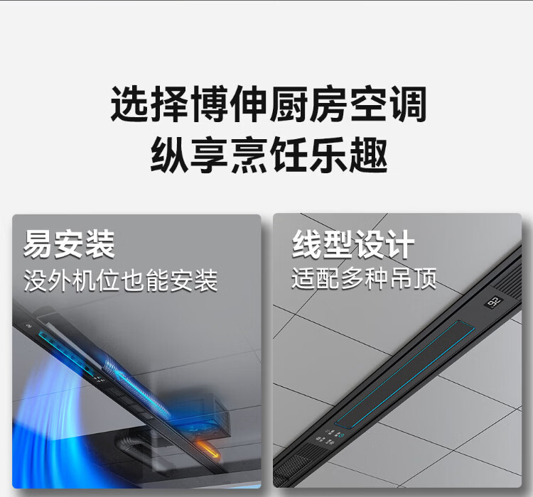 Booshen kitchen air conditioner COOL home refrigerator embedded all-in-one outdoor unit kitchen dedicated air conditioner integrated ceiling plus air conditioner can be a one-stop solution. 2 holes need to be drilled. 2100W cooling capacity. Suitable for 5 double air outlets.