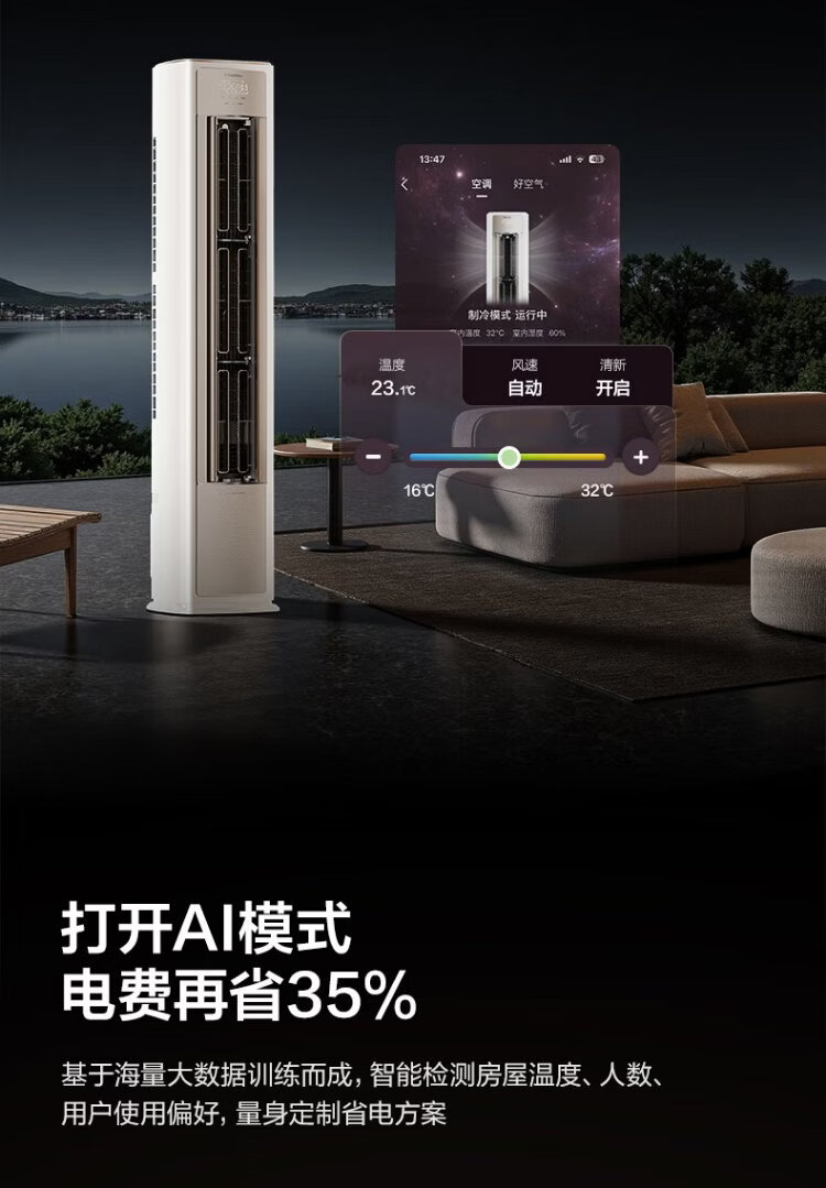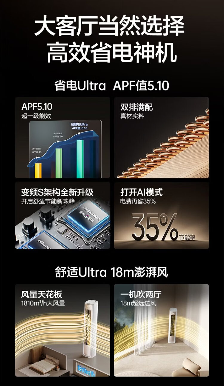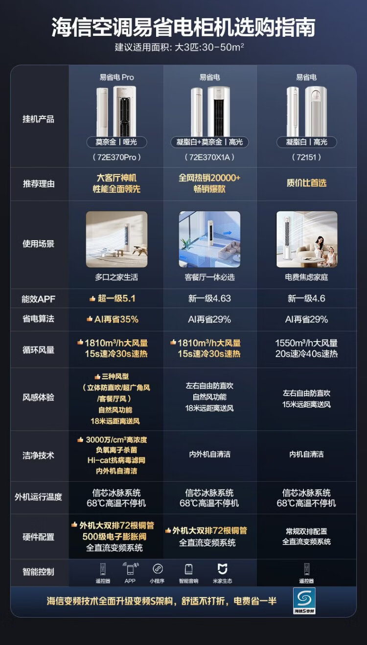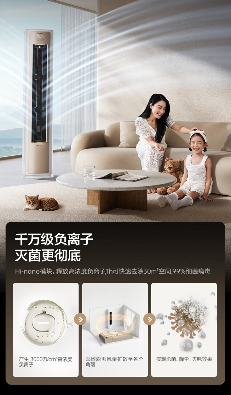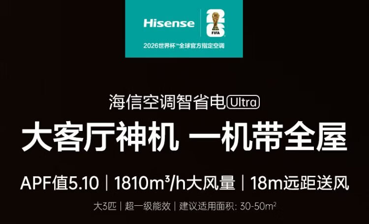 Hisense Big Mint Air Conditioner Intelligent Power Saving Ultra Cabinet Machine Large 3 HP World Cup Customized Air Conditioner AI Power Saving Simulated Natural Wind Super Level 1 Energy Efficiency National Subsidy 20% Trade-In KFR-72LW/E370Pro-X1