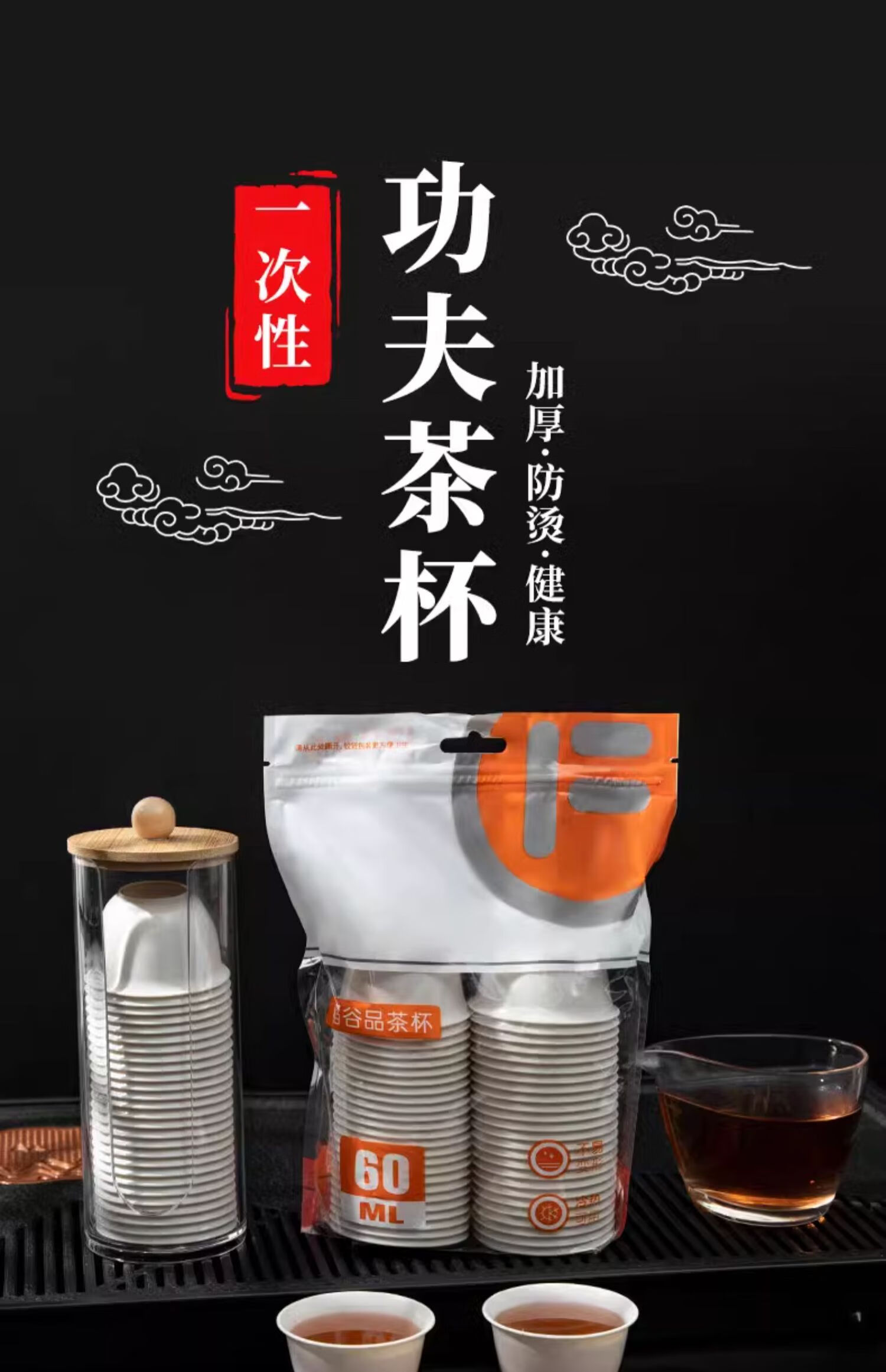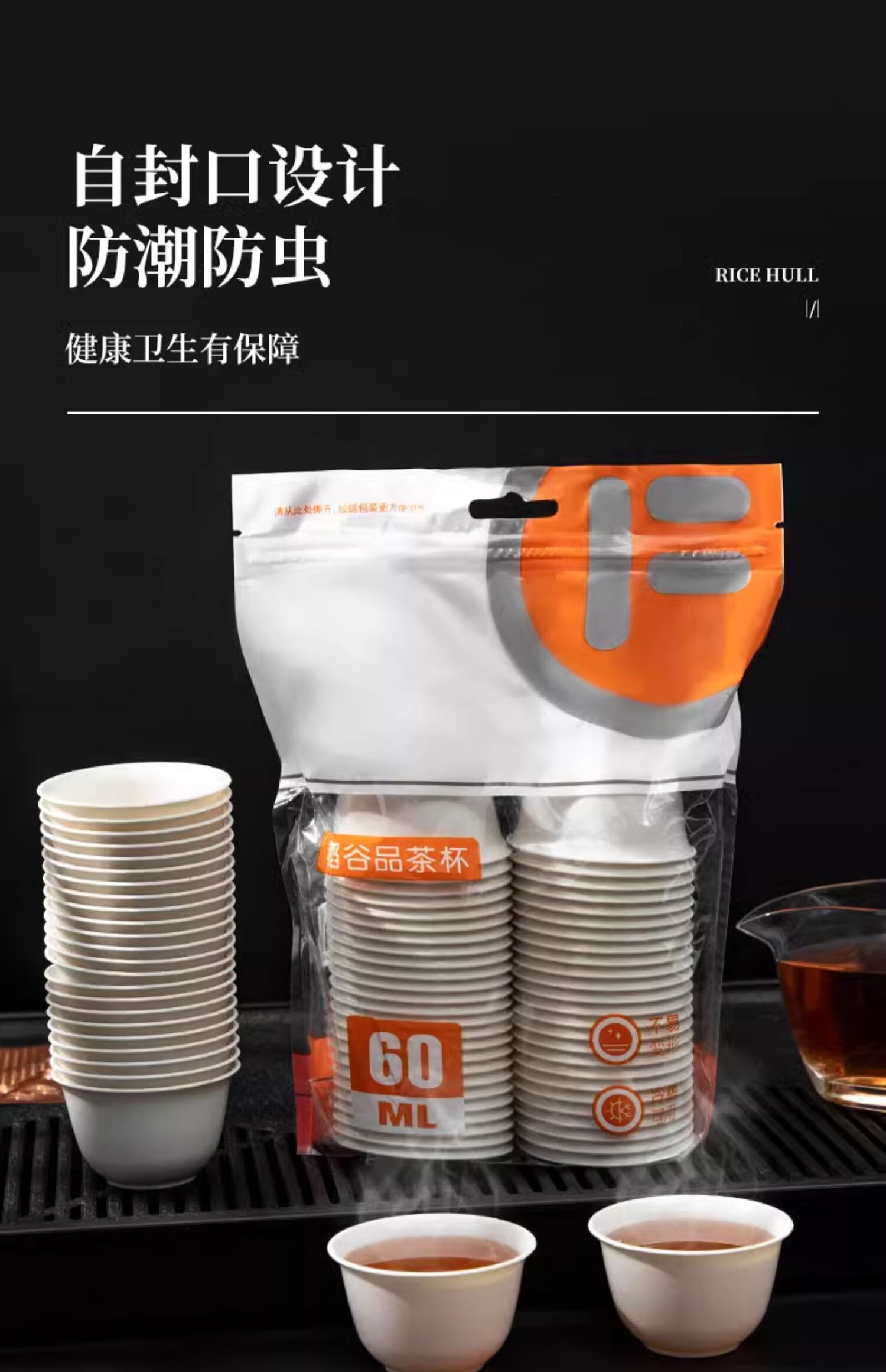 Shouli High Temperature Resistant Disposable Kung Fu Tea Cup with Storage Cup Holder for Home Office Hospitality Rice Husk Tea Cup with Cup Holder Rice Hull Tea Cup 4 packs (200 in total) 1 piece No specification