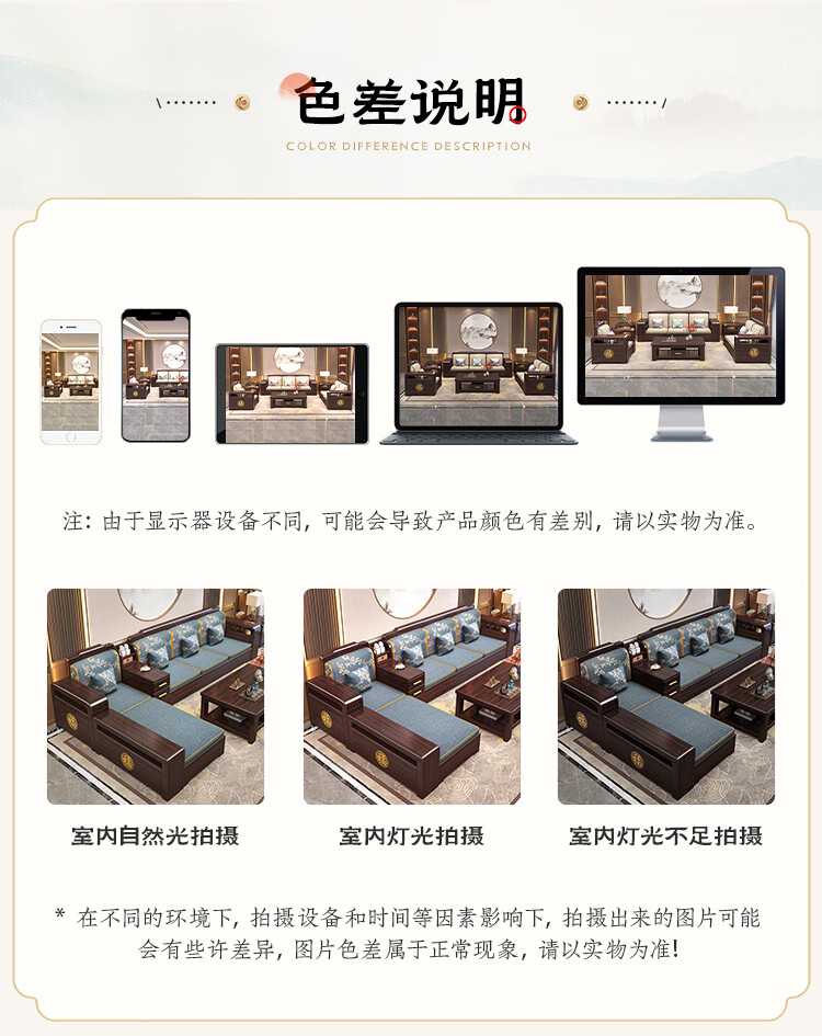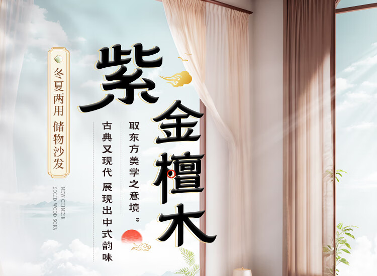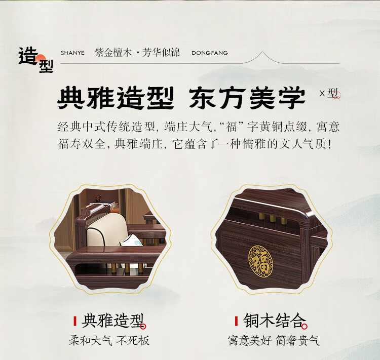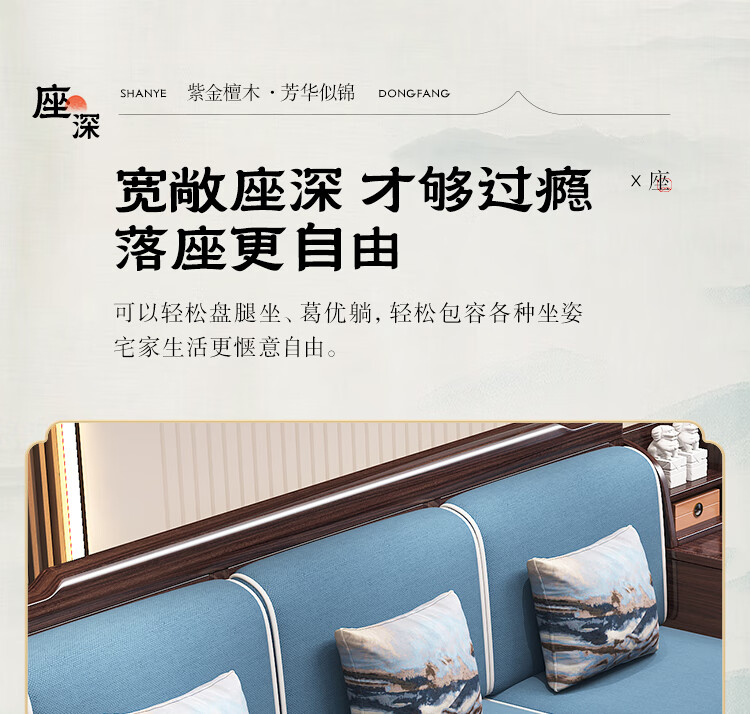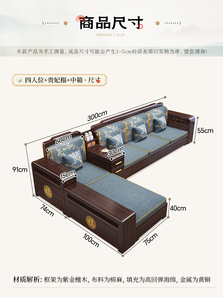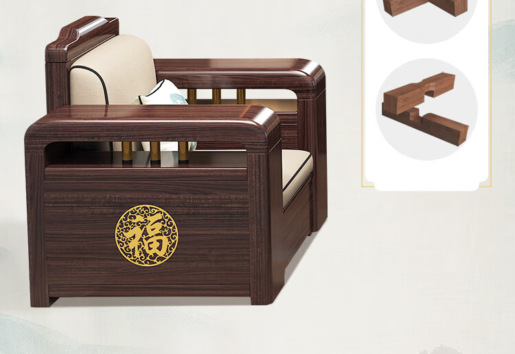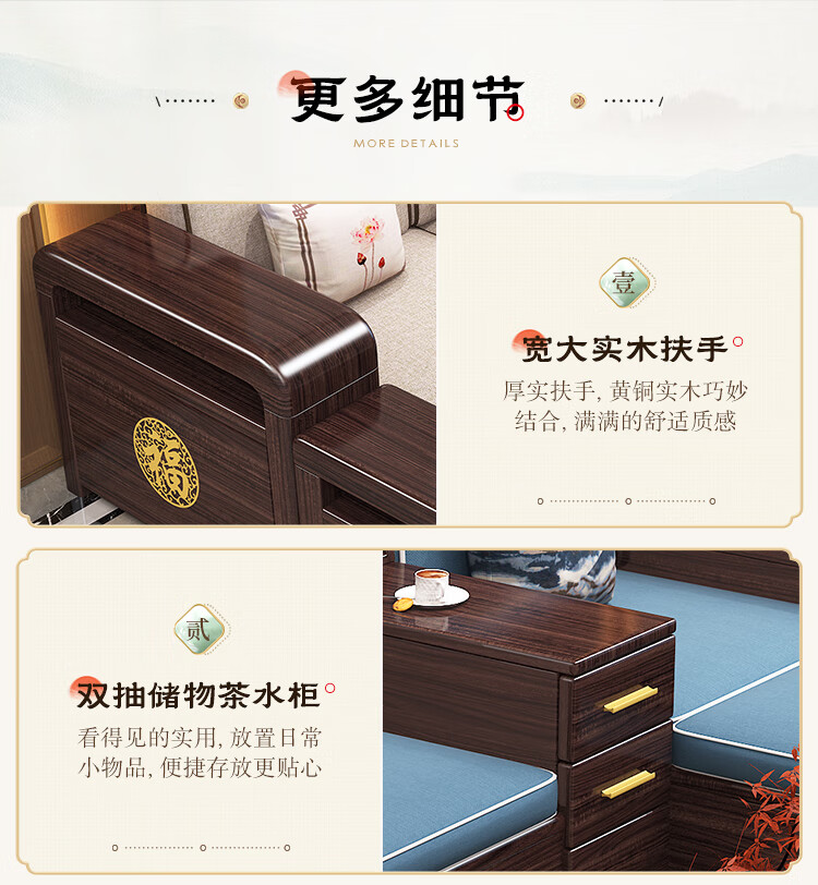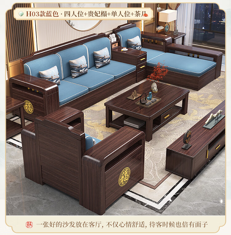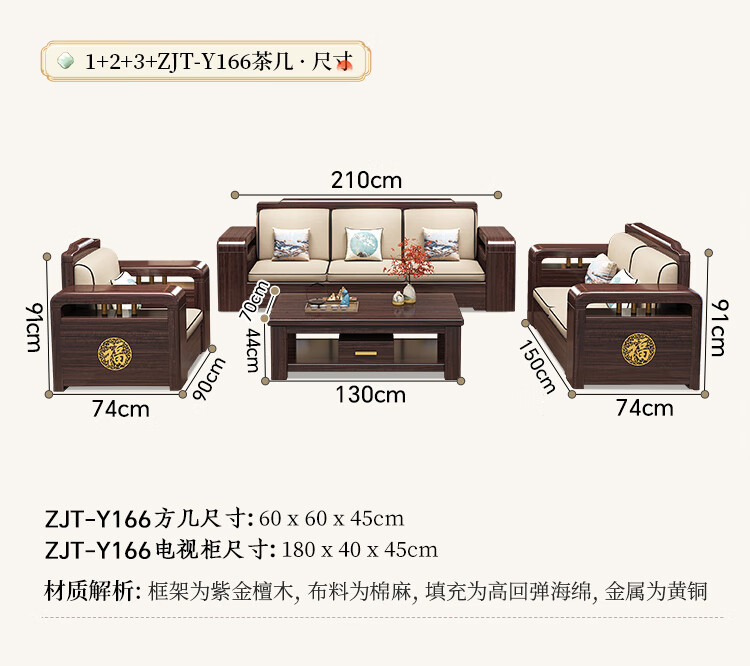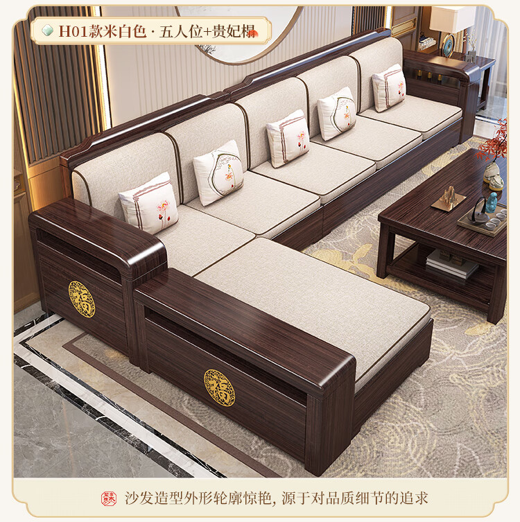 Chinese family purple sandalwood solid wood sofa combination living room winter and summer dual-purpose sofa new Chinese style storage furniture 1+1+3+coffee table