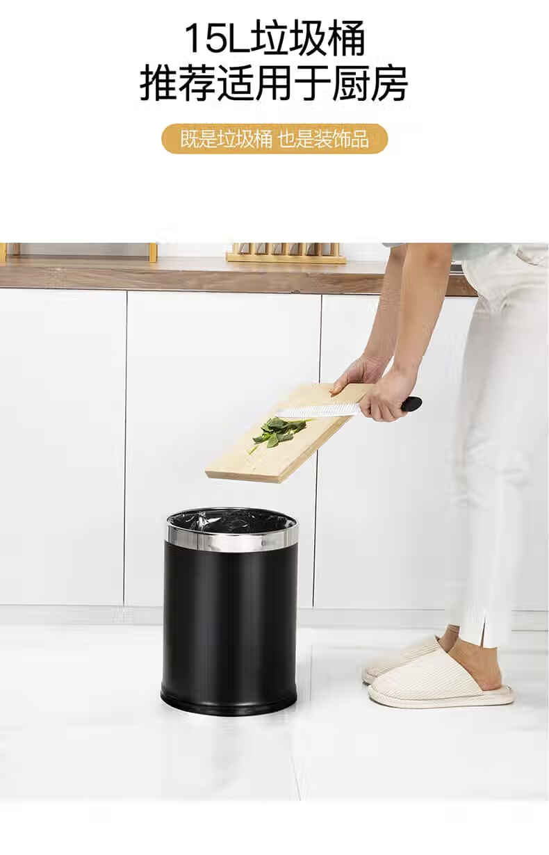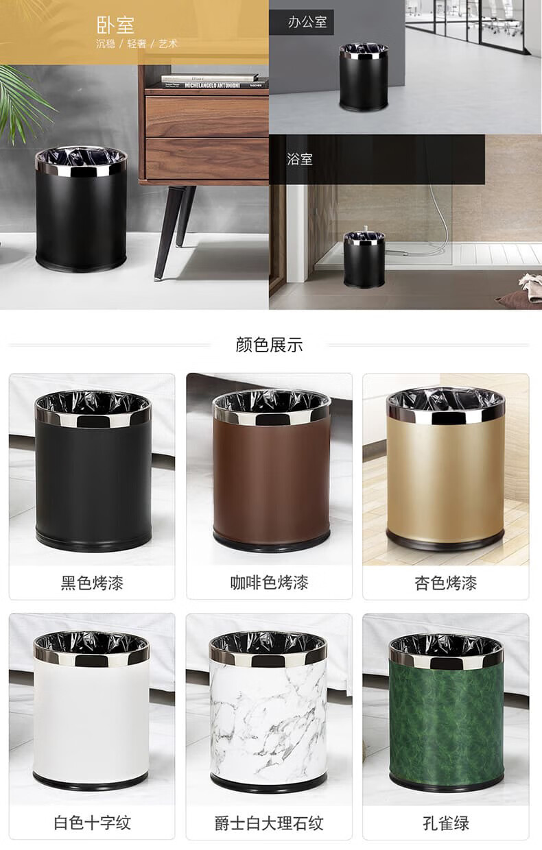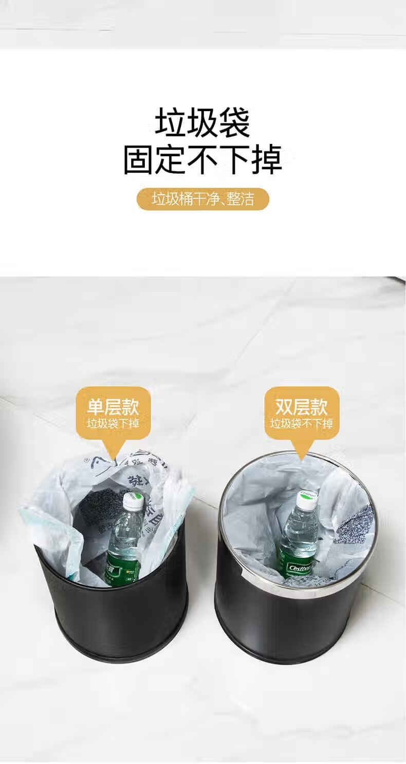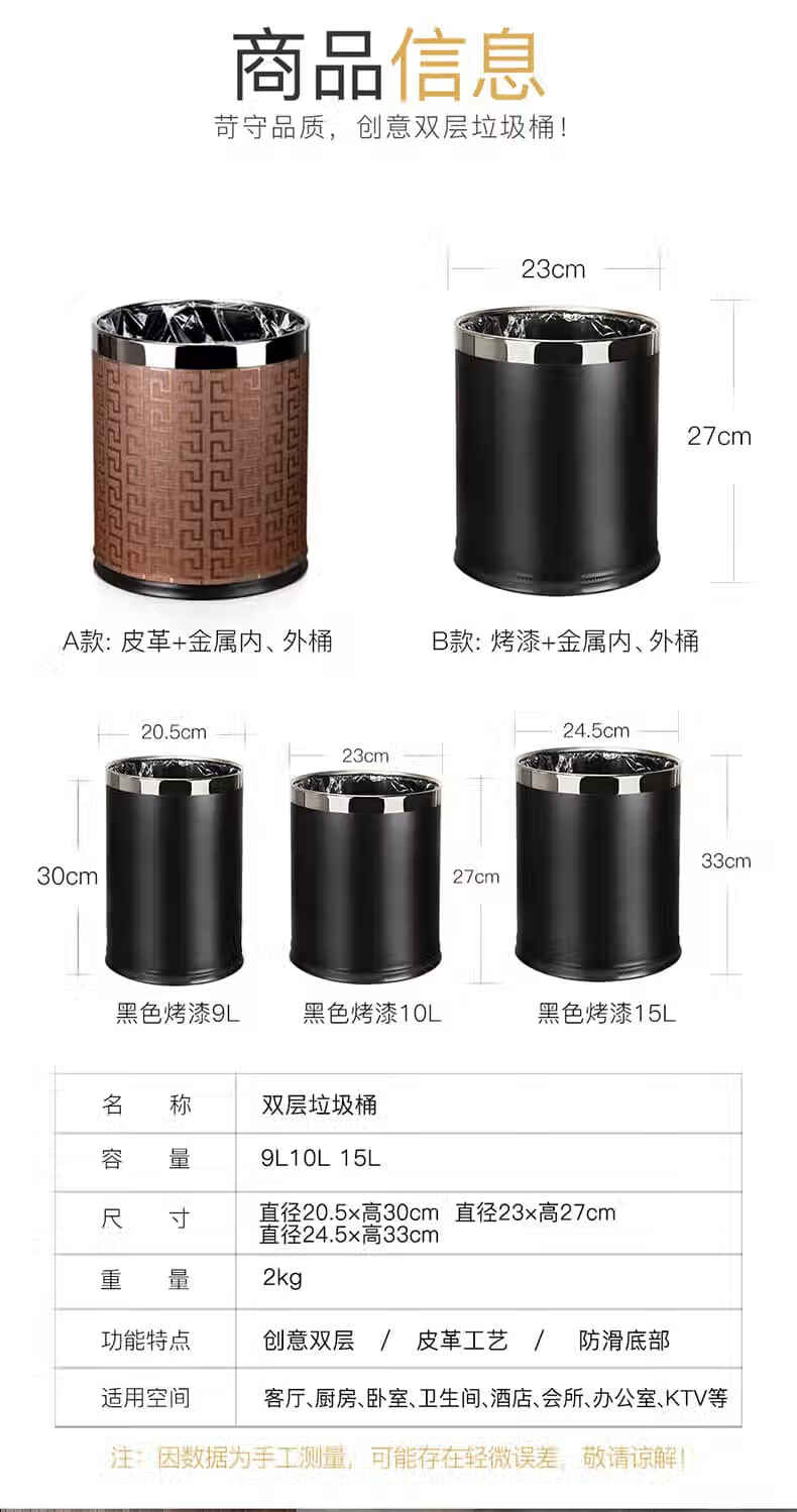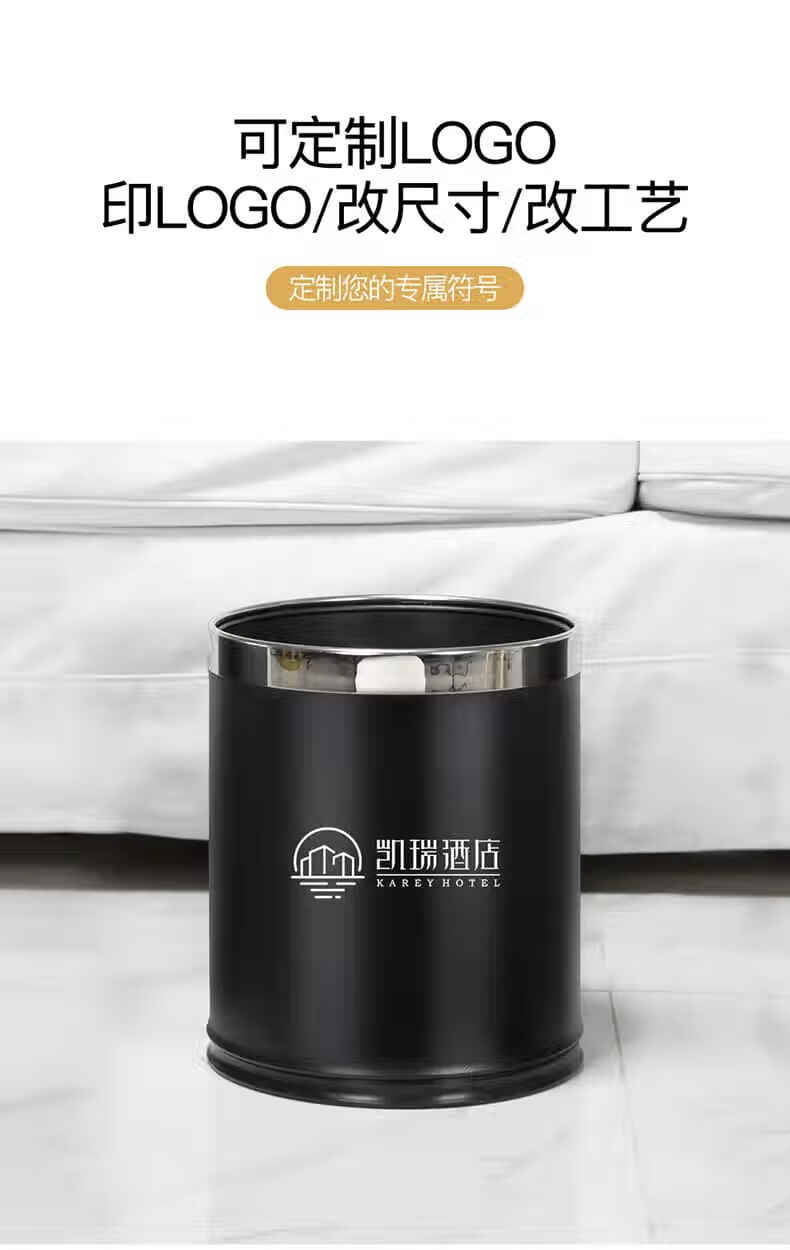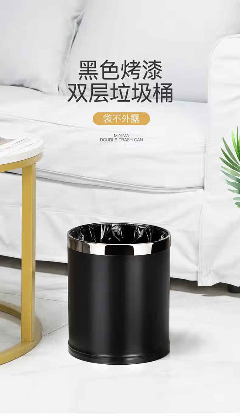 Trash can light luxury style home office living room hotel hotel toilet bathroom commercial catering sanitary bucket 10L silver ring-brown paint double-layer metal