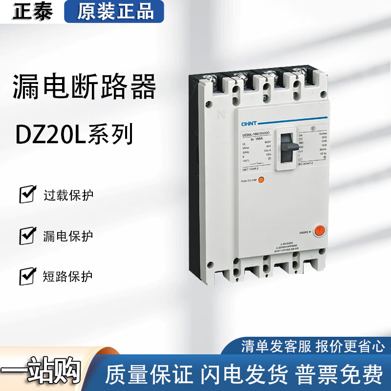 Chint leakage protector plastic case circuit breaker DZ20L leakage switch 400A three-phase four-wire 4p160A250A 160A 3P N