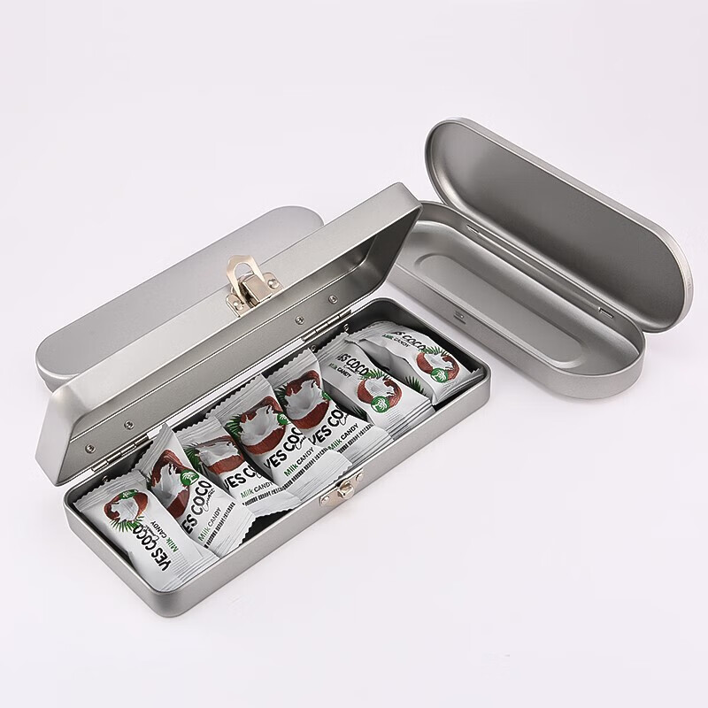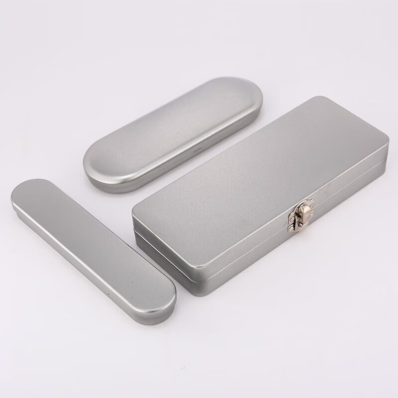 Tin box flip-top packaging pen stationery acne needle tweezers storage iron box frosted silver metal box rectangular iron box 20x8cm with lock