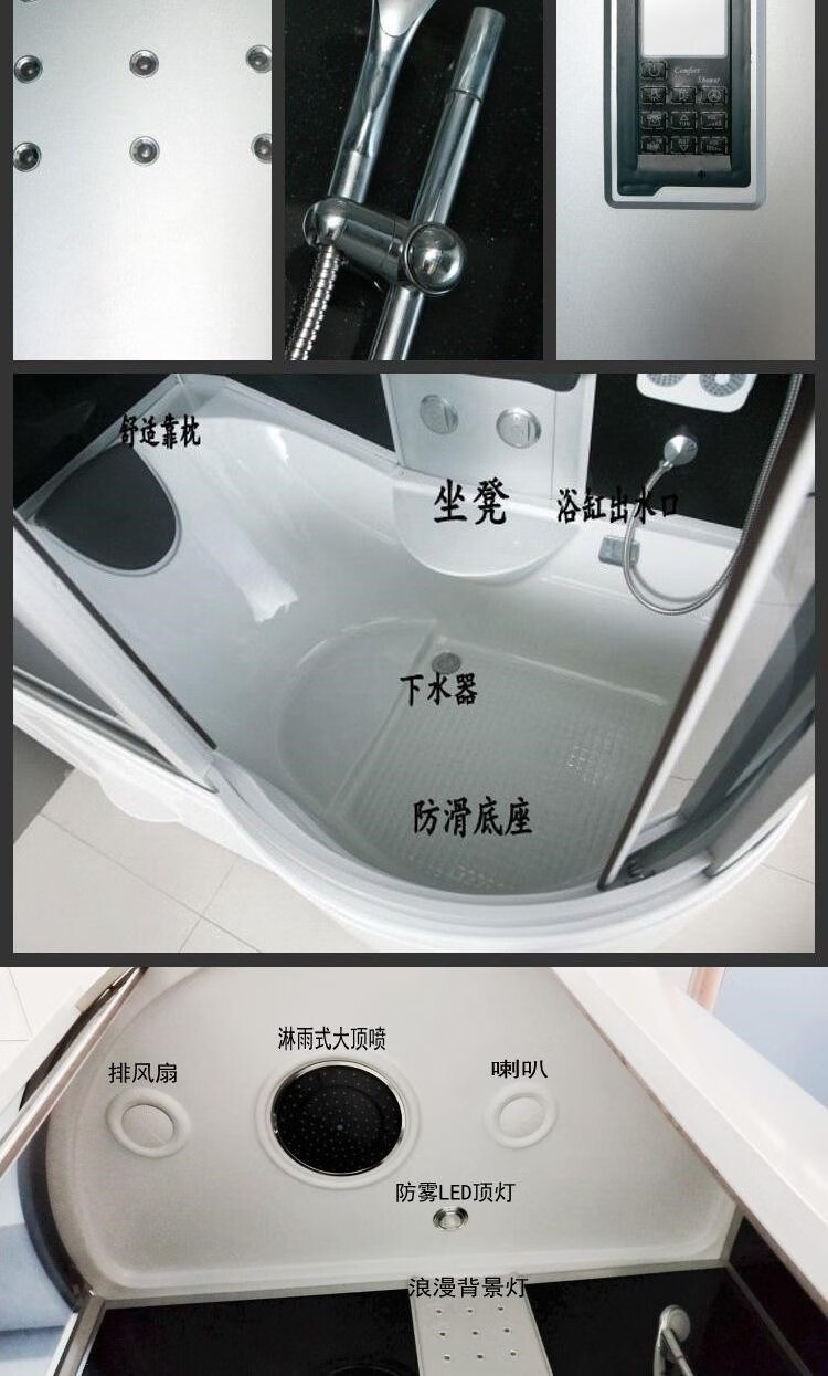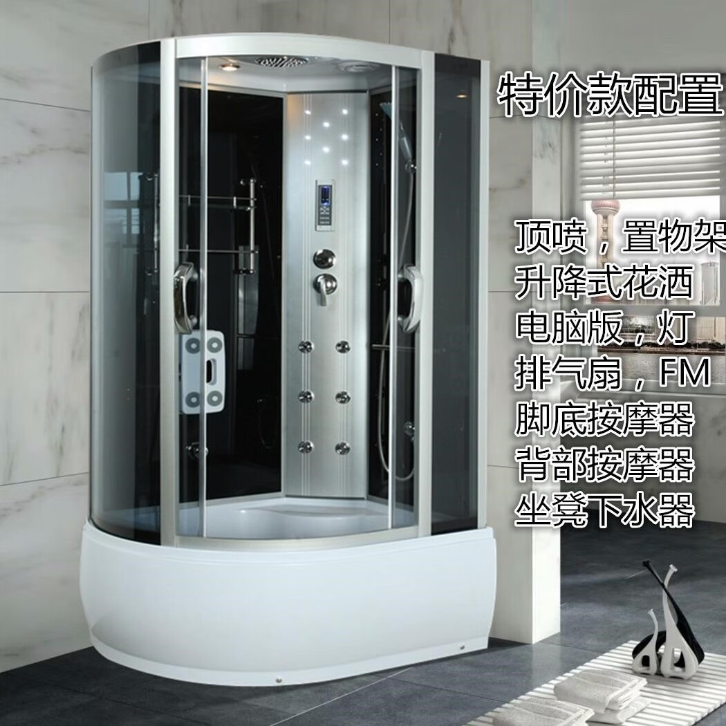 JOMOO shower room overall bathroom curved fan-shaped with bathtub steam integrated closed glass shower room home bath room 90*150 sand silver black and white optional including steam