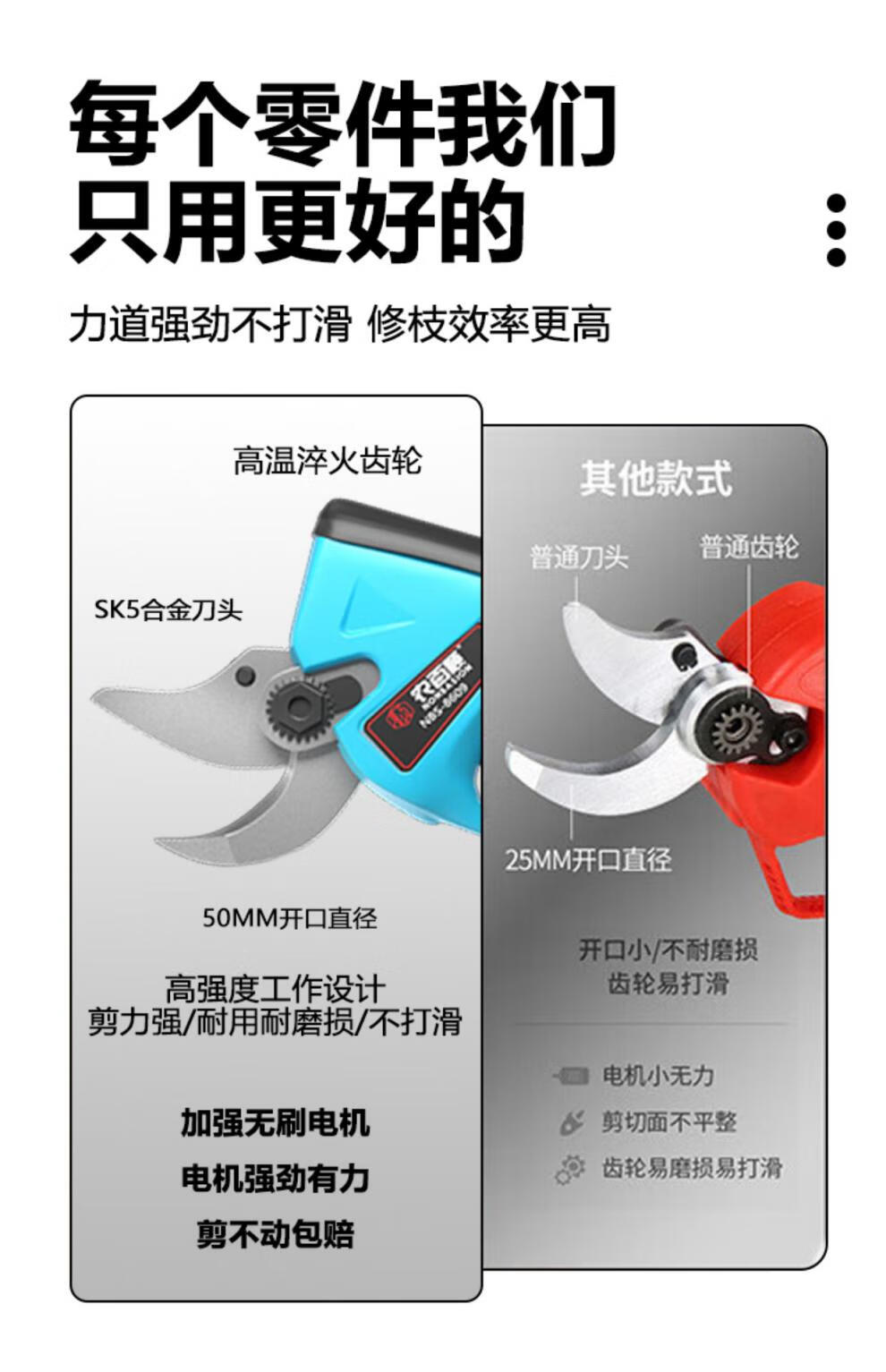 Dongcheng Nong Baishun electric pruning shears garden lithium battery rechargeable special scissors fruit tree thick tree shears high branch pruning machine C 2.8 cm household model two batteries one charge +