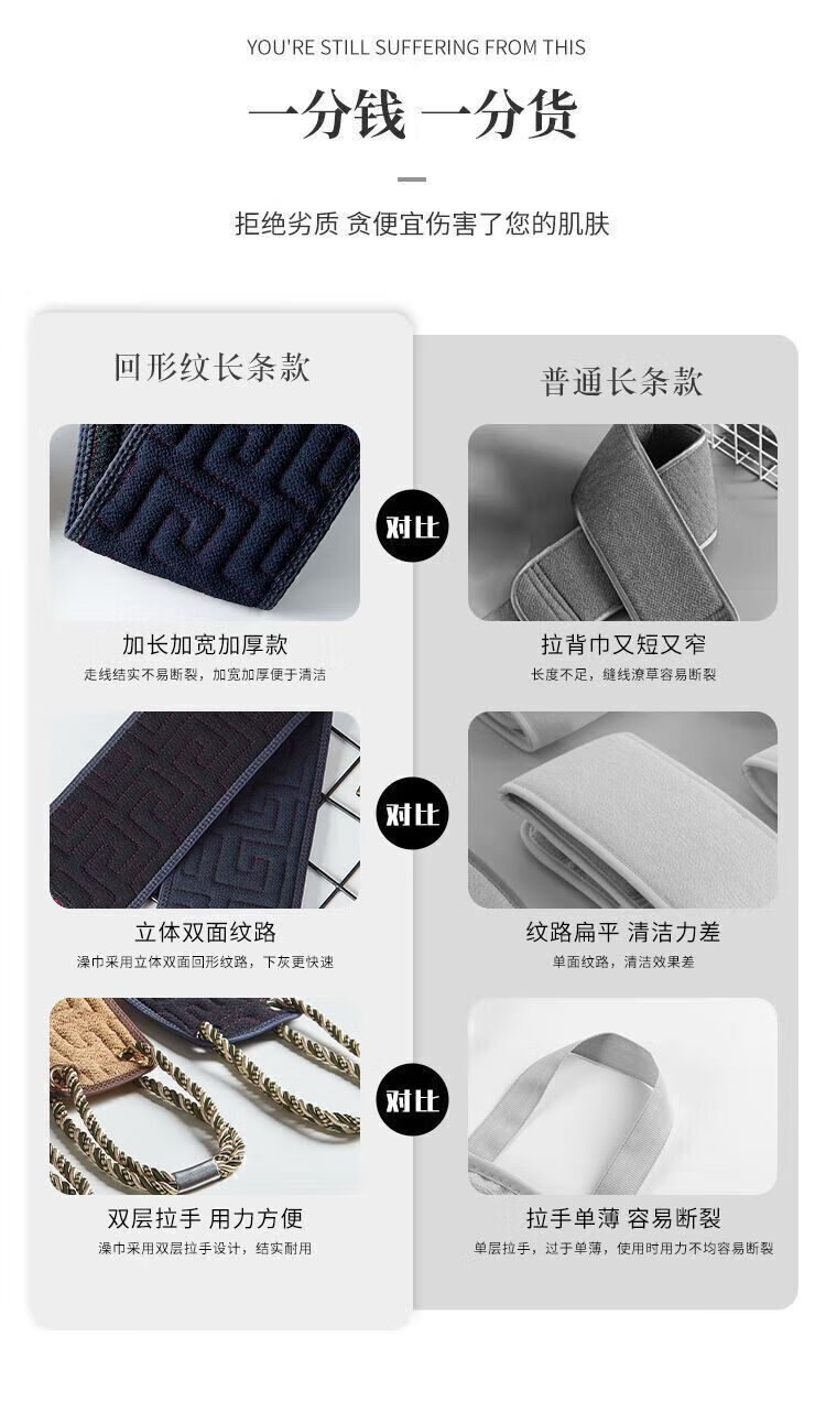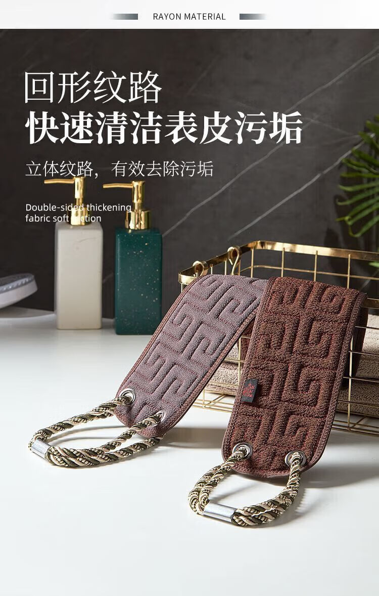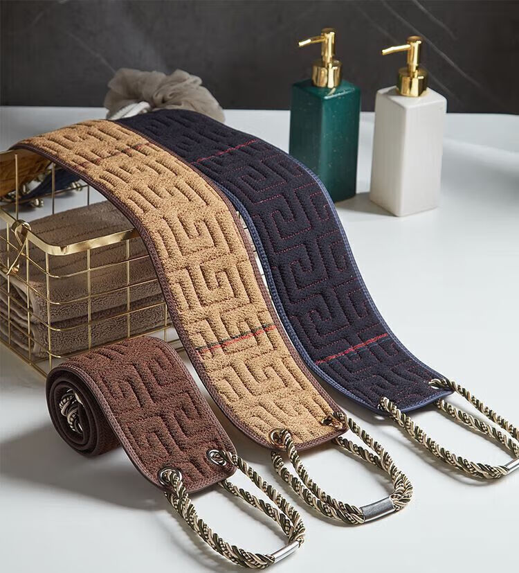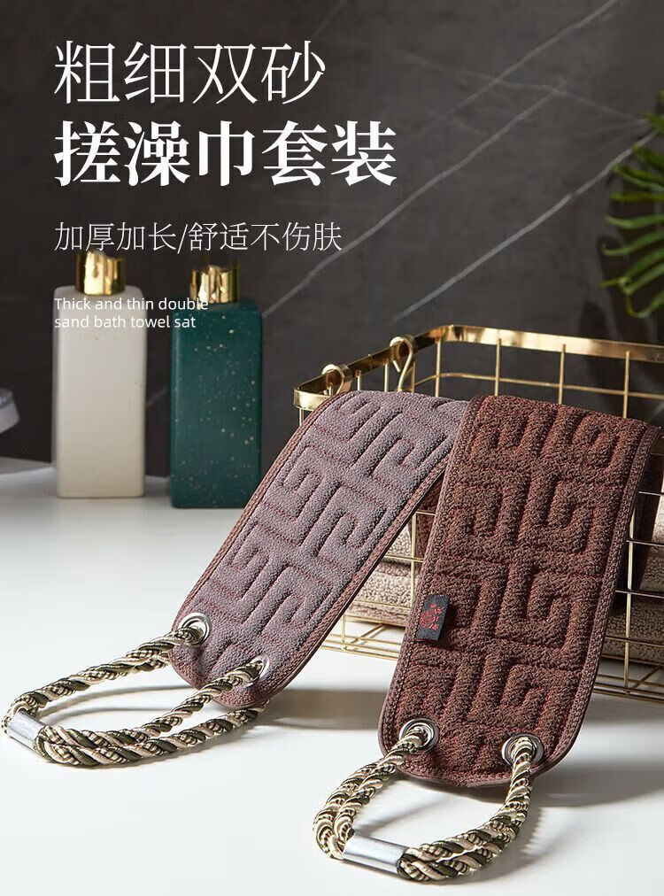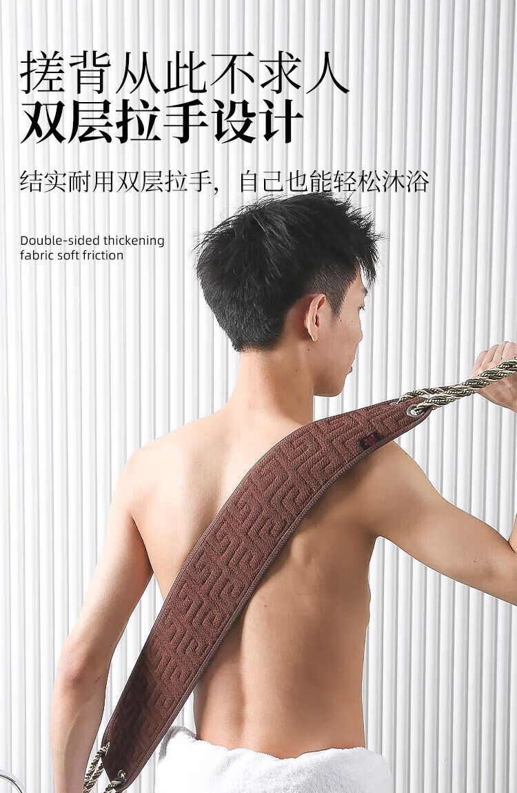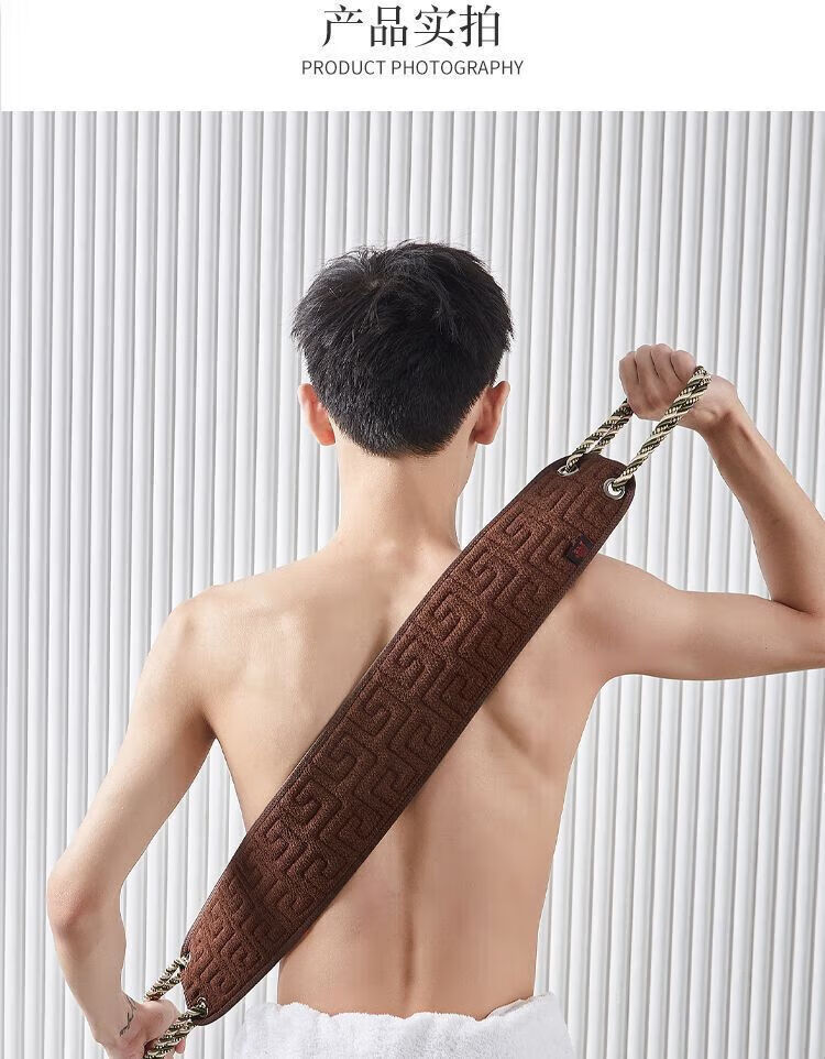 Bath towel, men's special bath and back rub artifact, powerful new mud rub artifact, long strip that does not ask anyone to wipe the back for home use, lengthened and thickened - AB style back rub towel, coffee