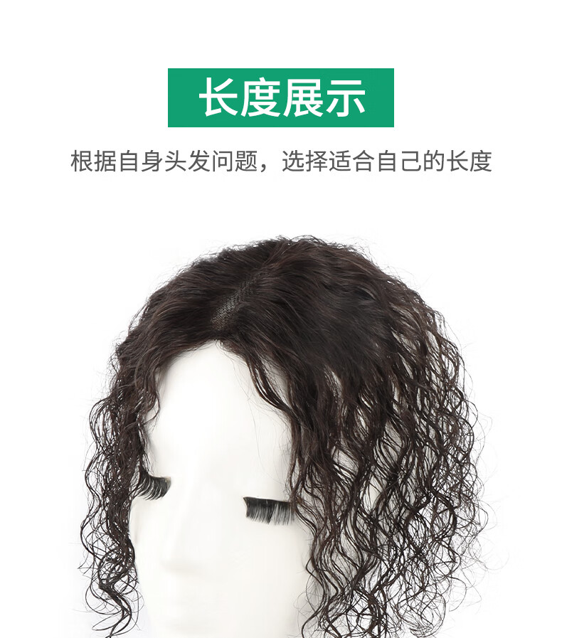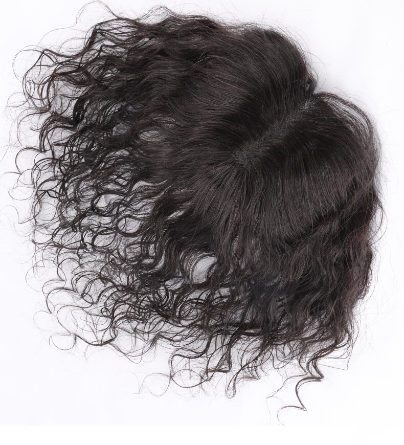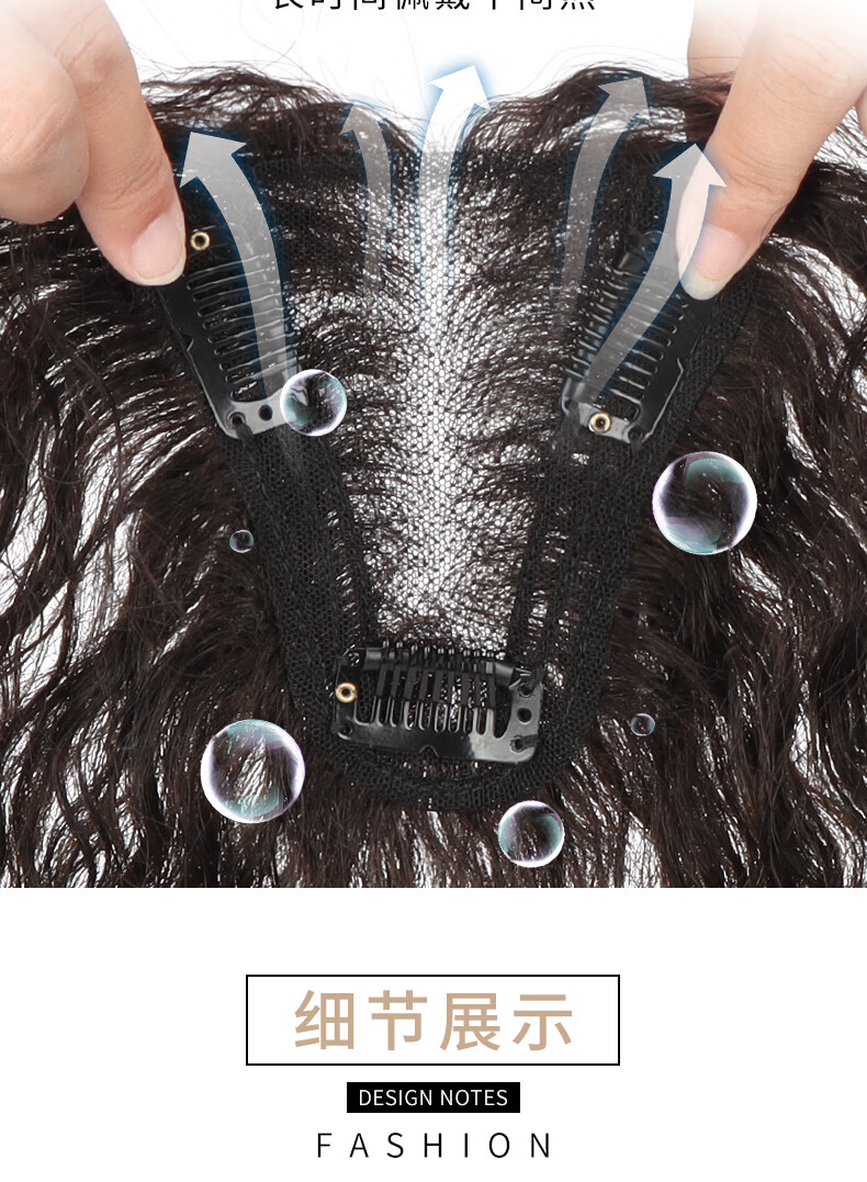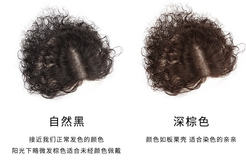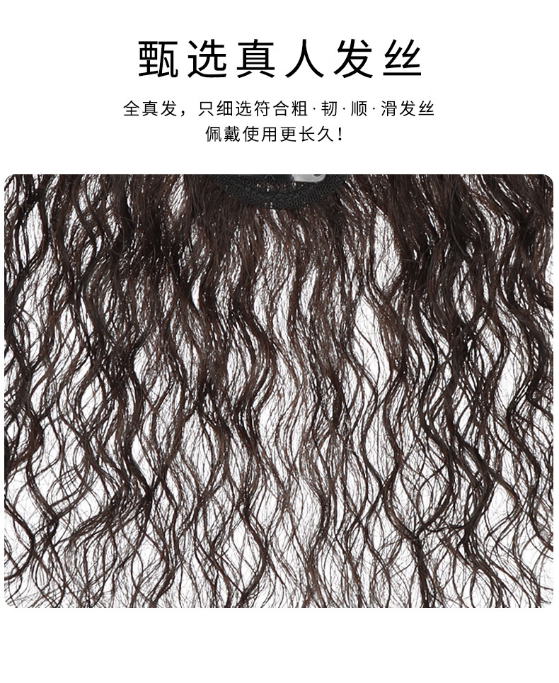 Wig for women to increase hair volume on top of head, fluffy and traceless to cover gray hair, natural real hair wool curls, light and thin curly hair replacement piece, curly hair T9*10, dark brown, 25cm bangs
