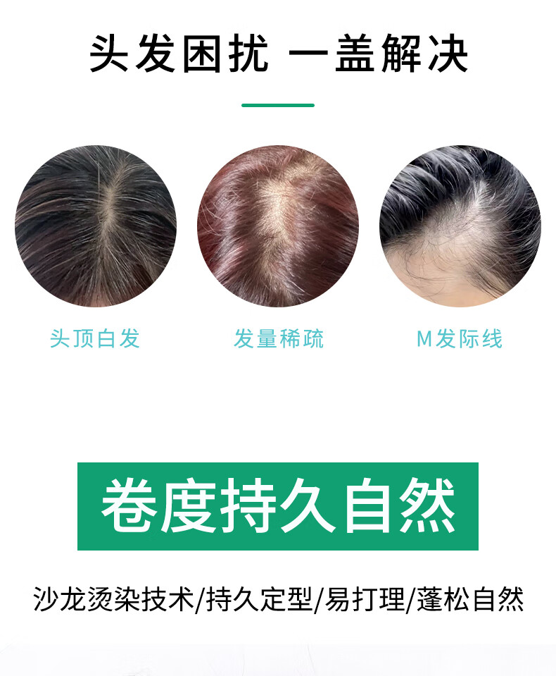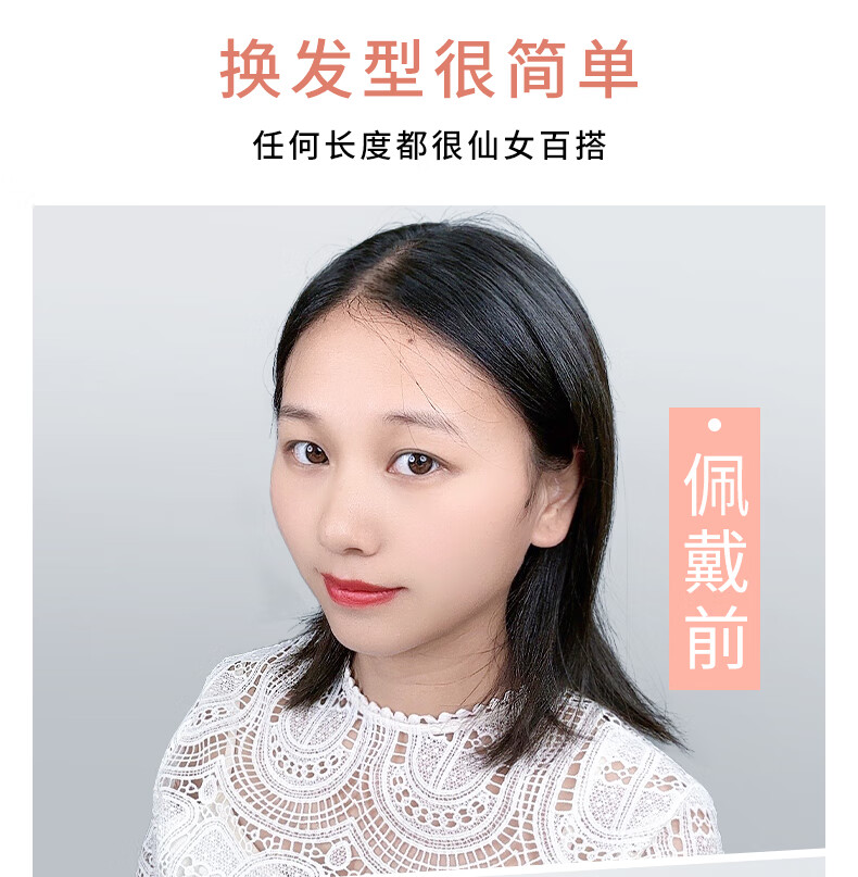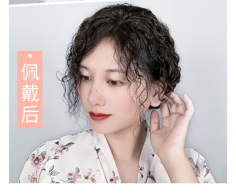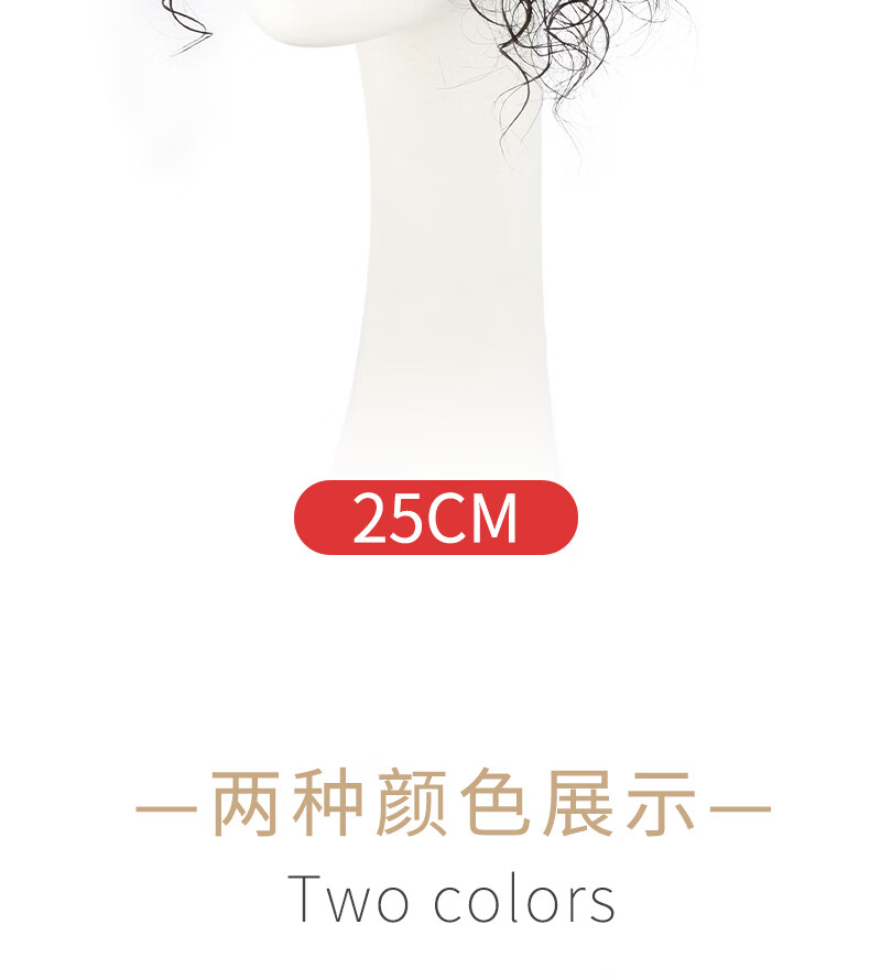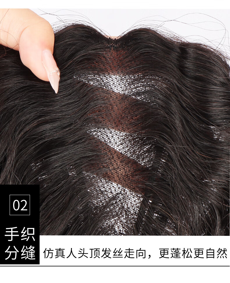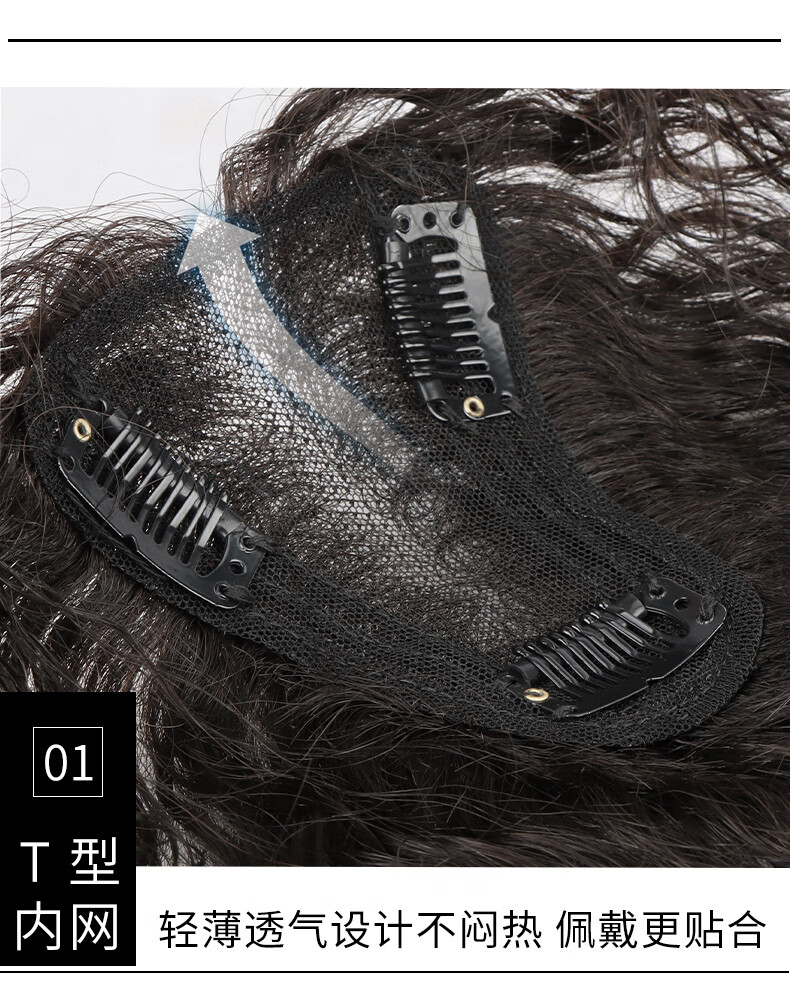 Wig for women to increase hair volume on top of head, fluffy and traceless to cover gray hair, natural real hair wool curls, light and thin curly hair replacement piece, curly hair T9*10, dark brown, 25cm bangs