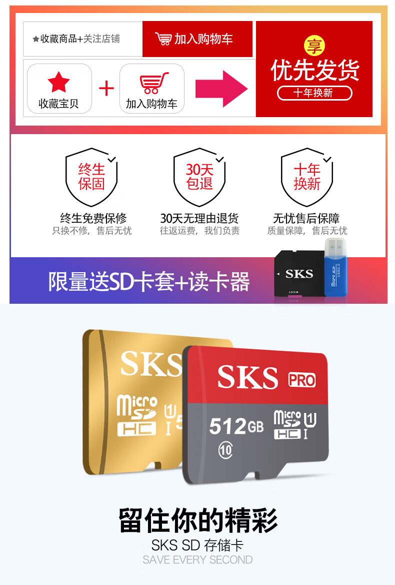 512G high speed universal TF memory card 256G mobile phone camera tablet driving recorder monitoring mp3 1TB high speed universal with card reader sd card holder