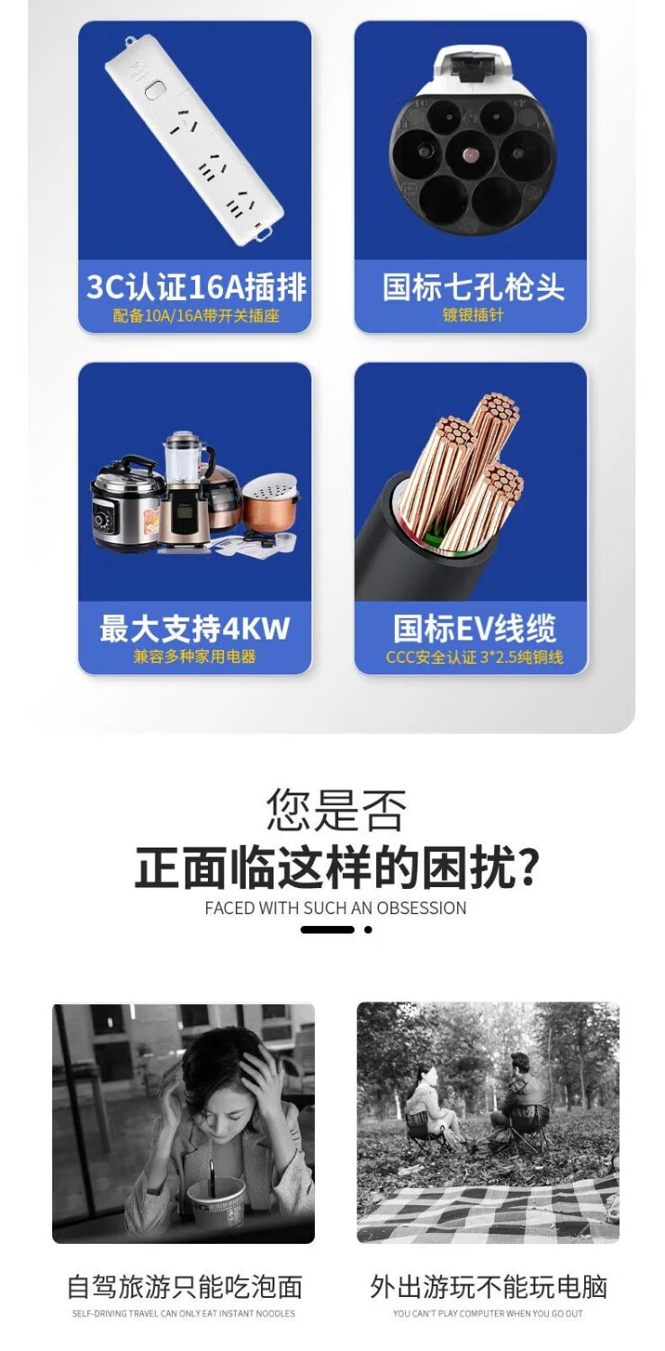 Jingbao Electric Wulingzhiguang EV discharge gun external power plug outdoor camping socket bull socket Wulingzhiguang EV male steak plug discharge gun (5 meters cord + storage bag)