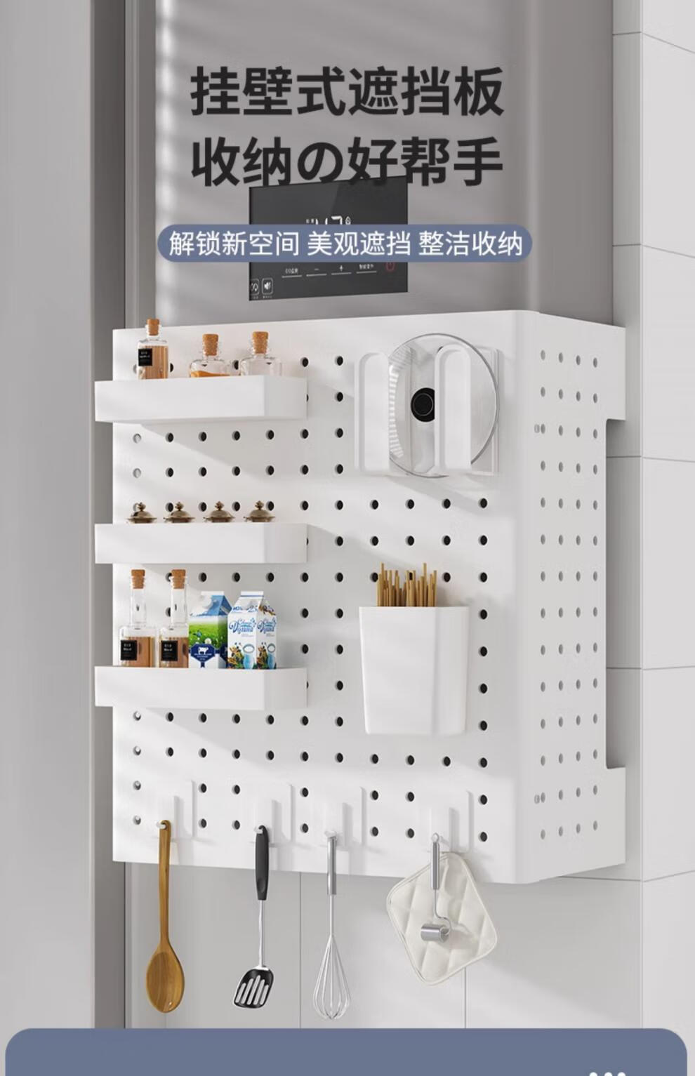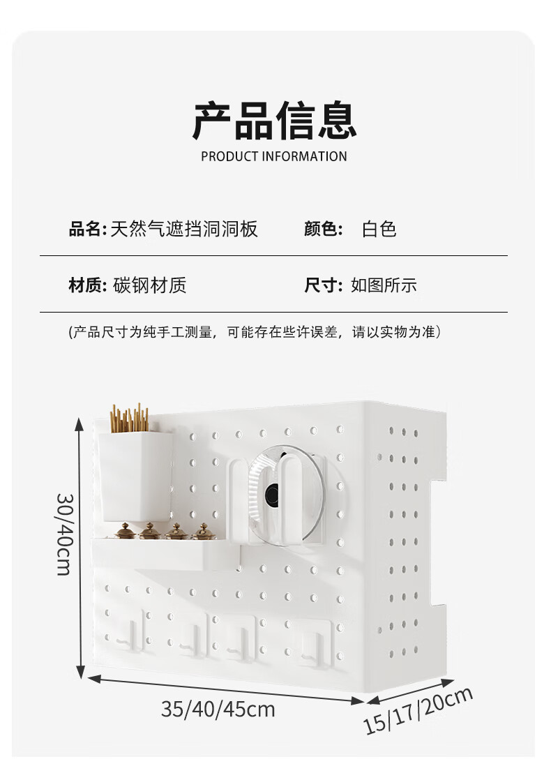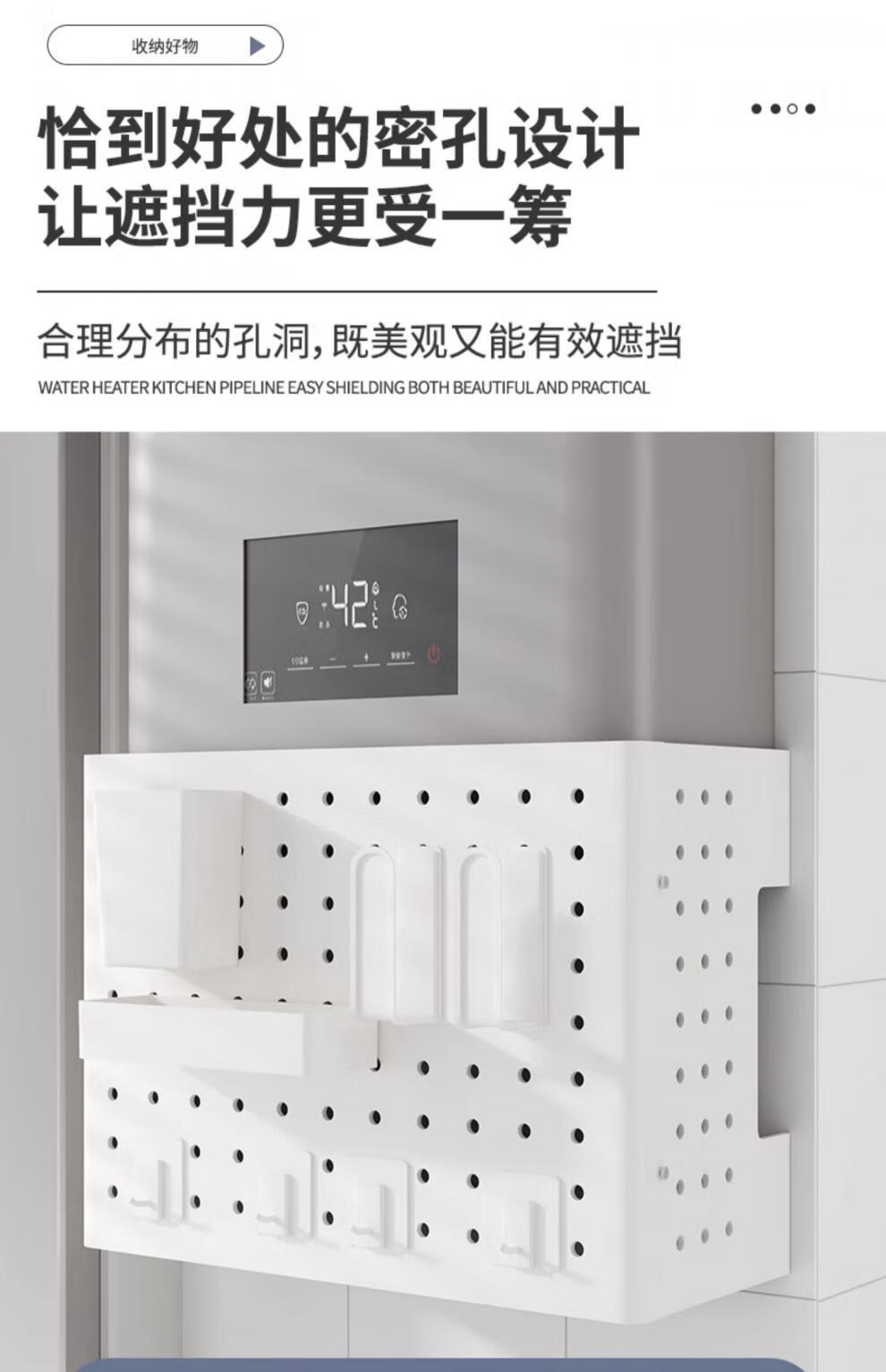 Jingsheng quality gas pipe shielding cover decorative hole plate kitchen wall cover boiler stove storage rack shielding plate white-width 35 height 30 depth 17 free hooks*