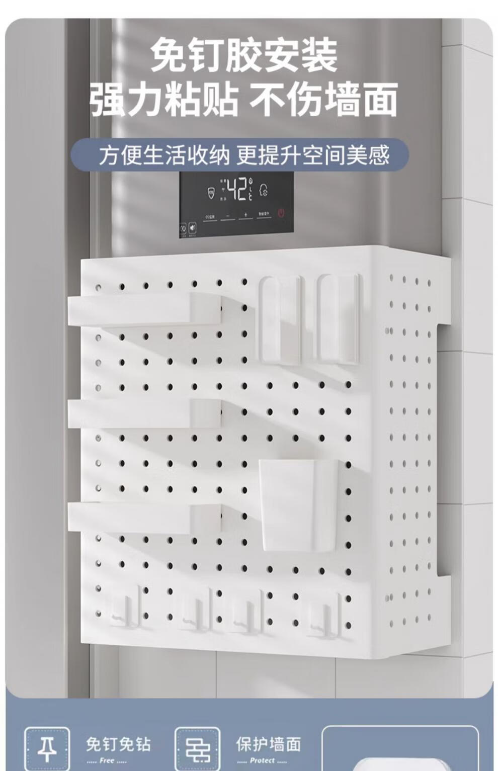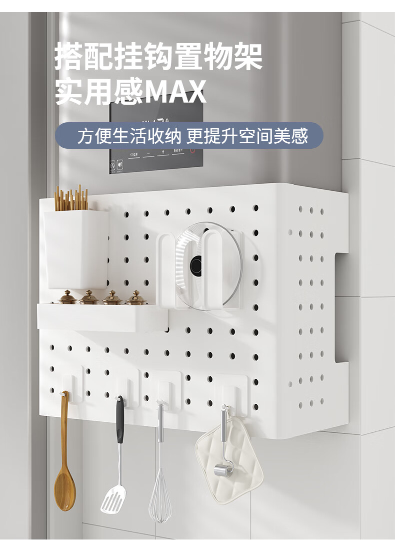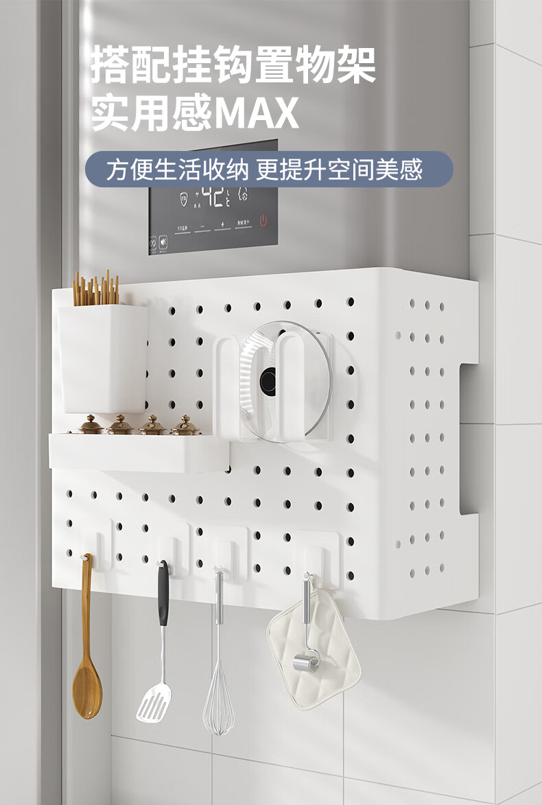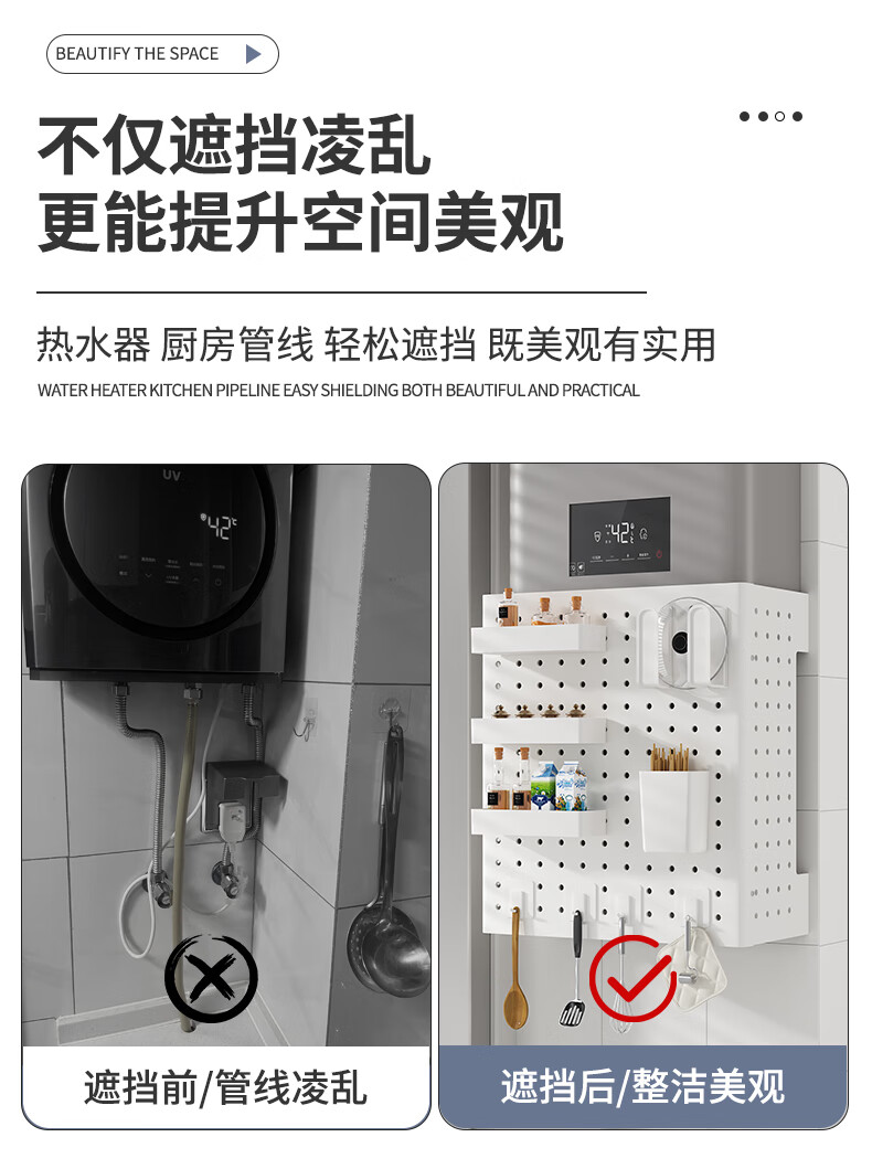 Jingsheng quality gas pipe shielding cover decorative hole plate kitchen wall cover boiler stove storage rack shielding plate white-width 35 height 30 depth 17 free hooks*