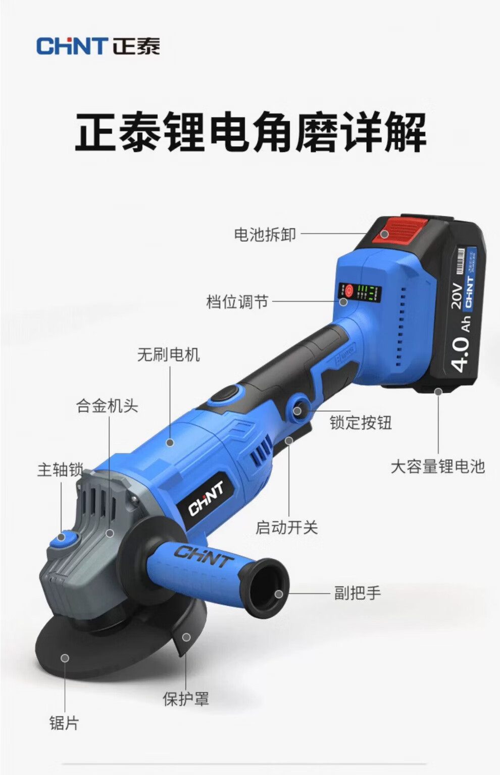 Chint brushless lithium angle grinder rechargeable grinder multi-function cutting machine polishing machine hand grinder brushless high configuration 5000mA one battery + accessories