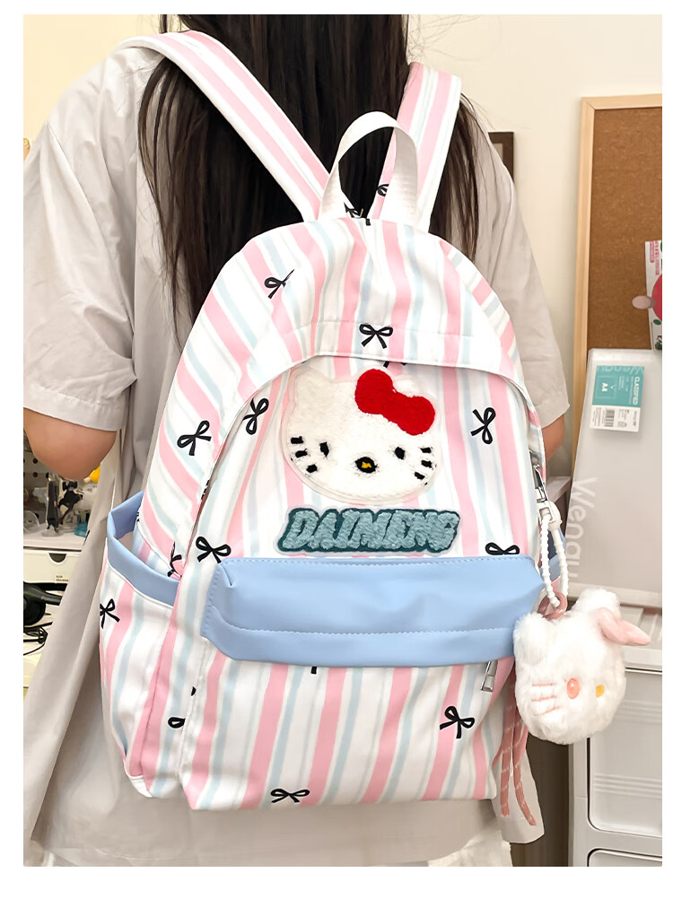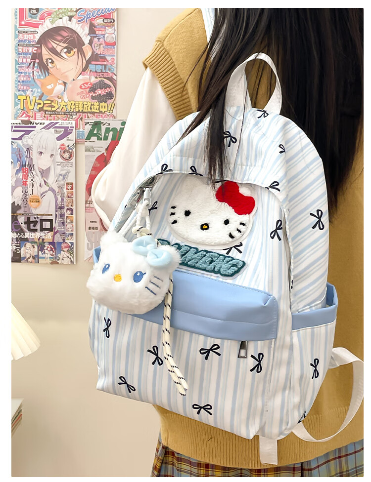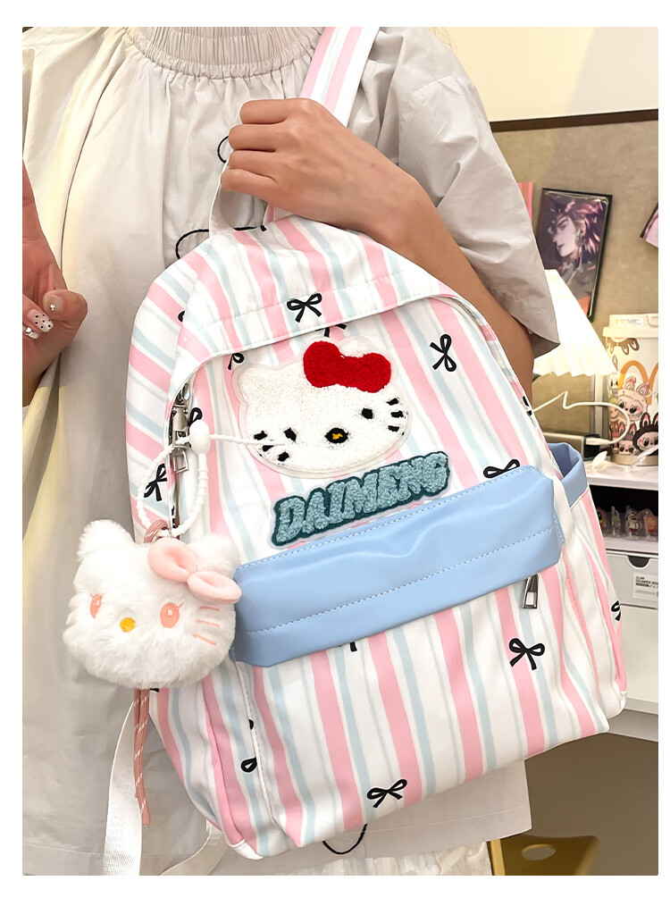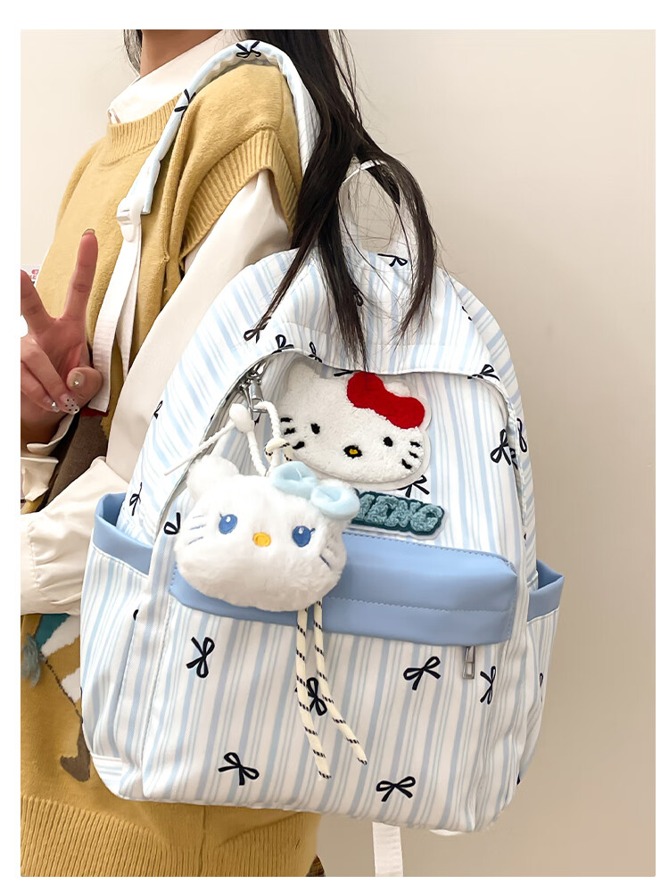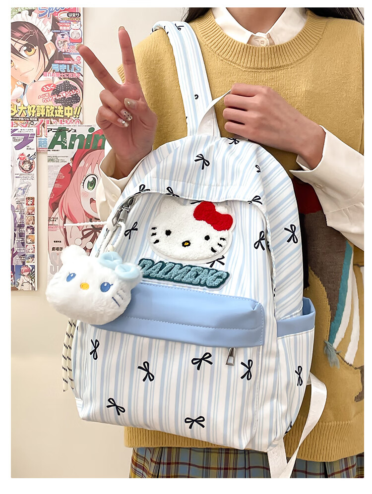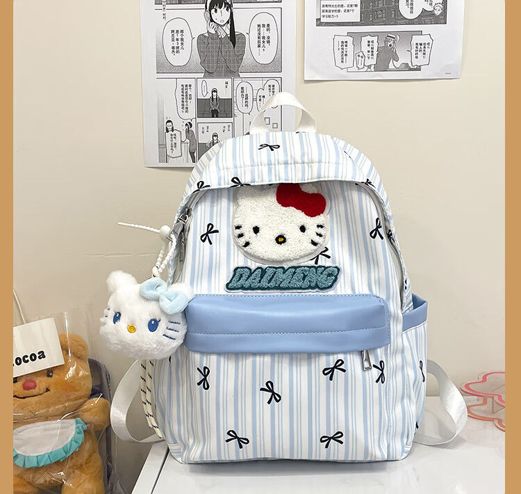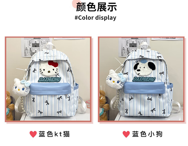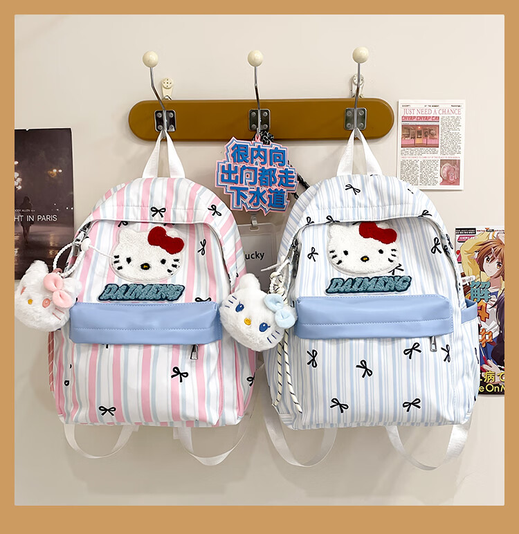 Sirulin schoolbag female ins cute primary school student simple small fresh backpack middle school student fashion versatile travel backpack blue kt cat + pendant