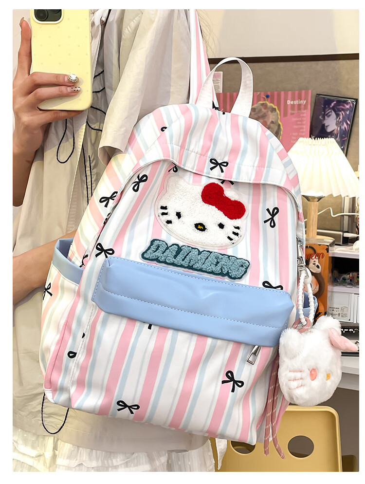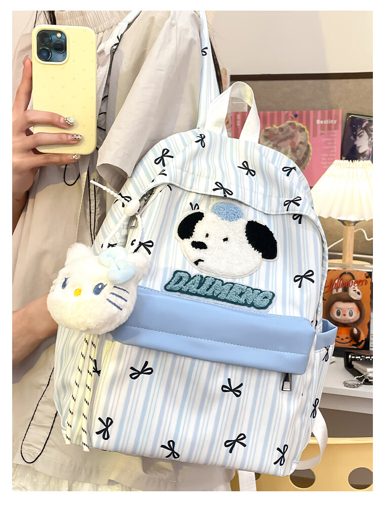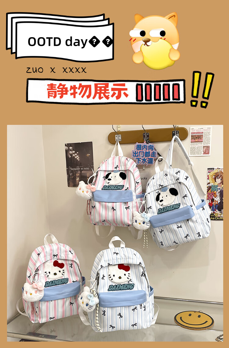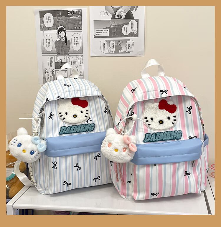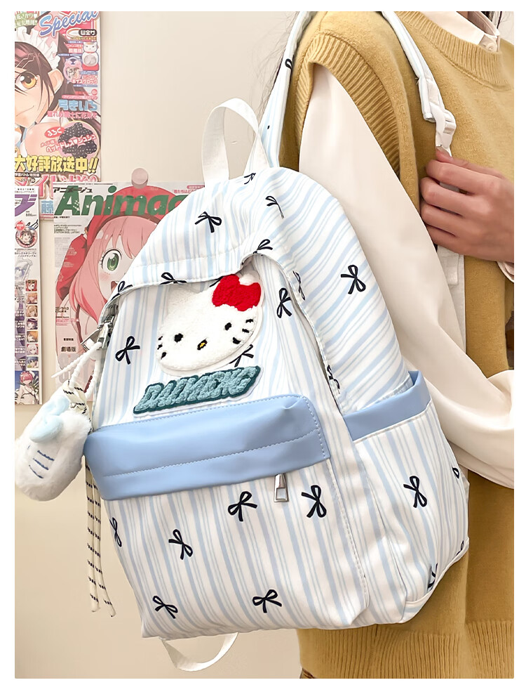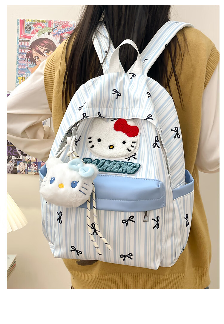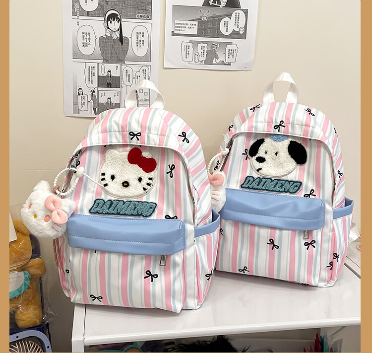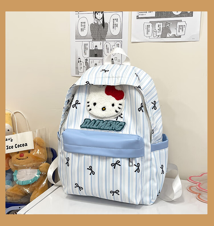 Sirulin schoolbag female ins cute primary school student simple small fresh backpack middle school student fashion versatile travel backpack blue kt cat + pendant