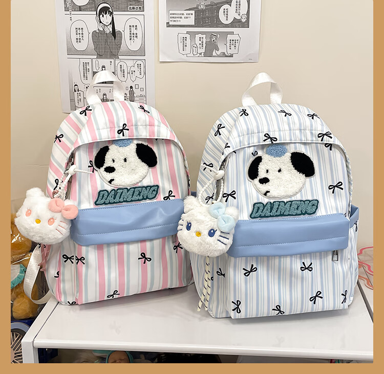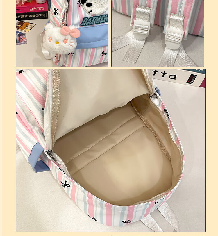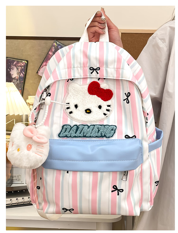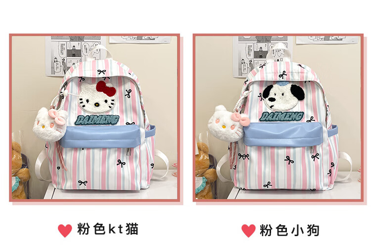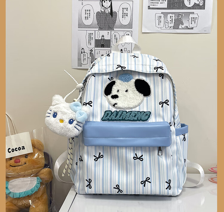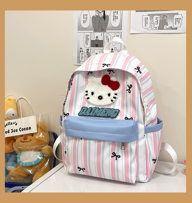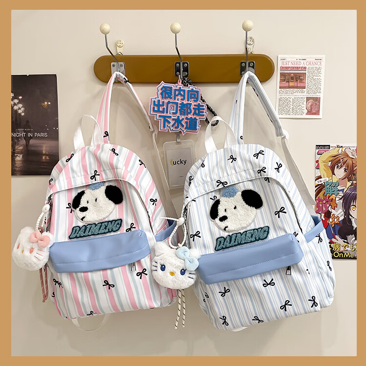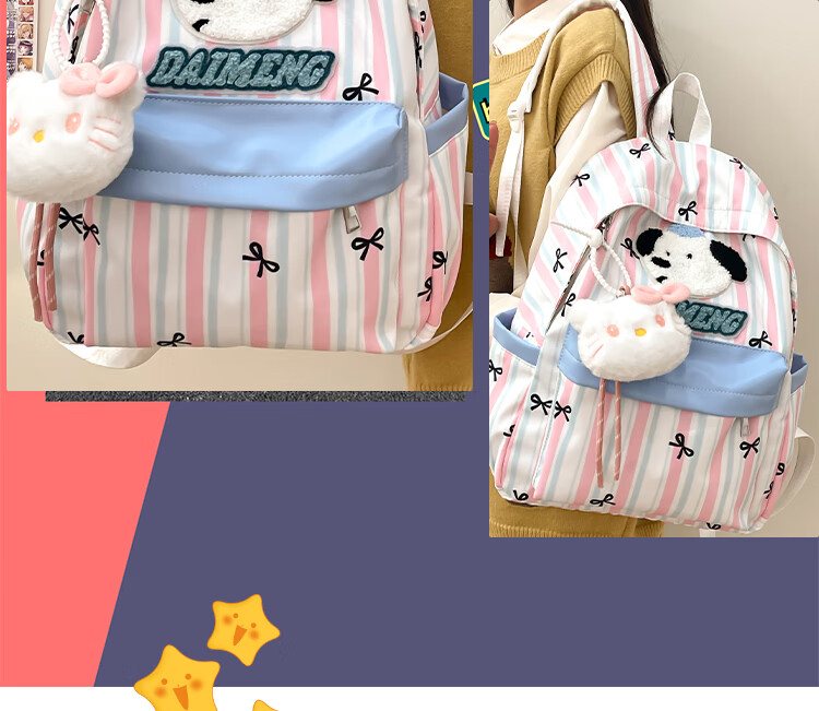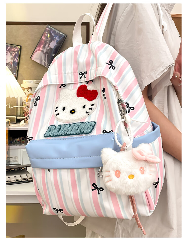 Sirulin schoolbag female ins cute primary school student simple small fresh backpack middle school student fashion versatile travel backpack blue kt cat + pendant