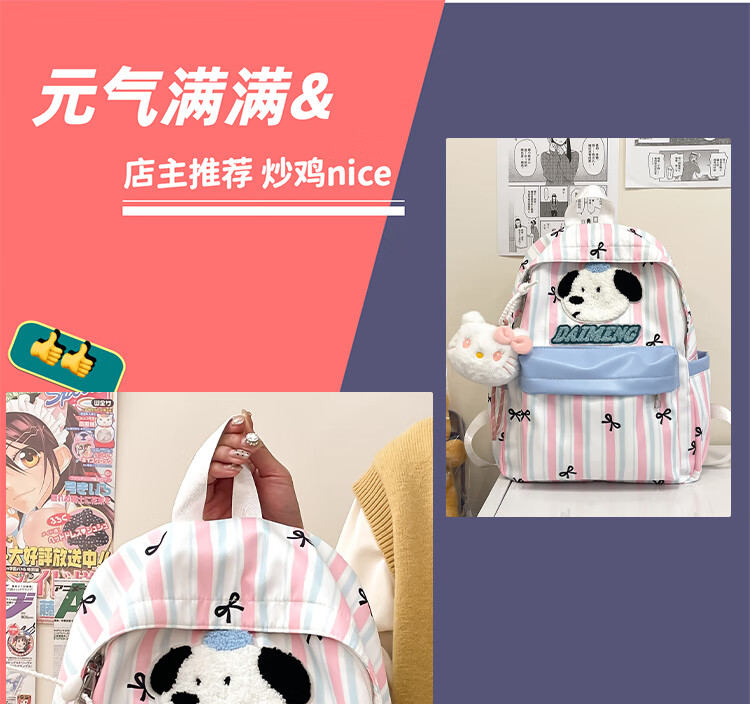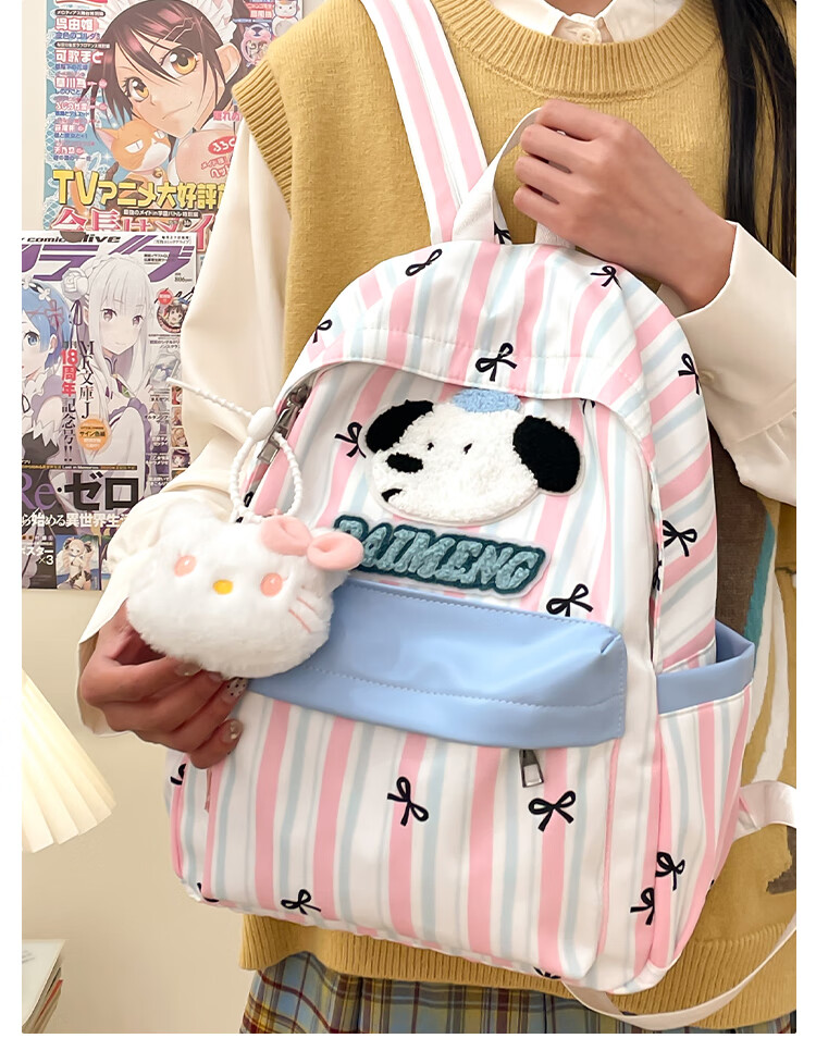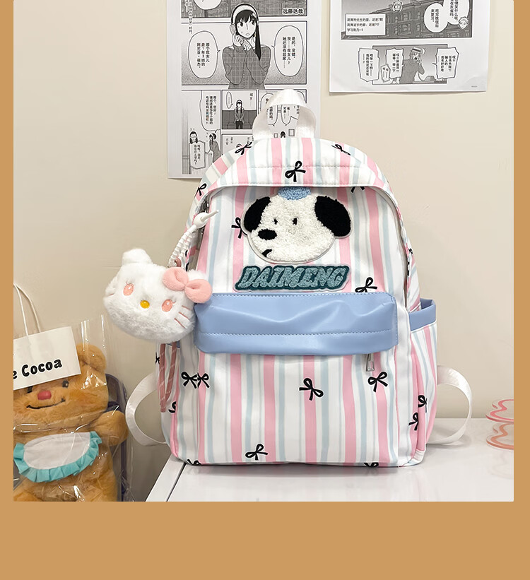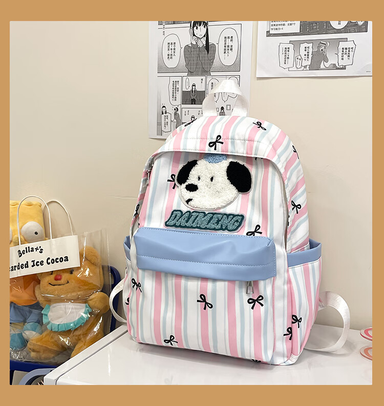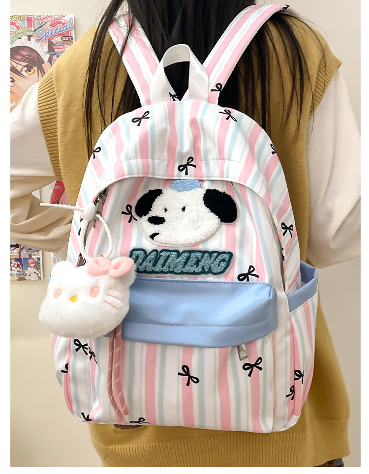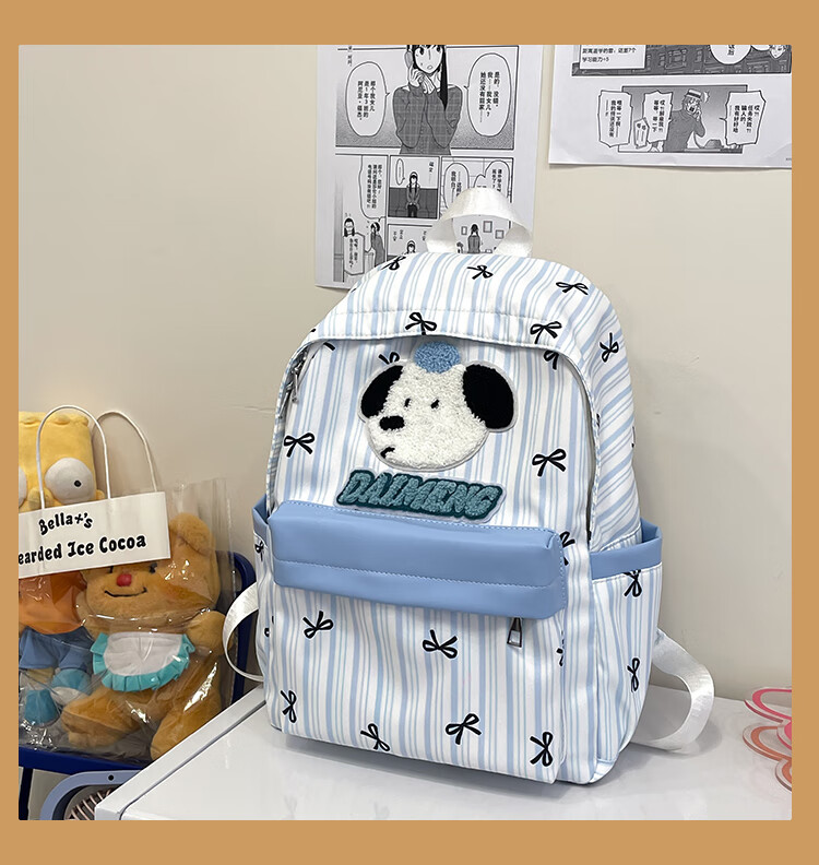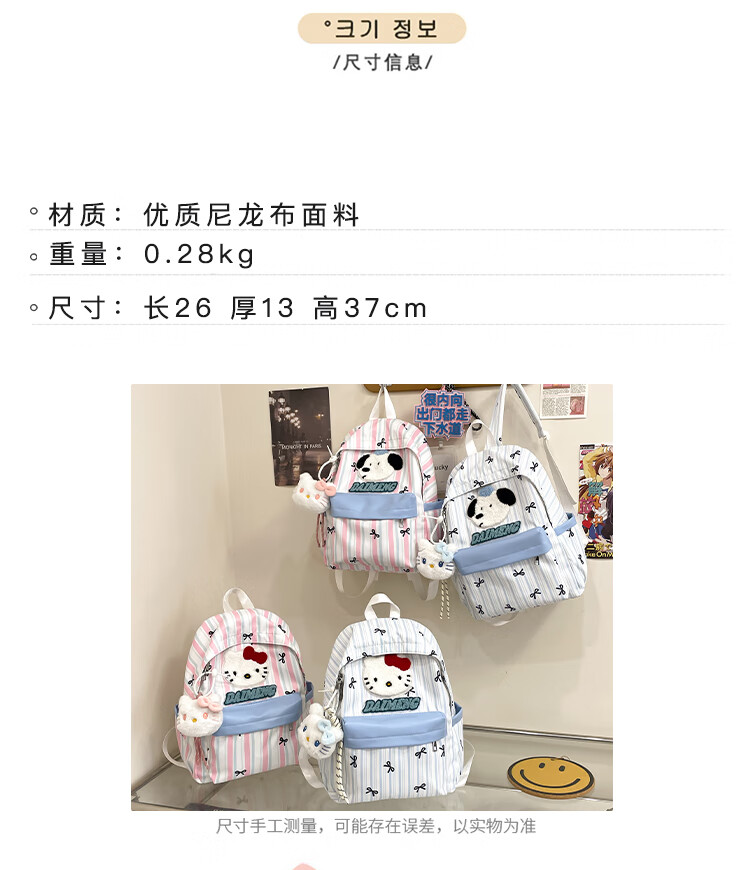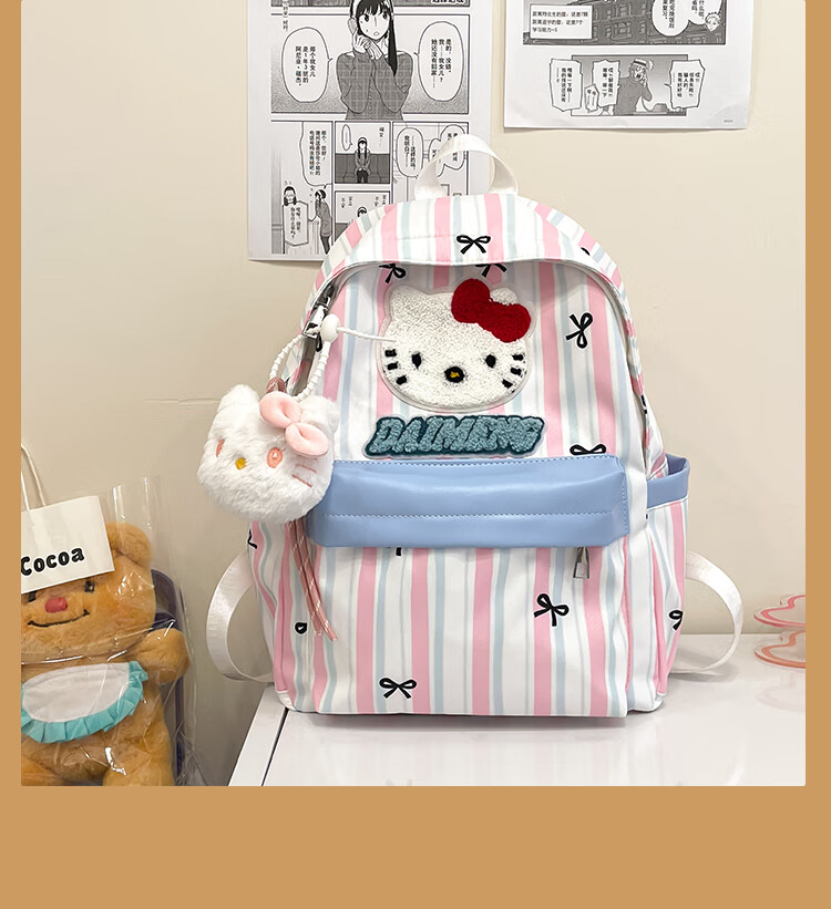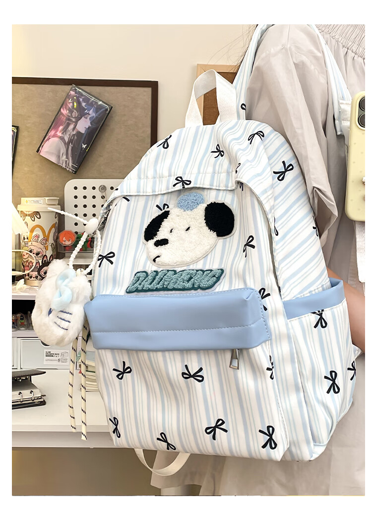 Sirulin schoolbag female ins cute primary school student simple small fresh backpack middle school student fashion versatile travel backpack blue kt cat + pendant