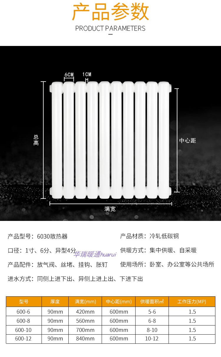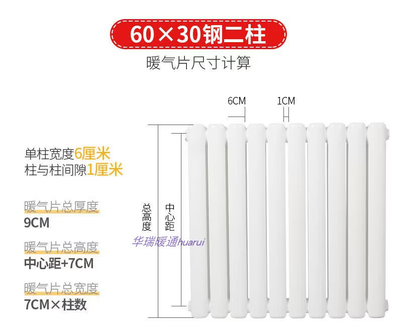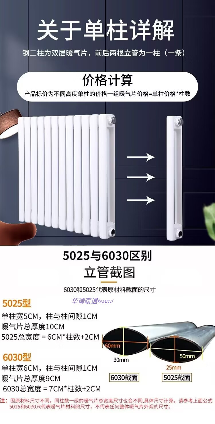 Radiator household water heating radiator steel two-column 6030 central heating vertical natural gas wall-mounted radiator thickened anti-corrosion height 1.5 meters single column width 6 cm 0mm