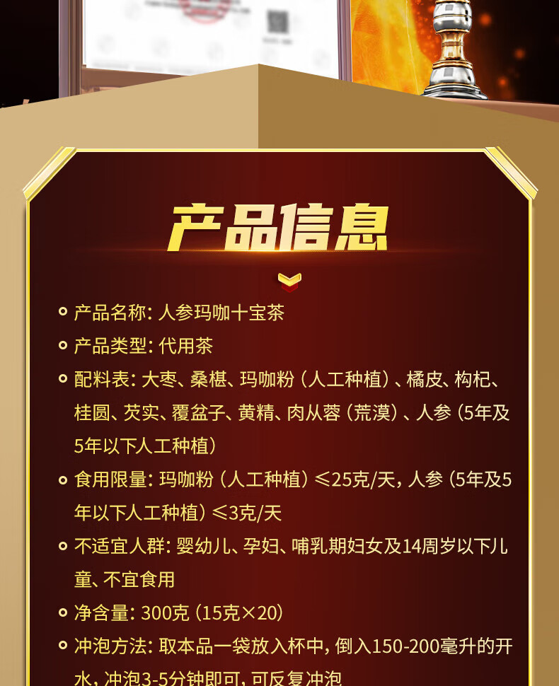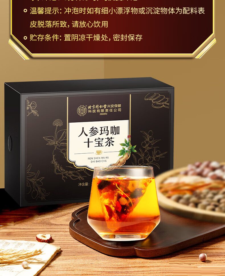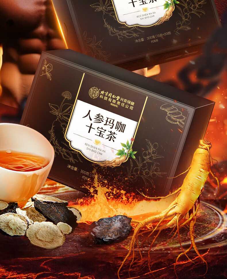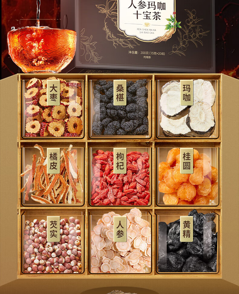 Tongrentang Ginseng, Maca, Ten Treasures Tea, Wolfberry, Maca, Huangjing, Mulberry and Red Dates, Men’s Nourishing and Healthy Late Night Tea, 300g*3 boxes, longer and longer