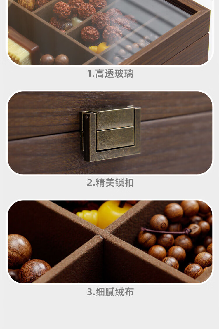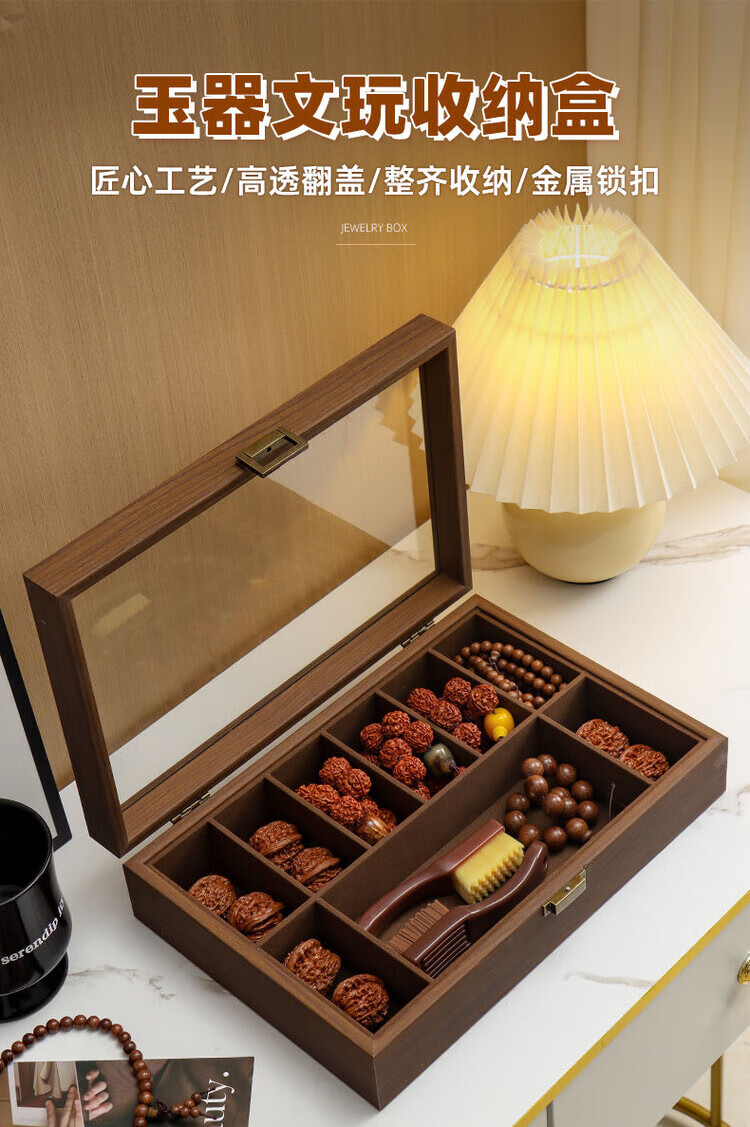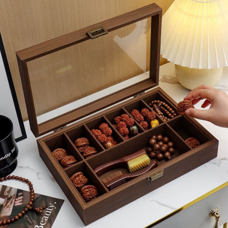 Wooden jewelry box toy storage box walnut bracelet lion head beads large capacity collection dust-proof display gift box antique style walnut 9 grid toy bracelet jewelry box