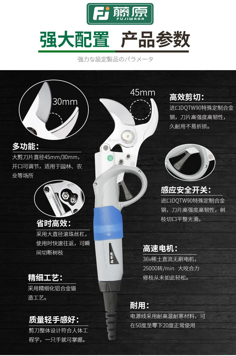 Initial conception (CHUGOUXIANG) Li Zaozhang electric thick branch shears gardening pruning shears labor-saving garden fruit tree branch scissors lithium battery charging DJ30S