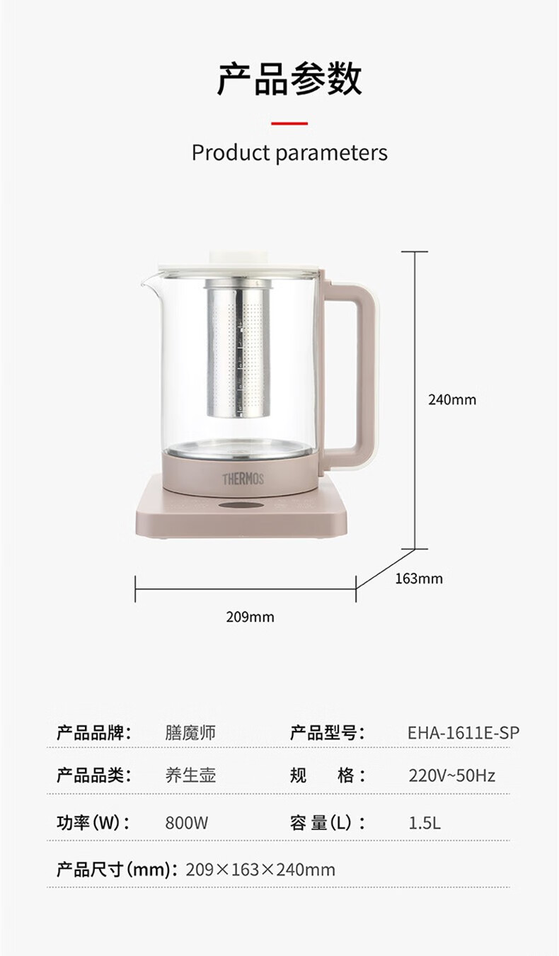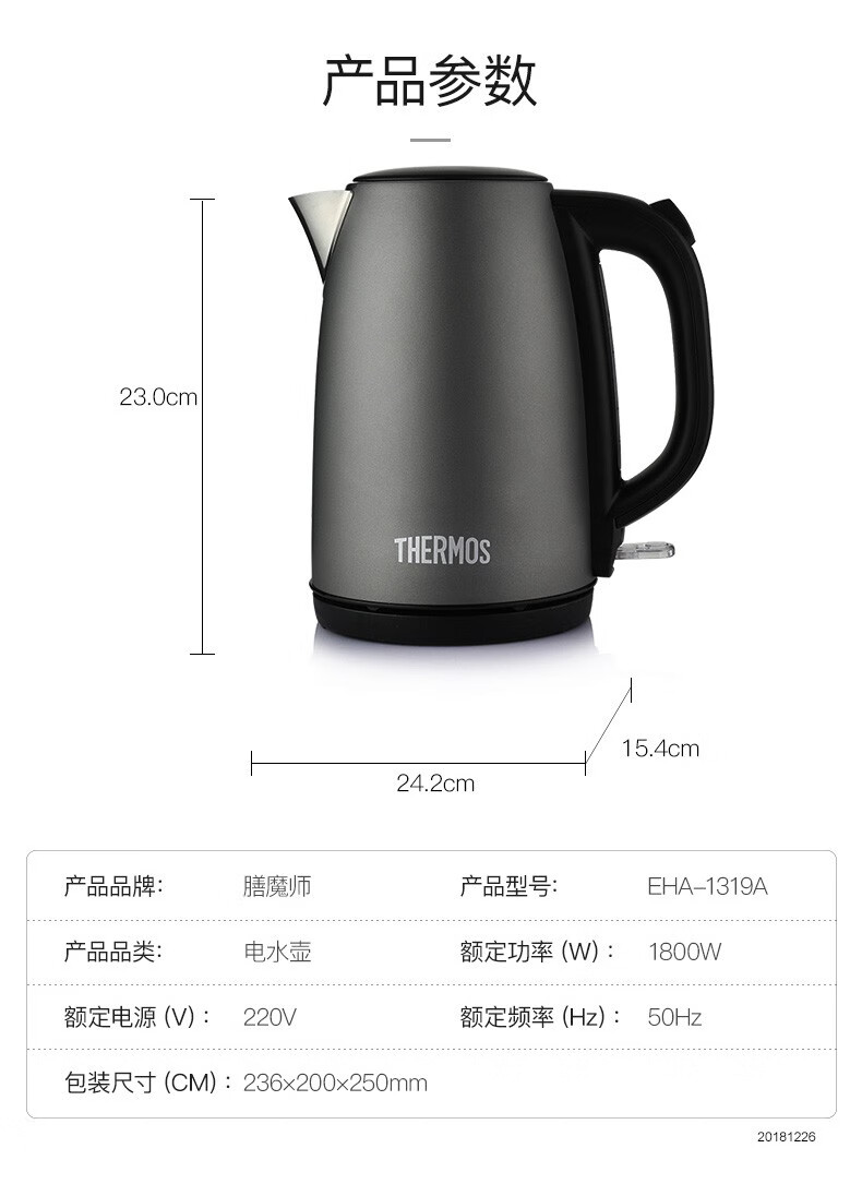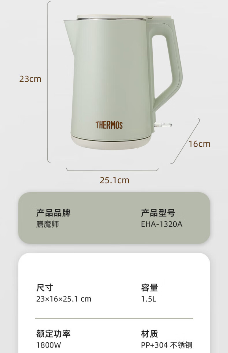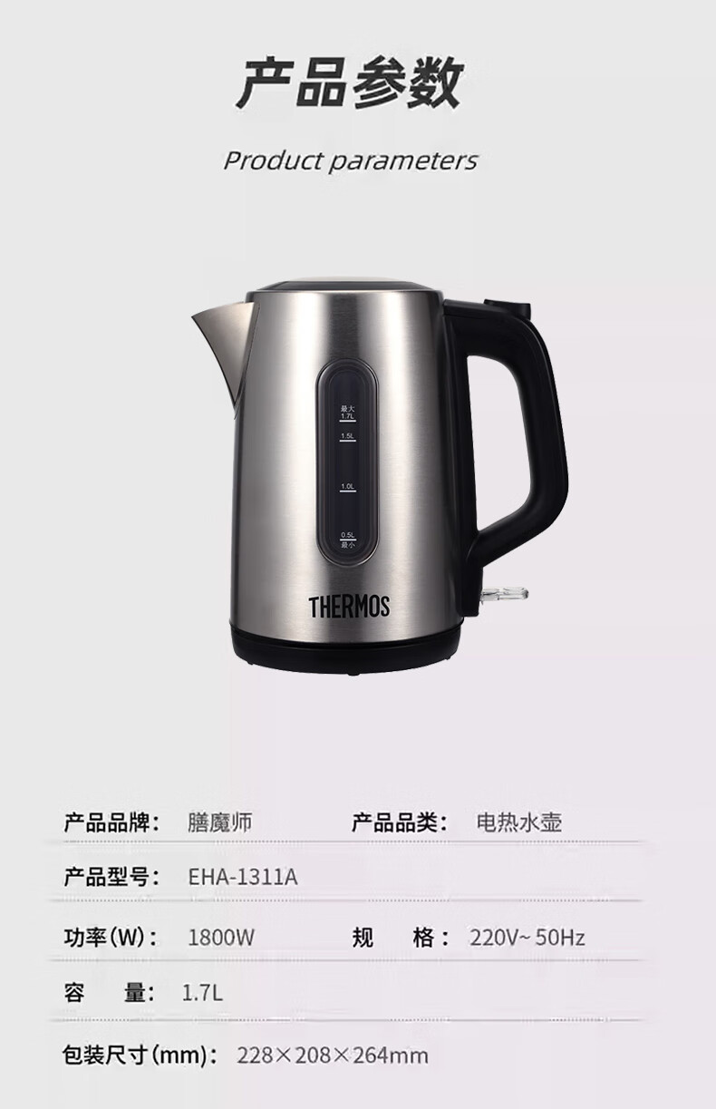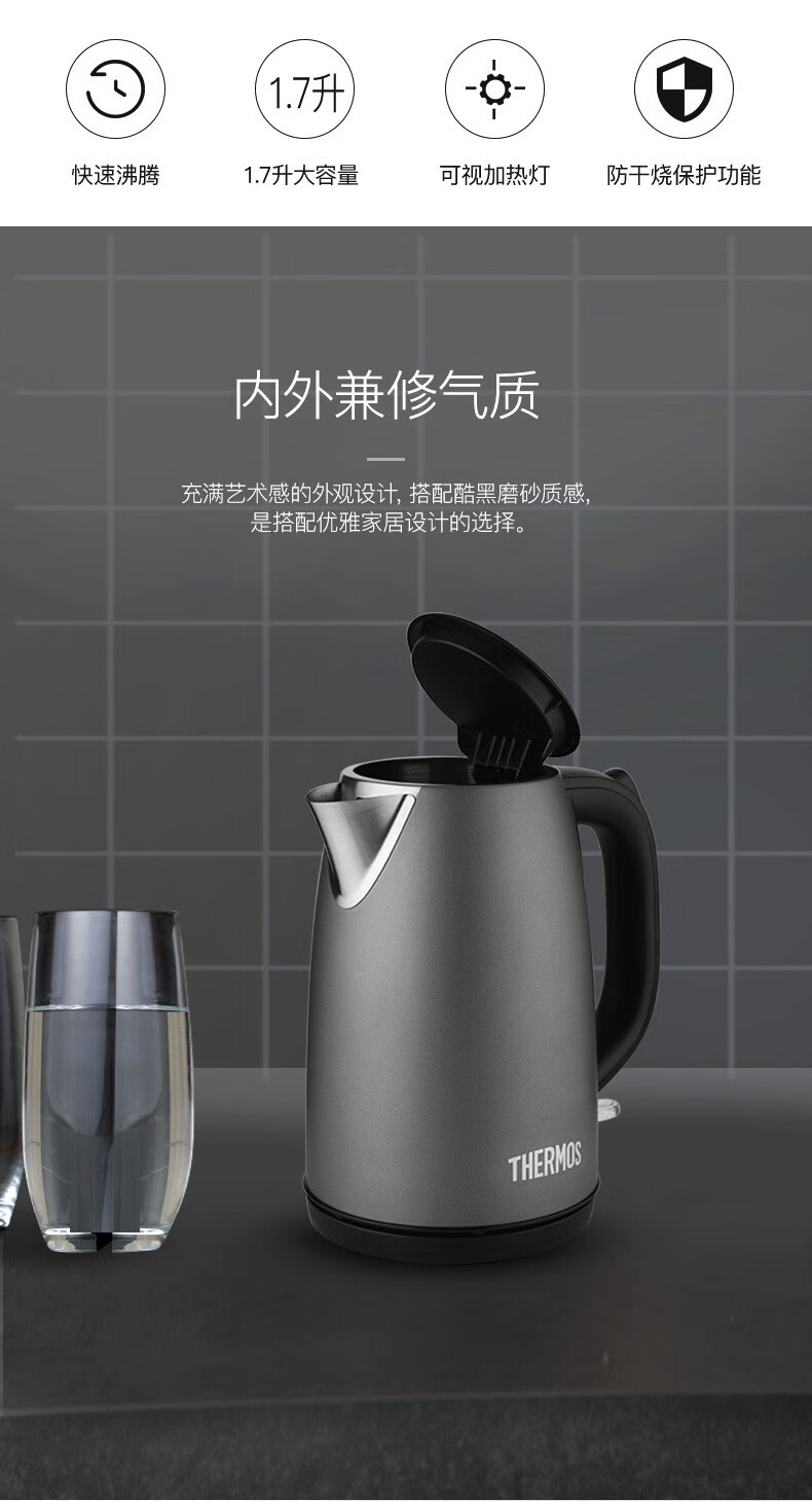 THERMOS stainless steel electric kettle large capacity household electric kettle EHA-1313/17/19/23/61 business office EHA-1311A 1.7L