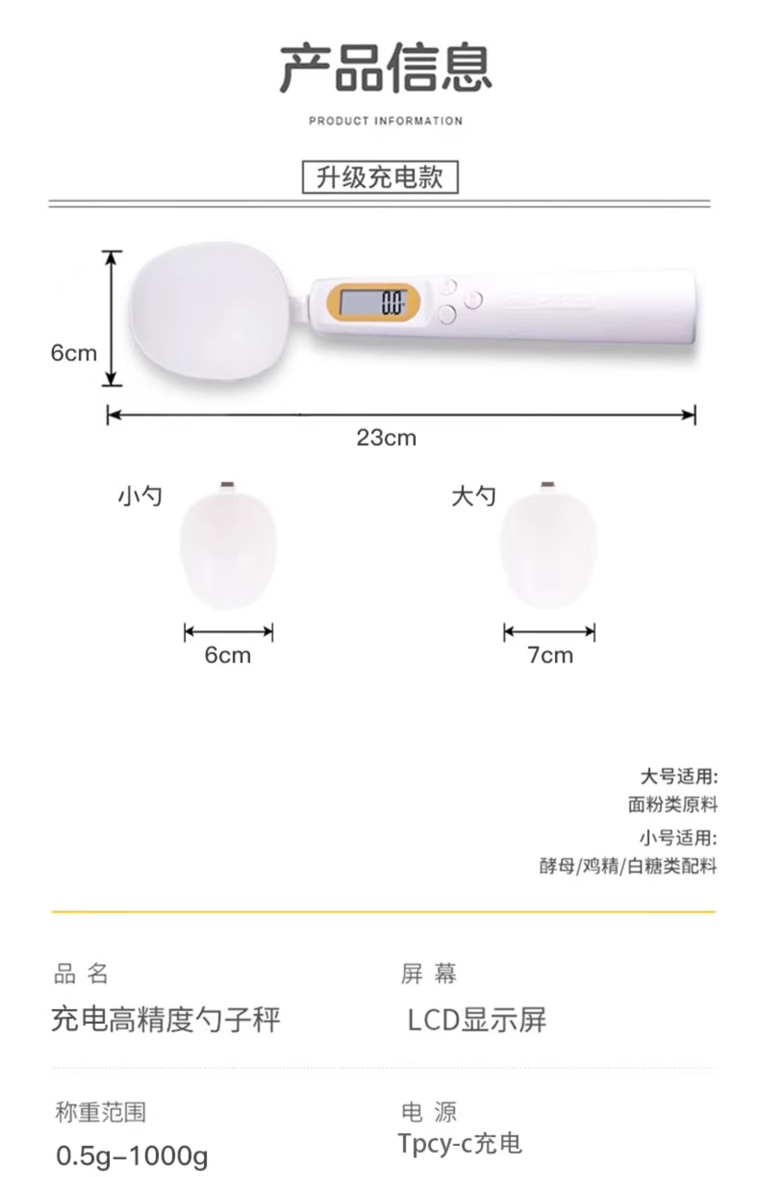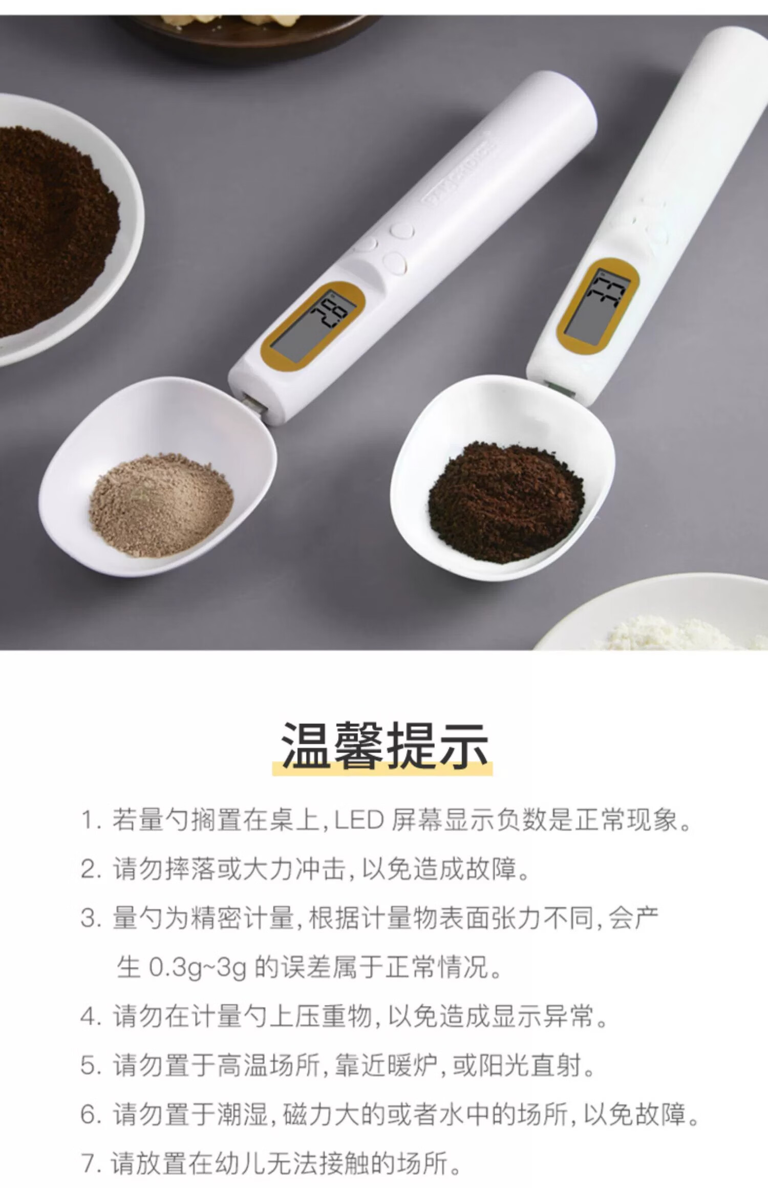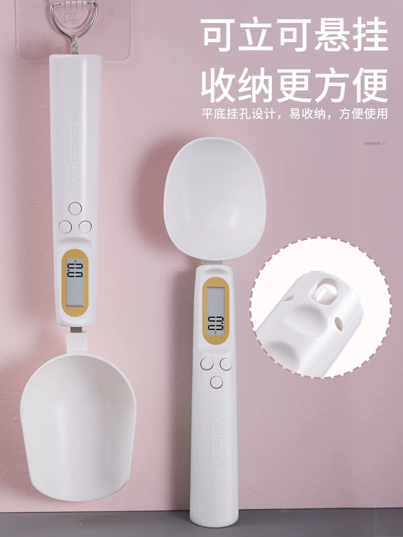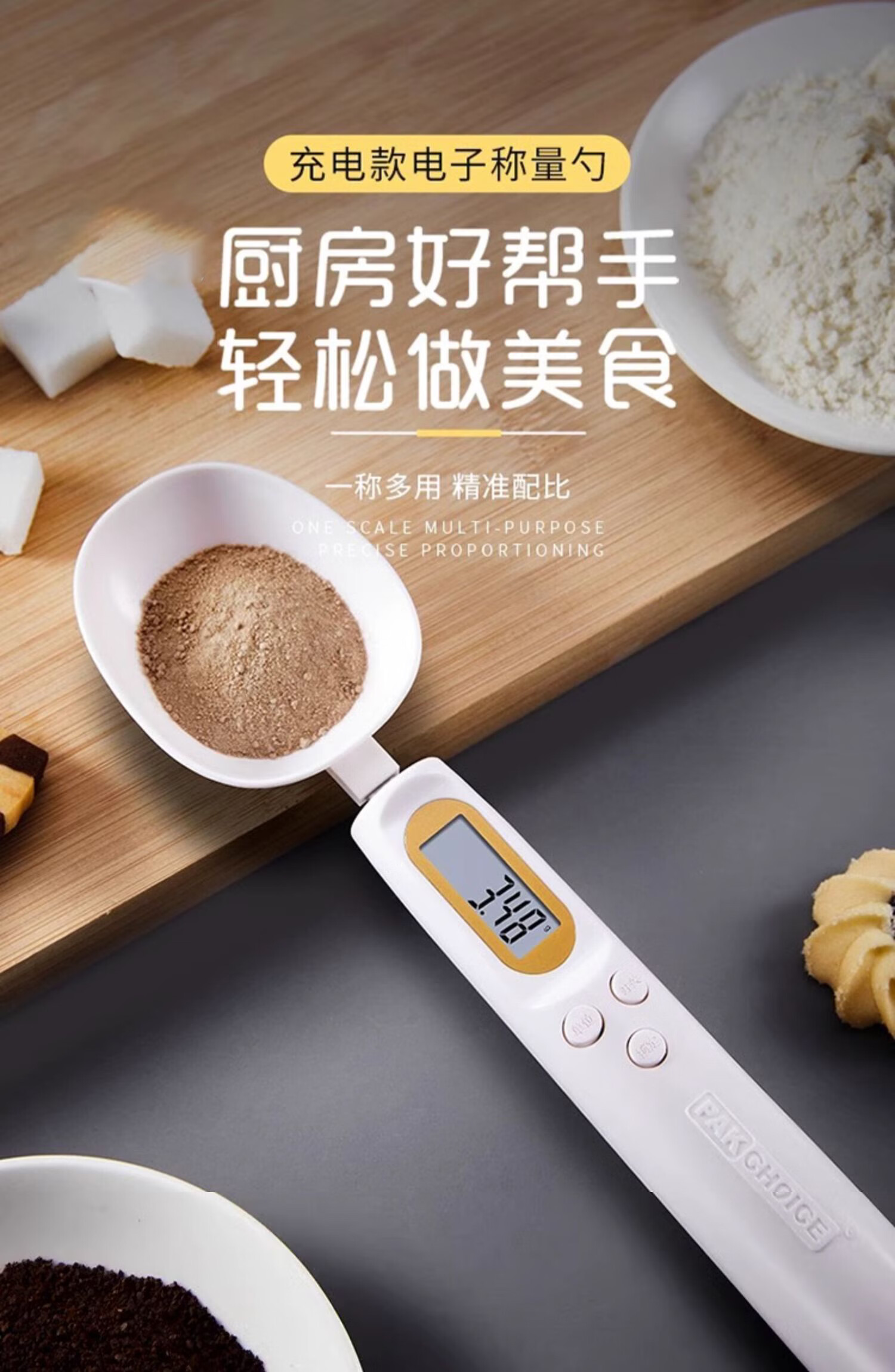 Felfial electronic scale measuring spoon grams milk powder infant baby food supplement with weighing scale measuring spoon kitchen baking flour upgraded charging model (white small spoon + large spoon)