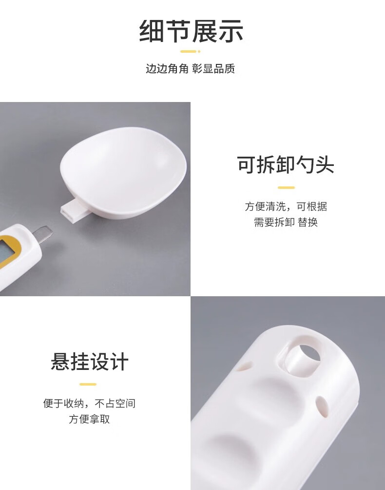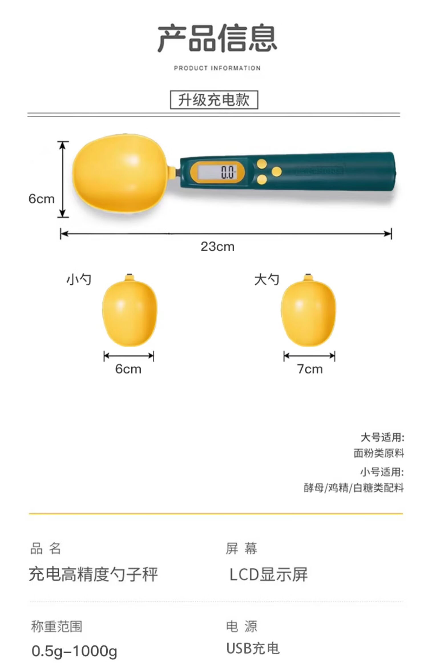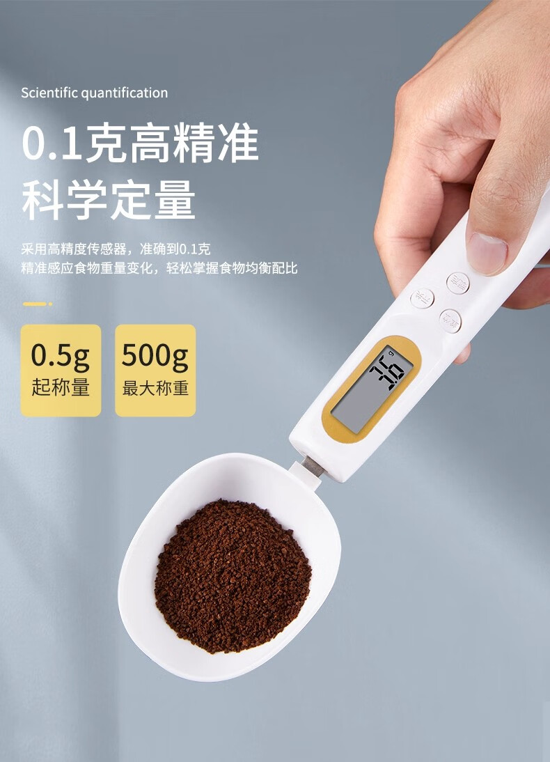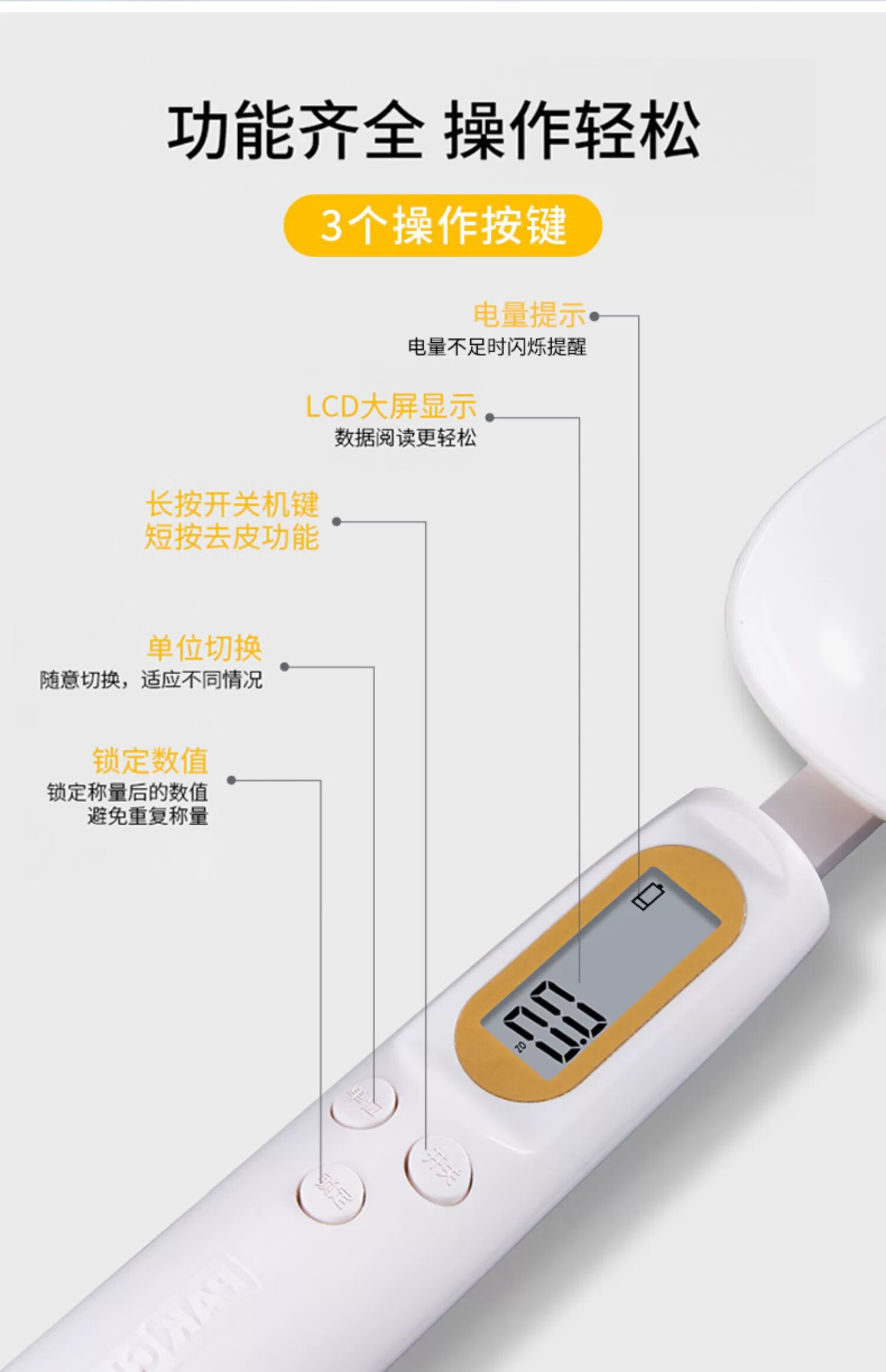 Felfial electronic scale measuring spoon grams milk powder infant baby food supplement with weighing scale measuring spoon kitchen baking flour upgraded charging model (white small spoon + large spoon)