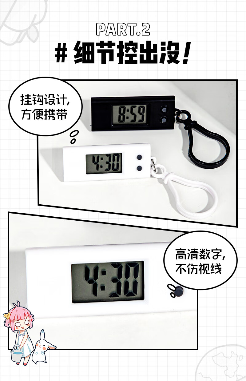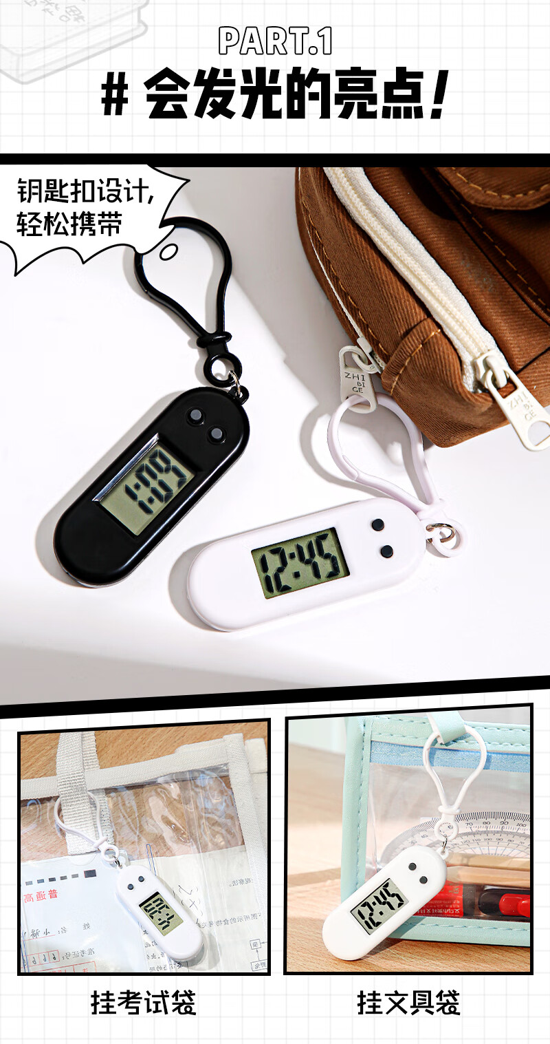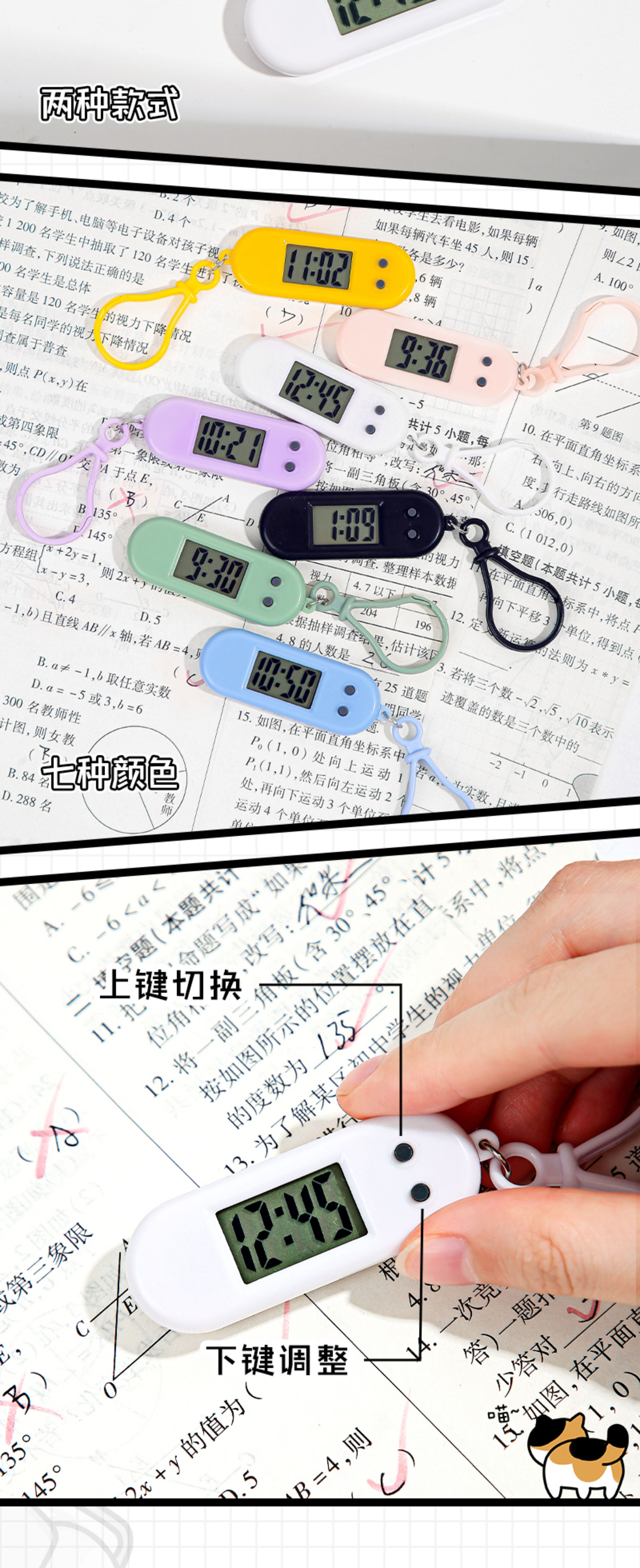 Mini Timetable Student Exam Special Electronic Watch Desktop Clock Luminous Clock Portable Keychain Small Pendant Watch Silent Triangular Model-Simple-Black
