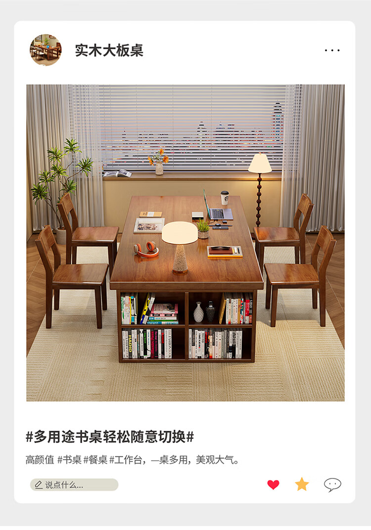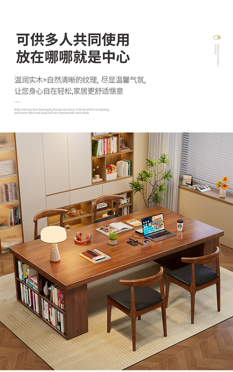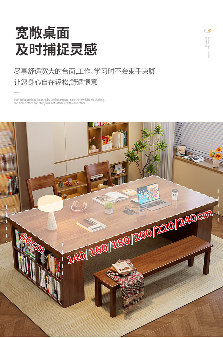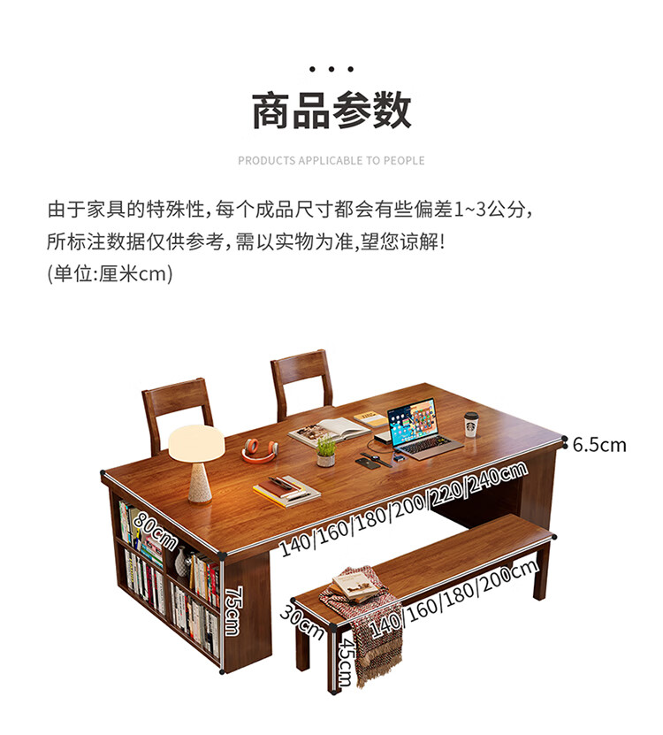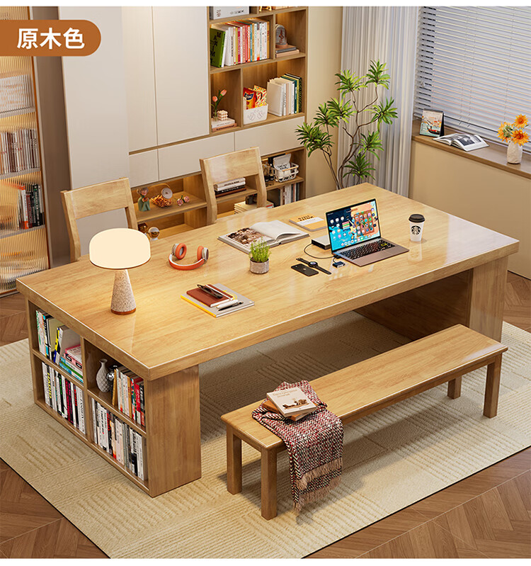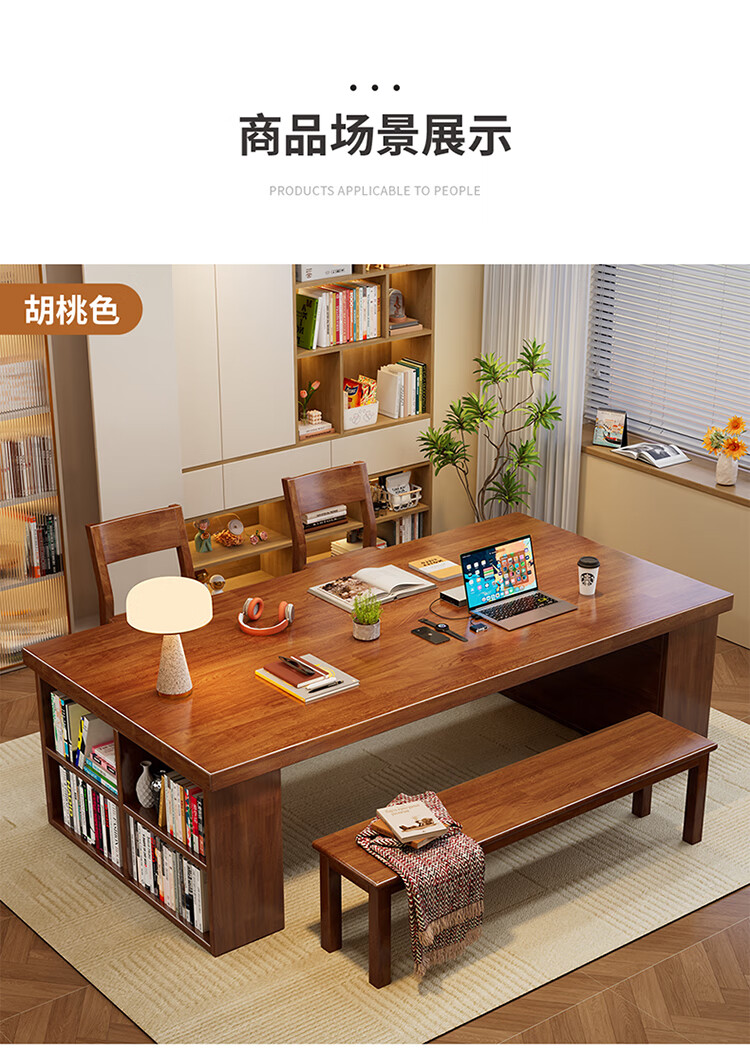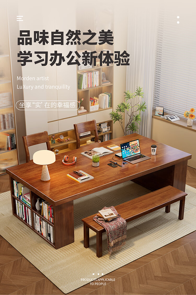 Hui Xun went to the living room to transform the large long desk into a simple study table, a solid wood large table, a dining table, a desk, an integrated workbench, a reading table, FAS grade rubber wood, no veneer, walnut color #desk, 140cm*80cm*75cm, desktop thickness 6.5cm