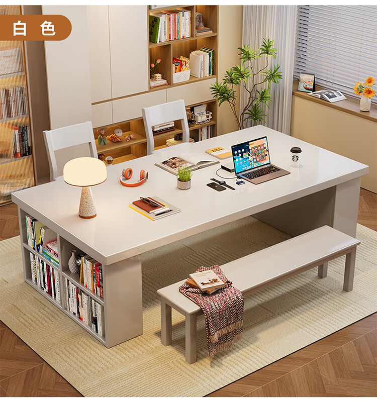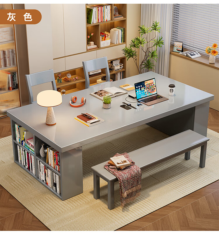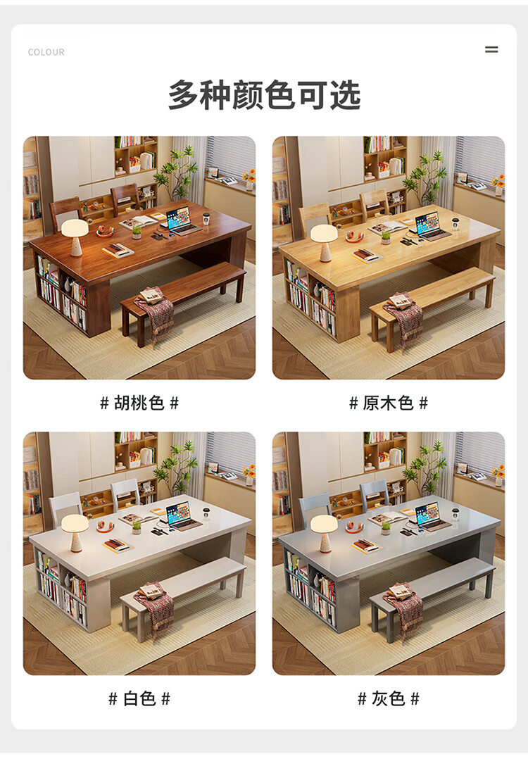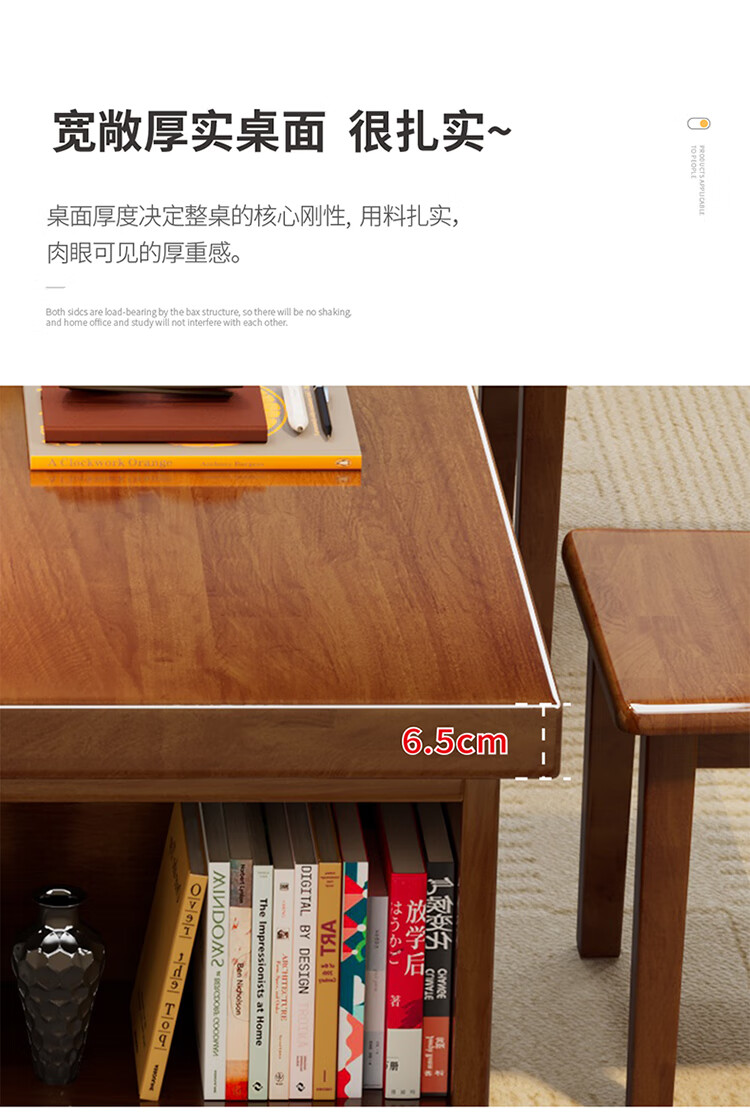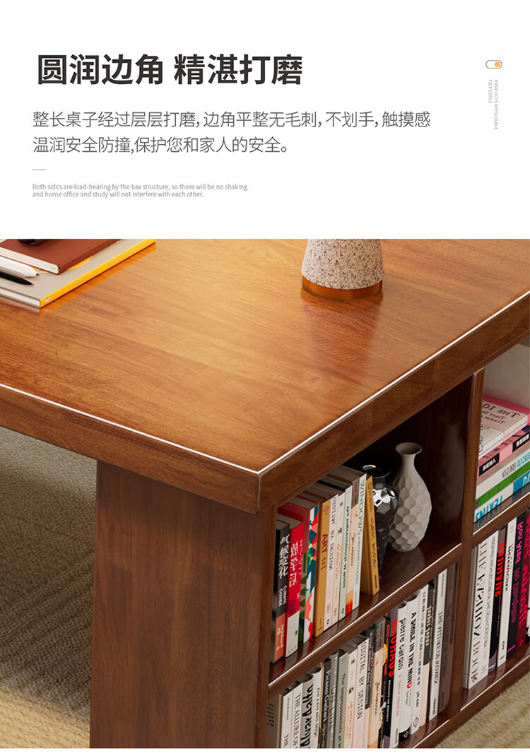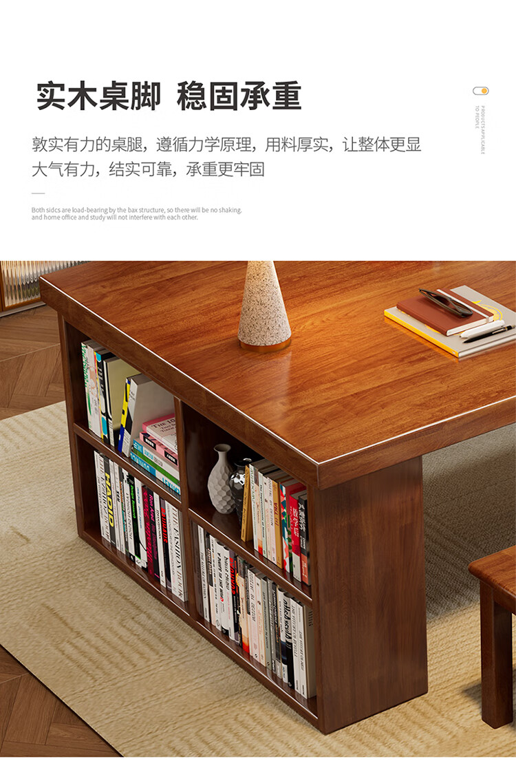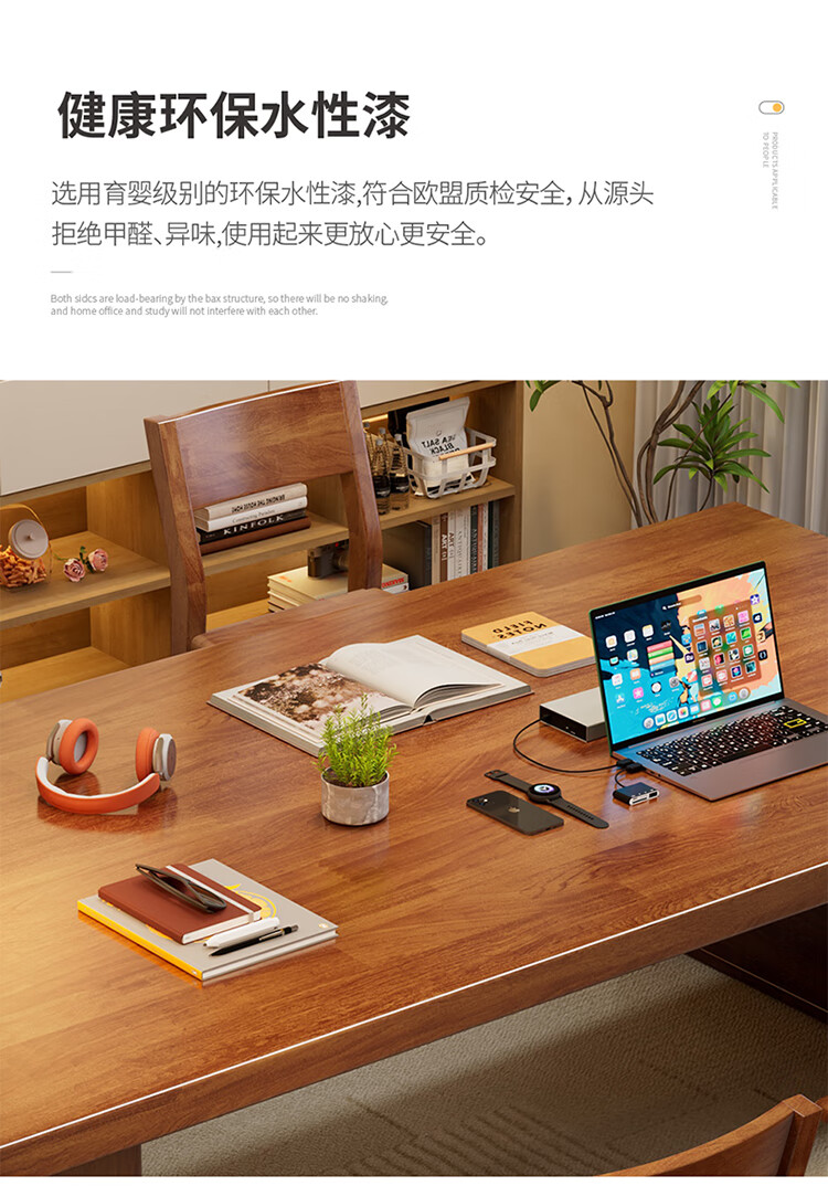 Hui Xun went to the living room to transform the large long desk into a simple study table, a solid wood large table, a dining table, a desk, an integrated workbench, a reading table, FAS grade rubber wood, no veneer, walnut color #desk, 140cm*80cm*75cm, desktop thickness 6.5cm