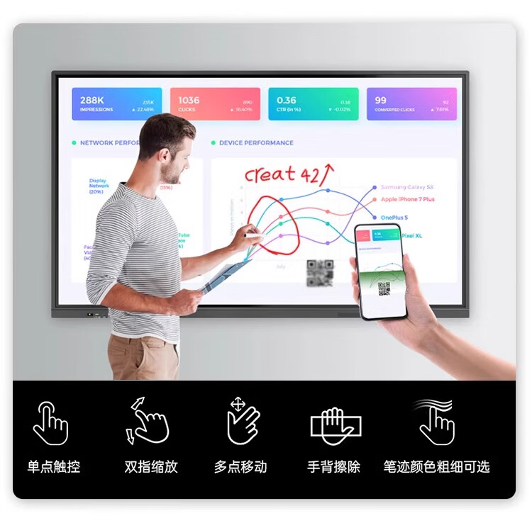 86-inch smart screen teaching all-in-one machine touch screen multimedia teaching conference flat-panel TV electronic whiteboard touch 75-inch touch screen all-in-one machine + mobile cart dual system i7/8 + 256/+ camera top configuration