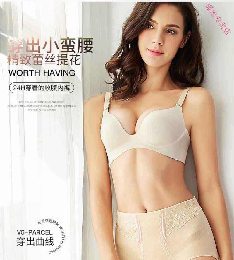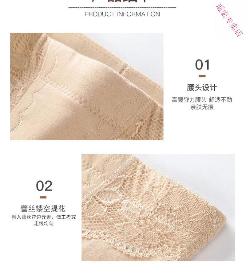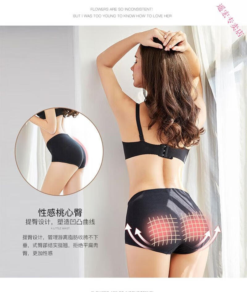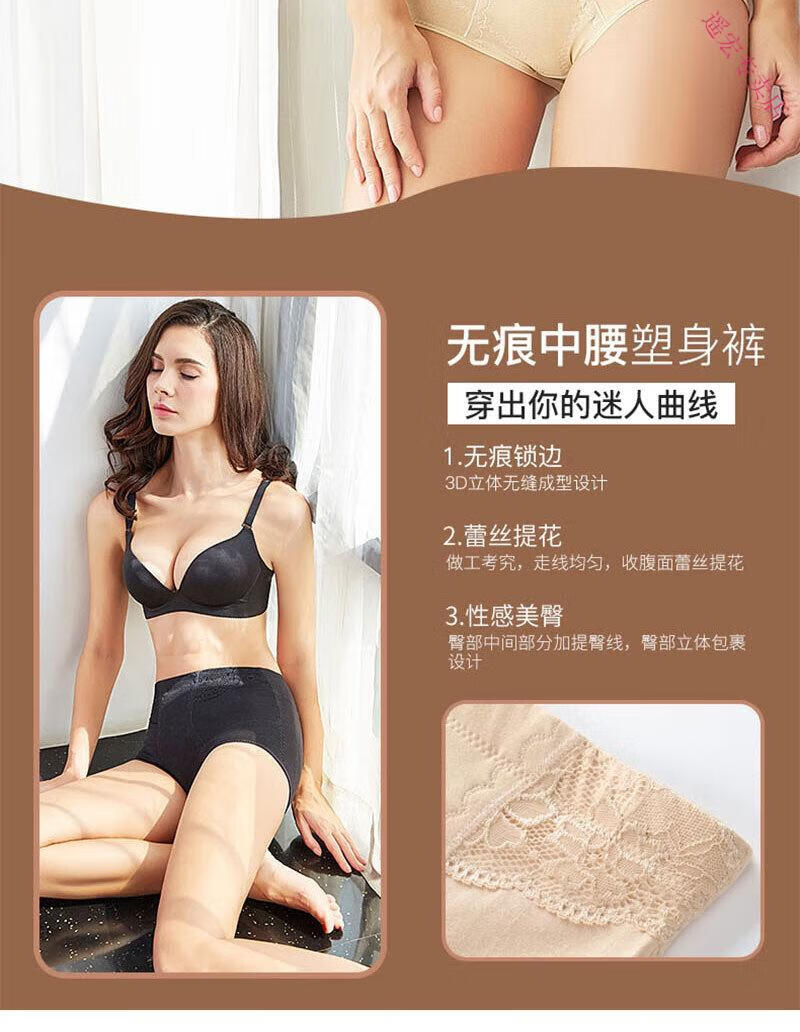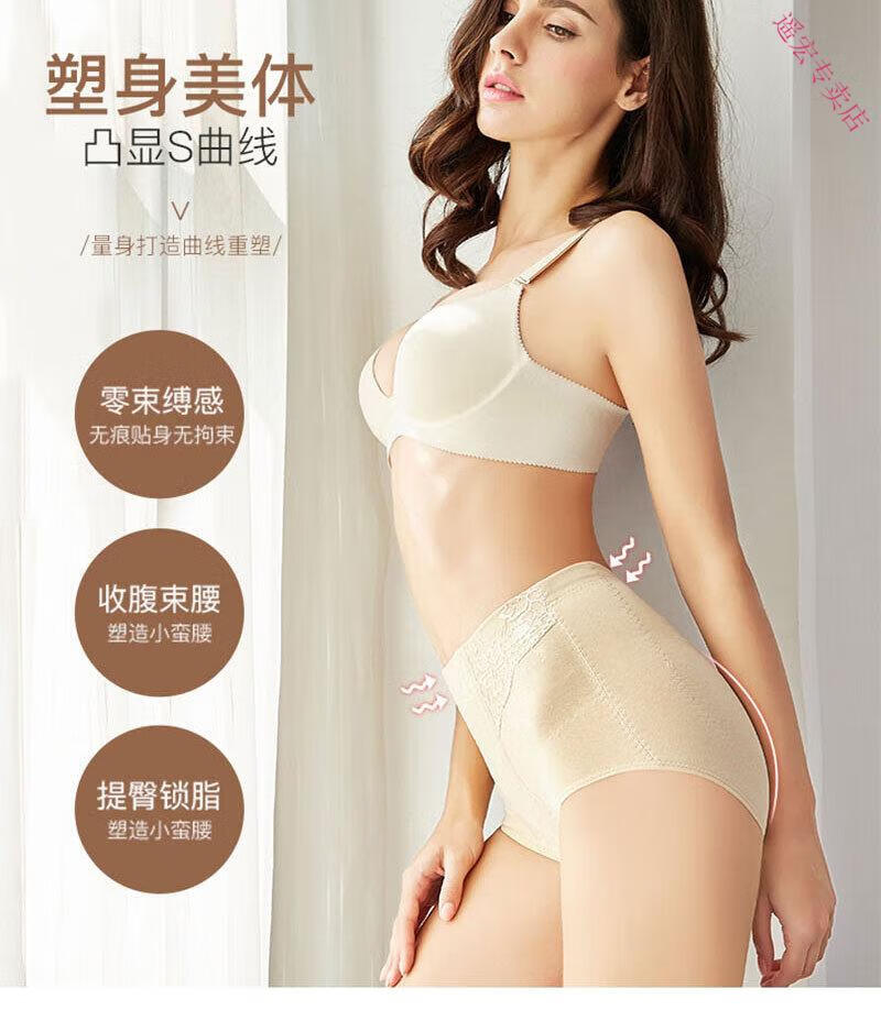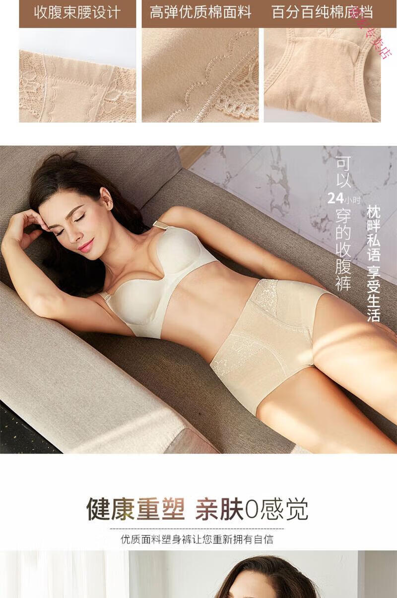 LangSha mid-high waist seamless tummy control underwear for women with strong tummy waist shaping and postpartum butt lifting pure cotton large size without curling pure cotton with elegant skin tone 1 pair M