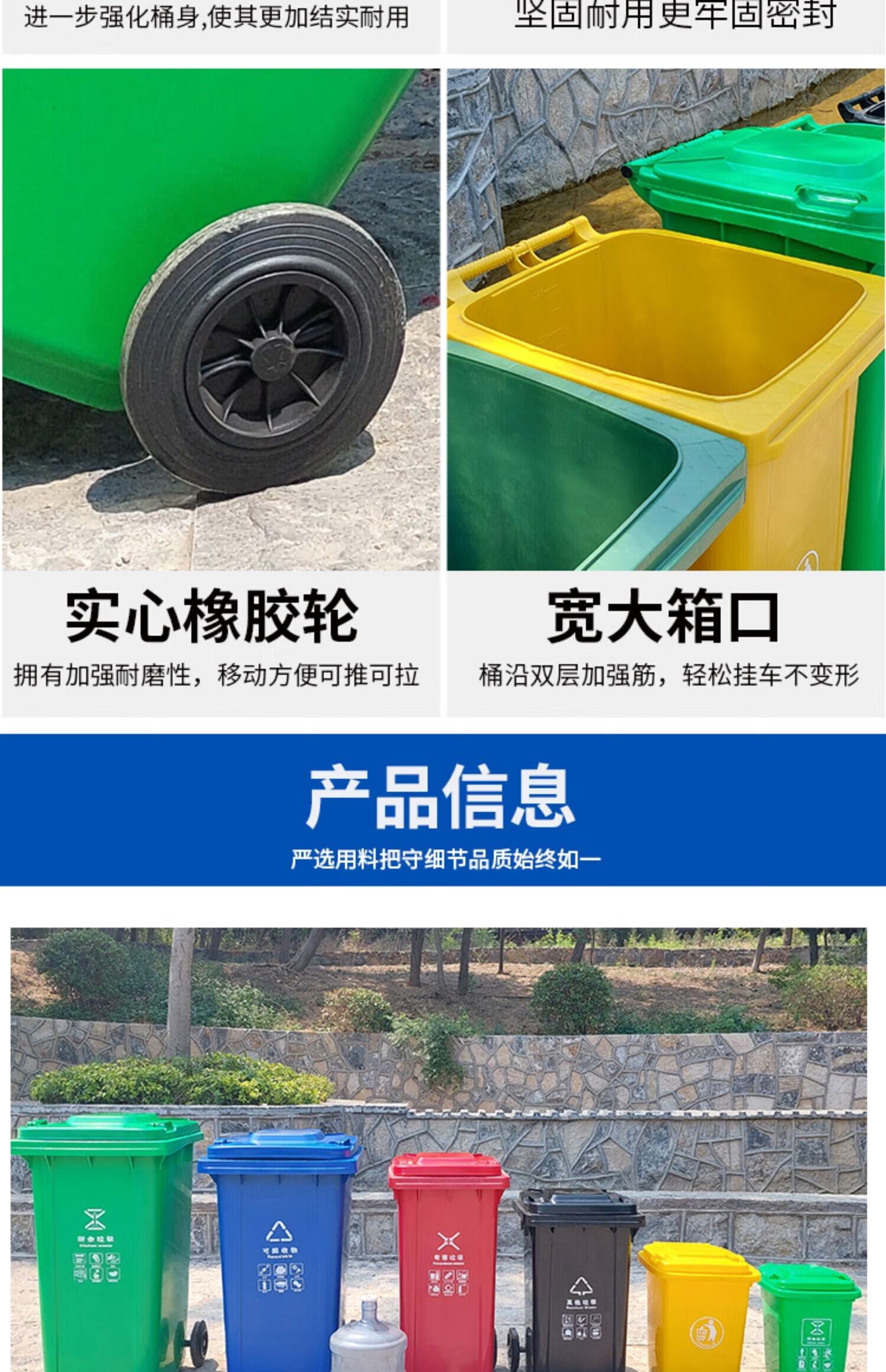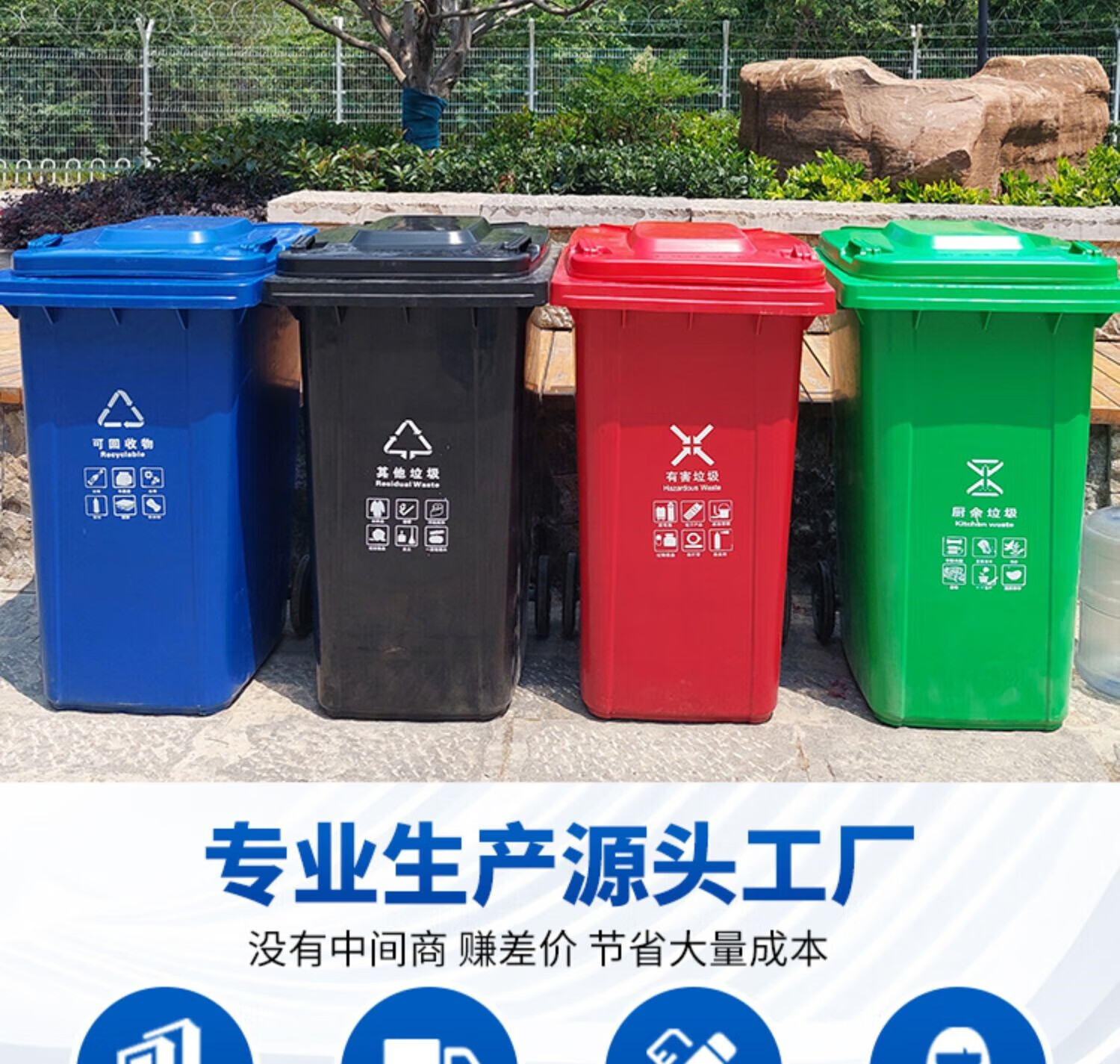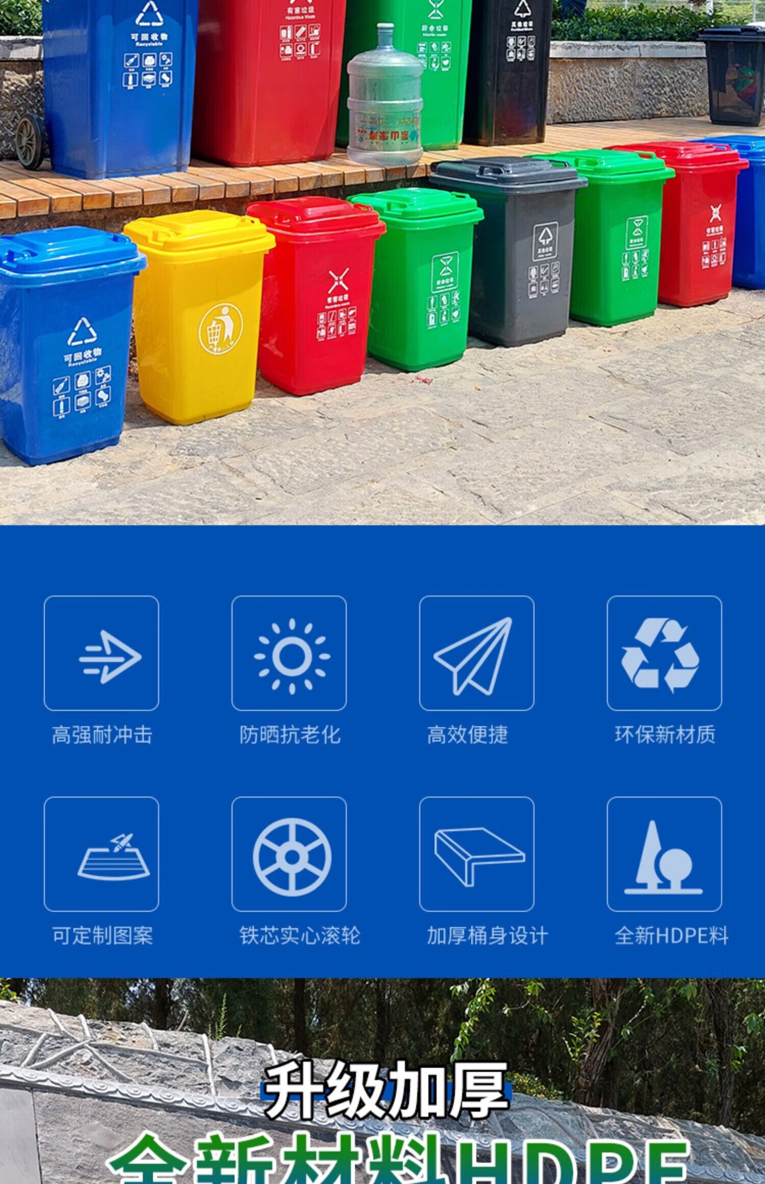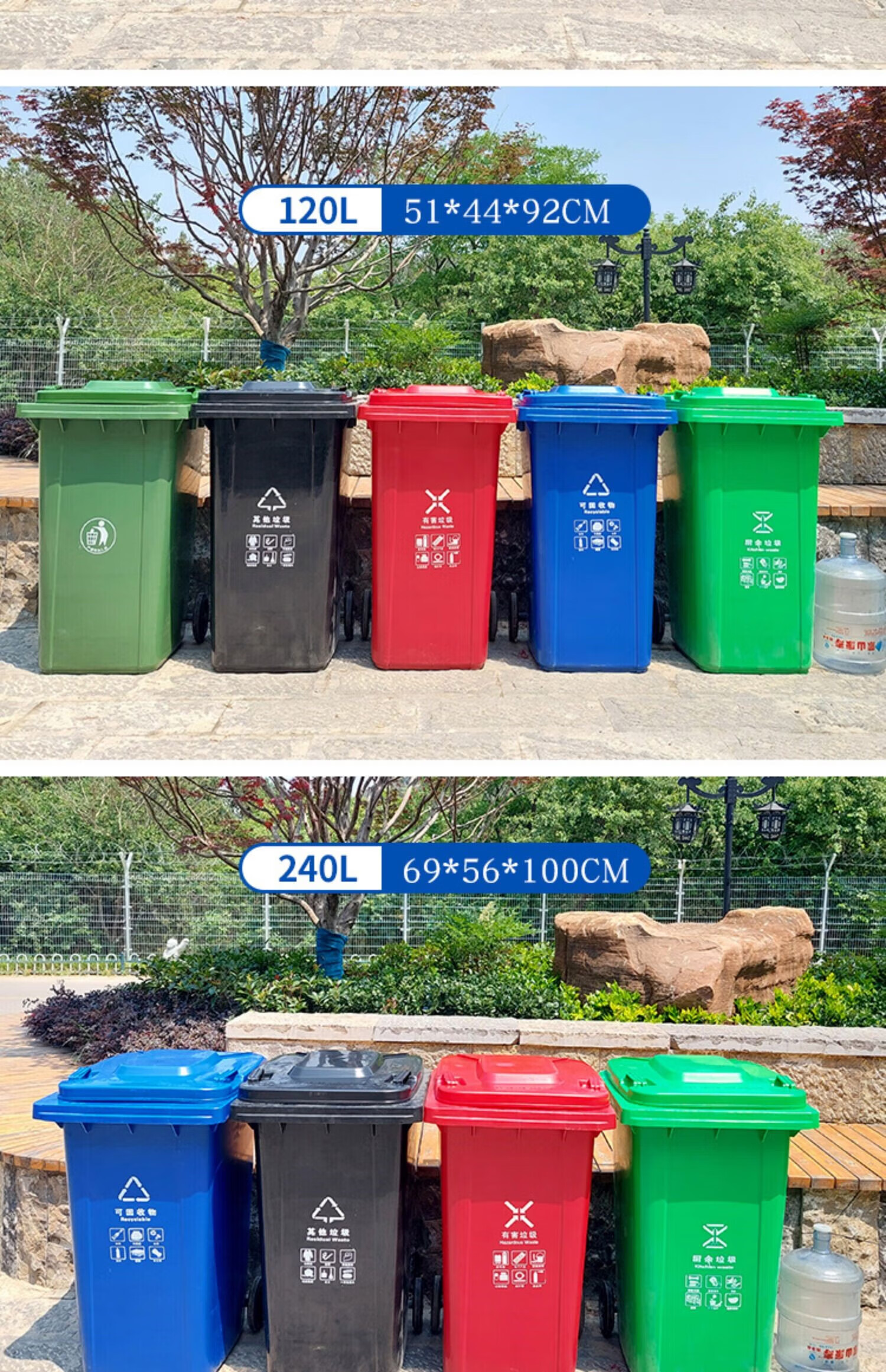 Environmental sanitation plastic outdoor outdoor thickened large size trash can large size trash can industrial with cover and wheel classification peel 260 liter trailer with thickened and reinforced type with cover and wheel