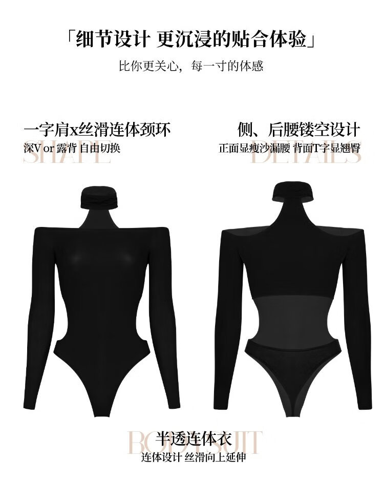 Lai Mi Runsi Hunter Jumpsuit One Shoulder Pure Desire Black Women's High Elastic Silky Sexy Tights Summer New Product Black One Size (Height 155-180cm Weight 45-70kg)