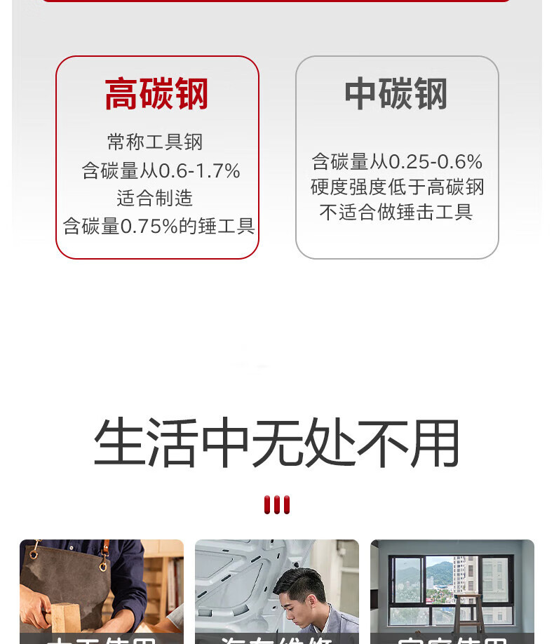 Hammer Tools Claw Hammer Hammer Hammer Hammer Woodworking Special Hammer Household Hammer Set 8oz Steel Pipe Handle Claw Hammer