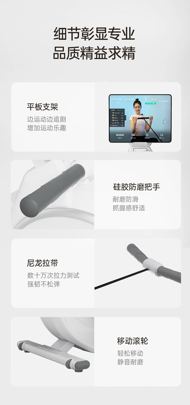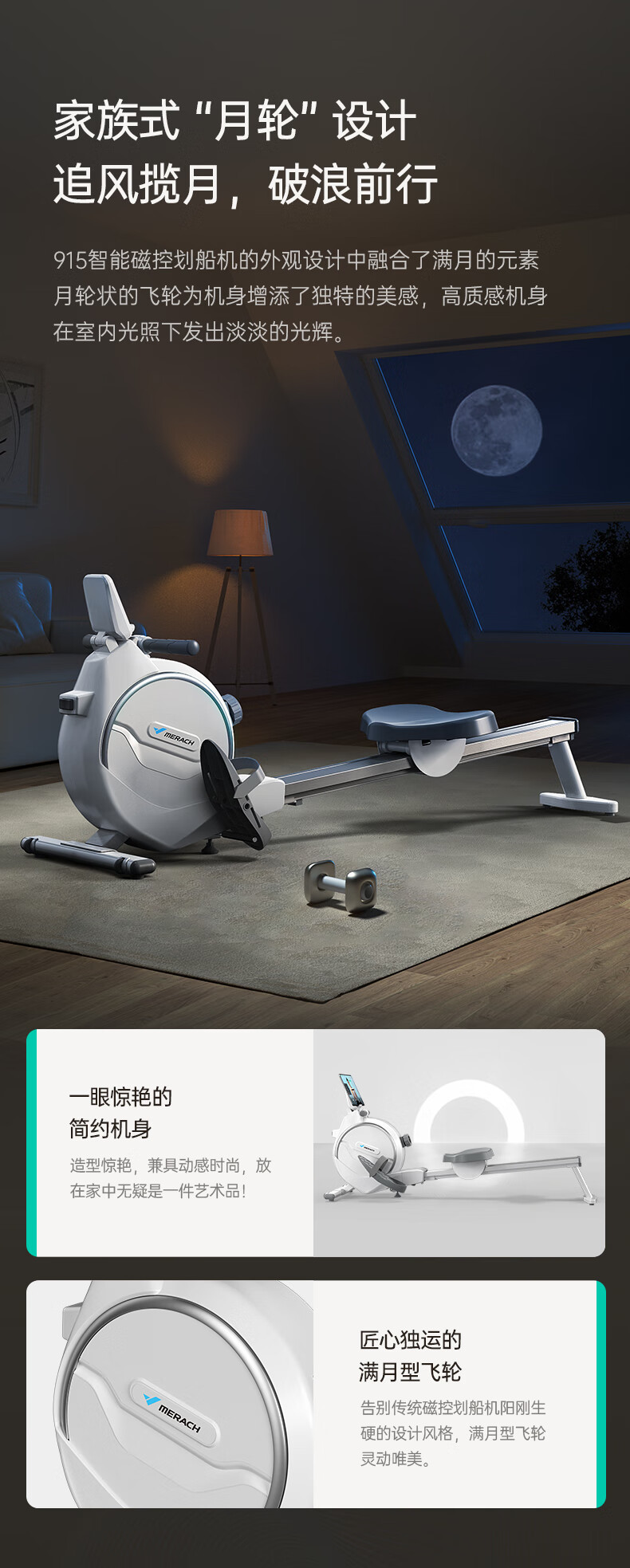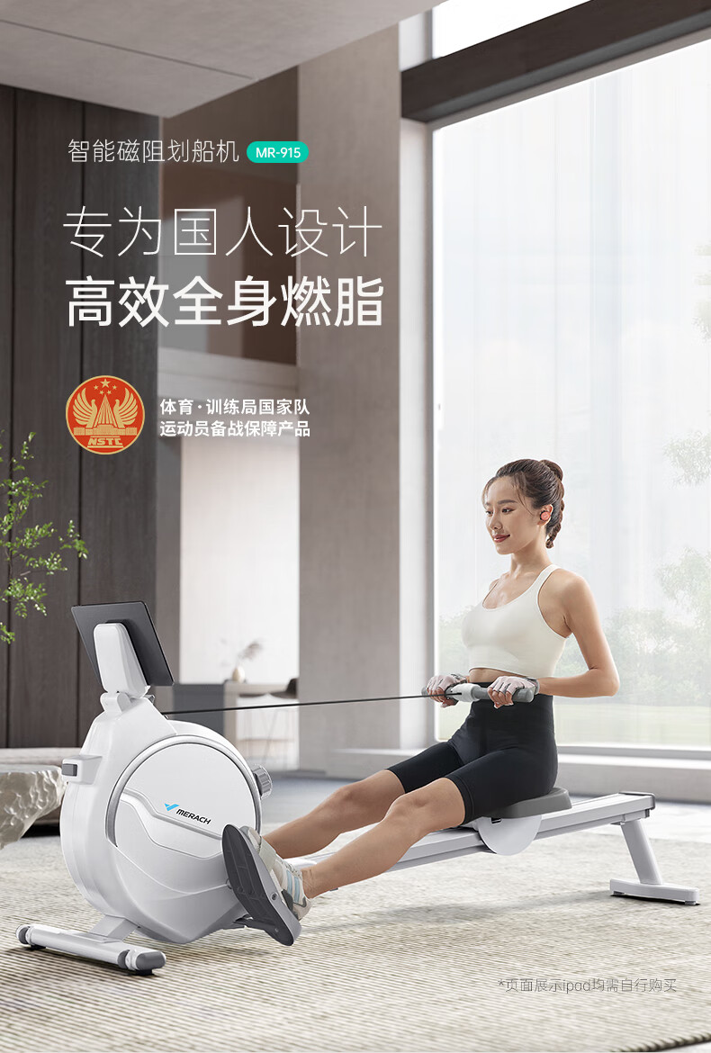 Merrick Super Fat Burning Rowing Machine Home Silent Intelligent Magnetic Resistance Rowing Machine Fitness Training Rowing Machine Pearl White丨220 catties Load Bearing丨16-speed Magnetic Control丨