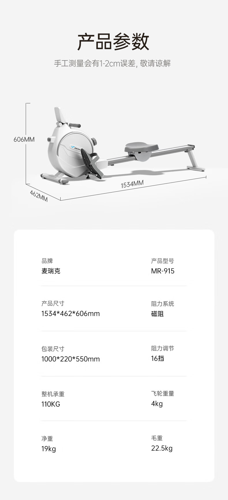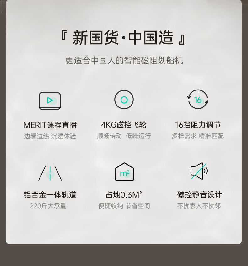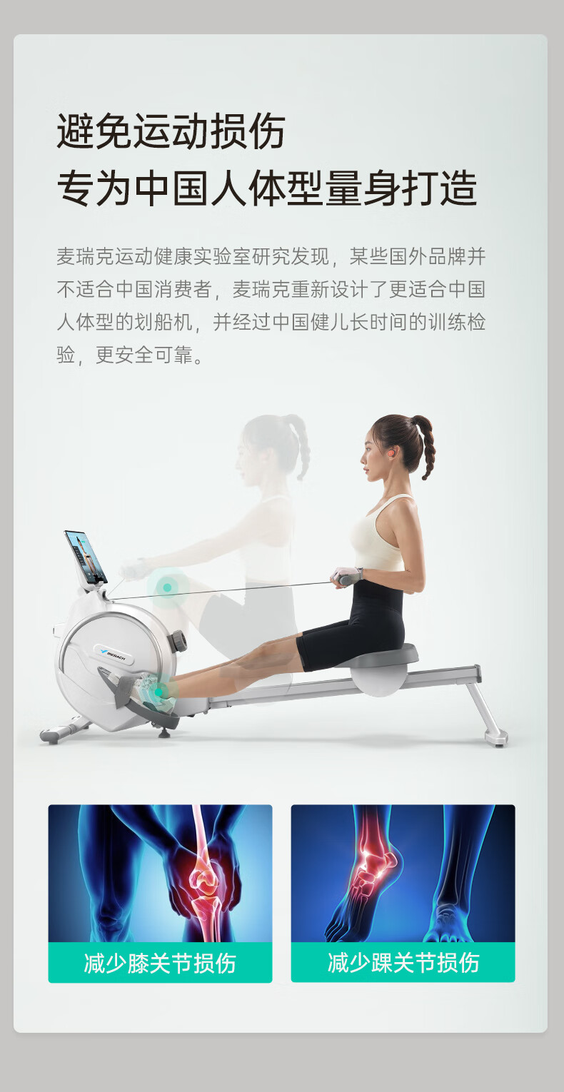Merrick Super Fat Burning Rowing Machine Home Silent Intelligent Magnetic Resistance Rowing Machine Fitness Training Rowing Machine Pearl White丨220 catties Load Bearing丨16-speed Magnetic Control丨
