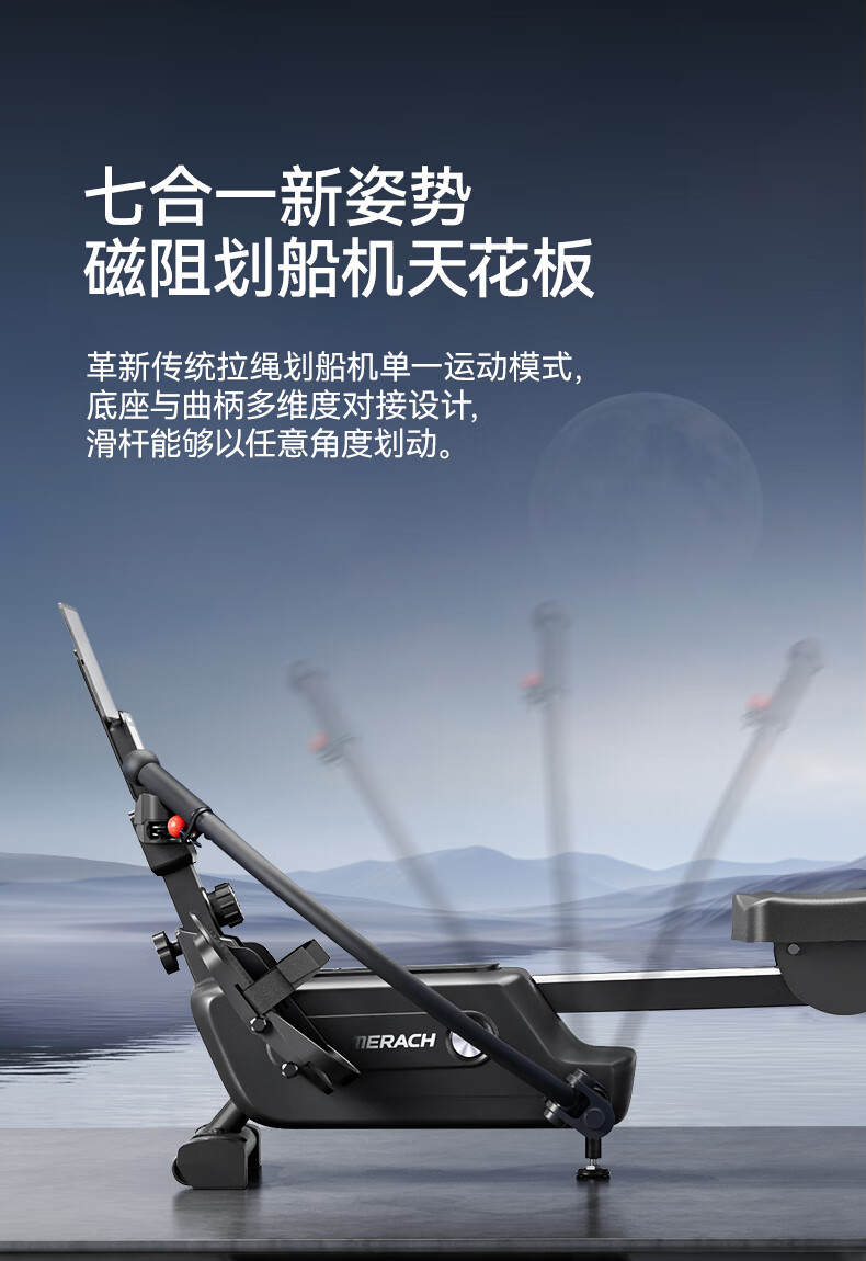Merrick Super Fat Burning Scull Magnetic Resistance Simulation Rowing Machine Home Fitness Equipment Indoor Intelligent Rowing Machine Scull Simulation Rowing Machine - Black