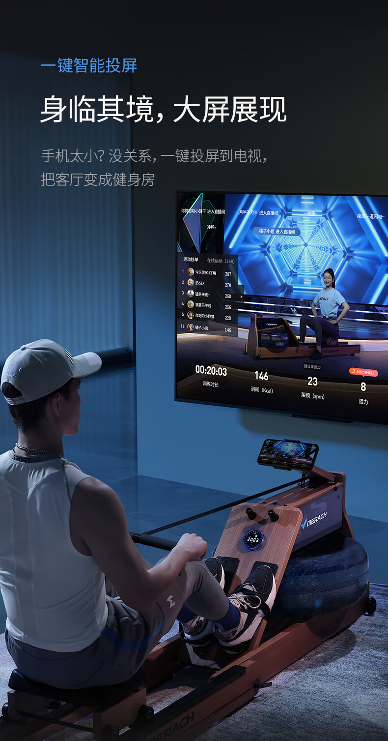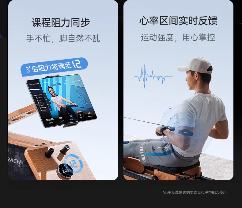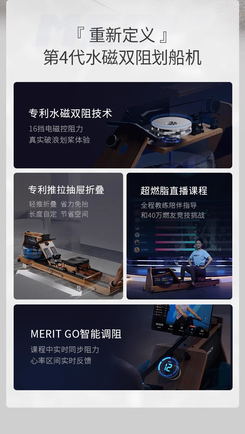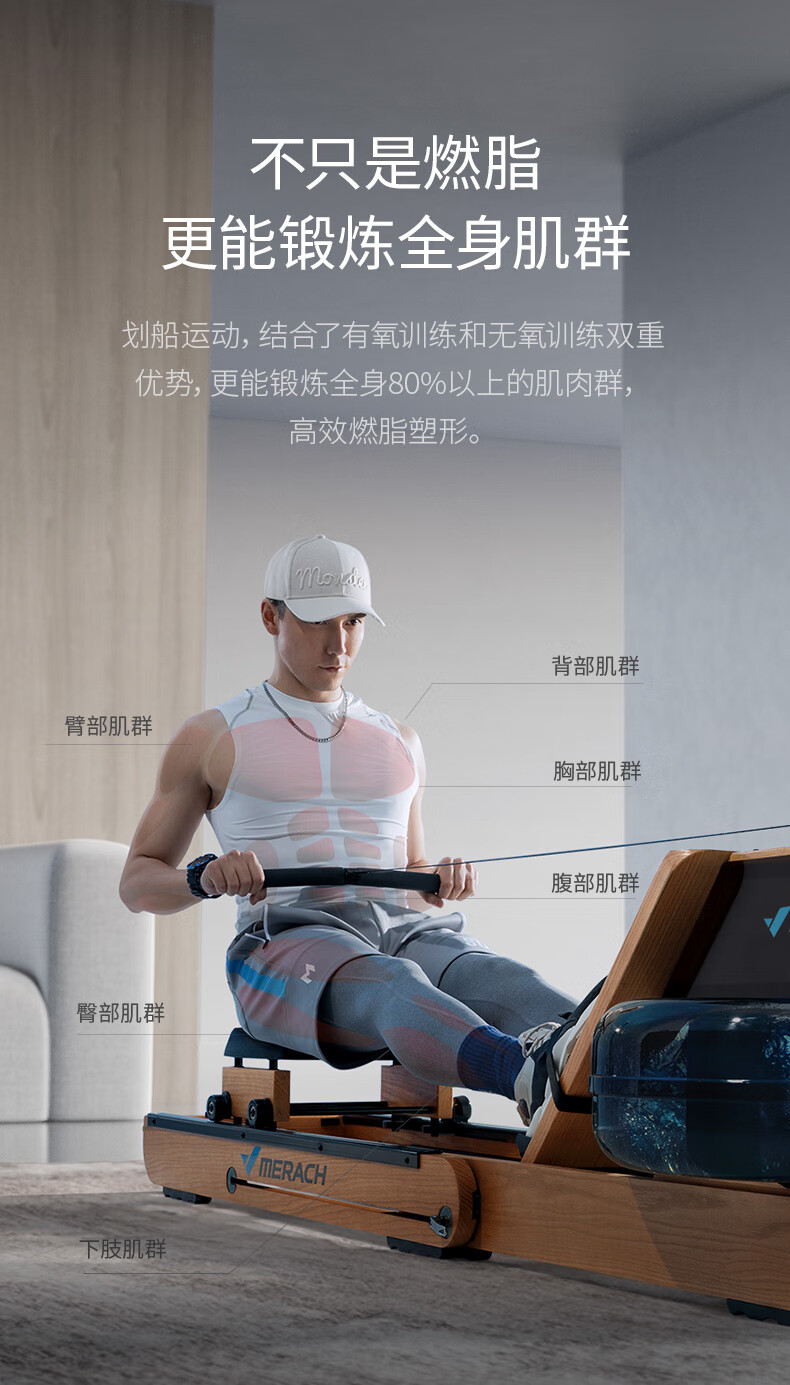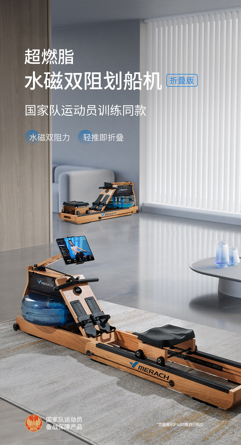 Merrick Super Fat Burning Hydromagnetic Dual Resistance Rowing Machine Home Gym Indoor Fitness Equipment Intelligent Rowing Machine Cherry Wood (Folding Model) | Hydromagnetic Dual Resistance | Exclusive Class